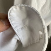 元々袖はシングルカフス仕様ですが、ボタンが縫い付けられ、デイリーユースしやすいようになっております。