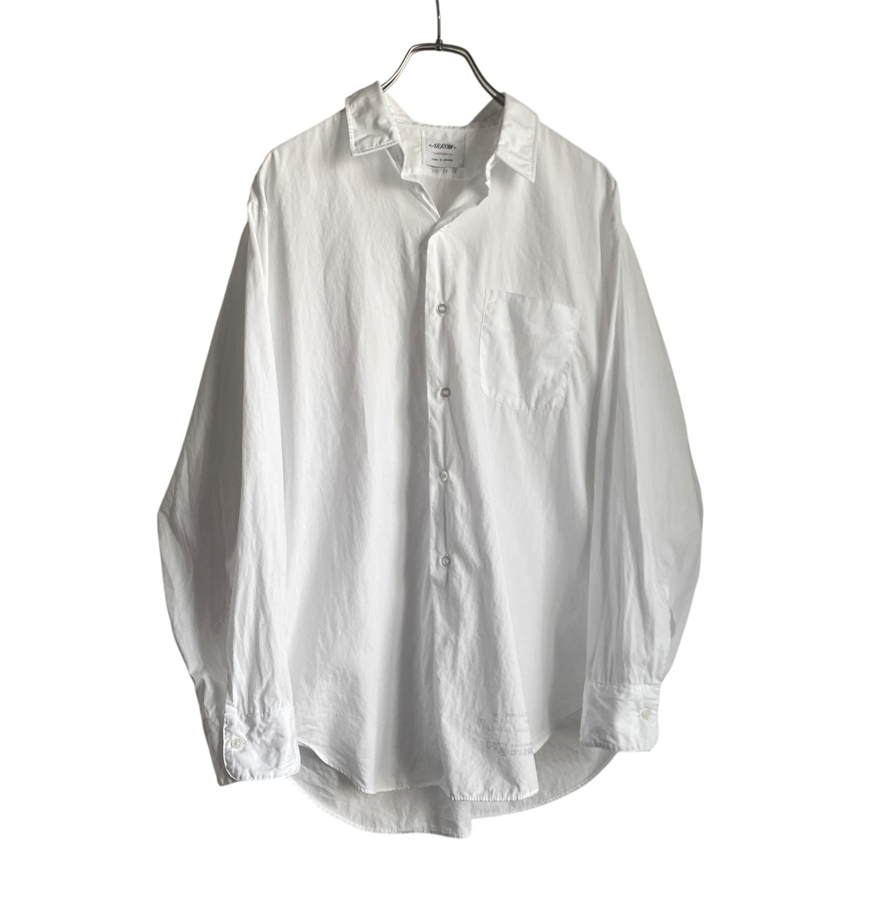 高番手の糸を使用した、ハリコシのある非常に上質な生地感のコットン100%ブロードクロスに、16-33(L相当)の非常にバランスの良いシルエットが素晴らしい一着。