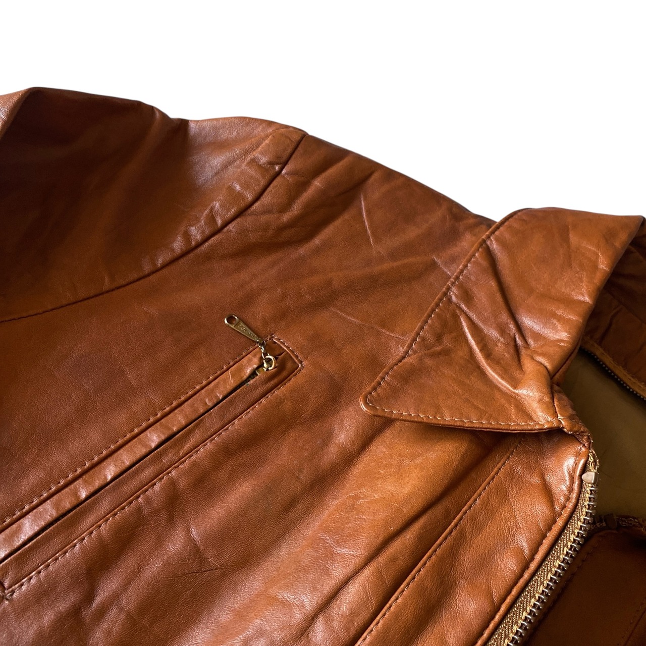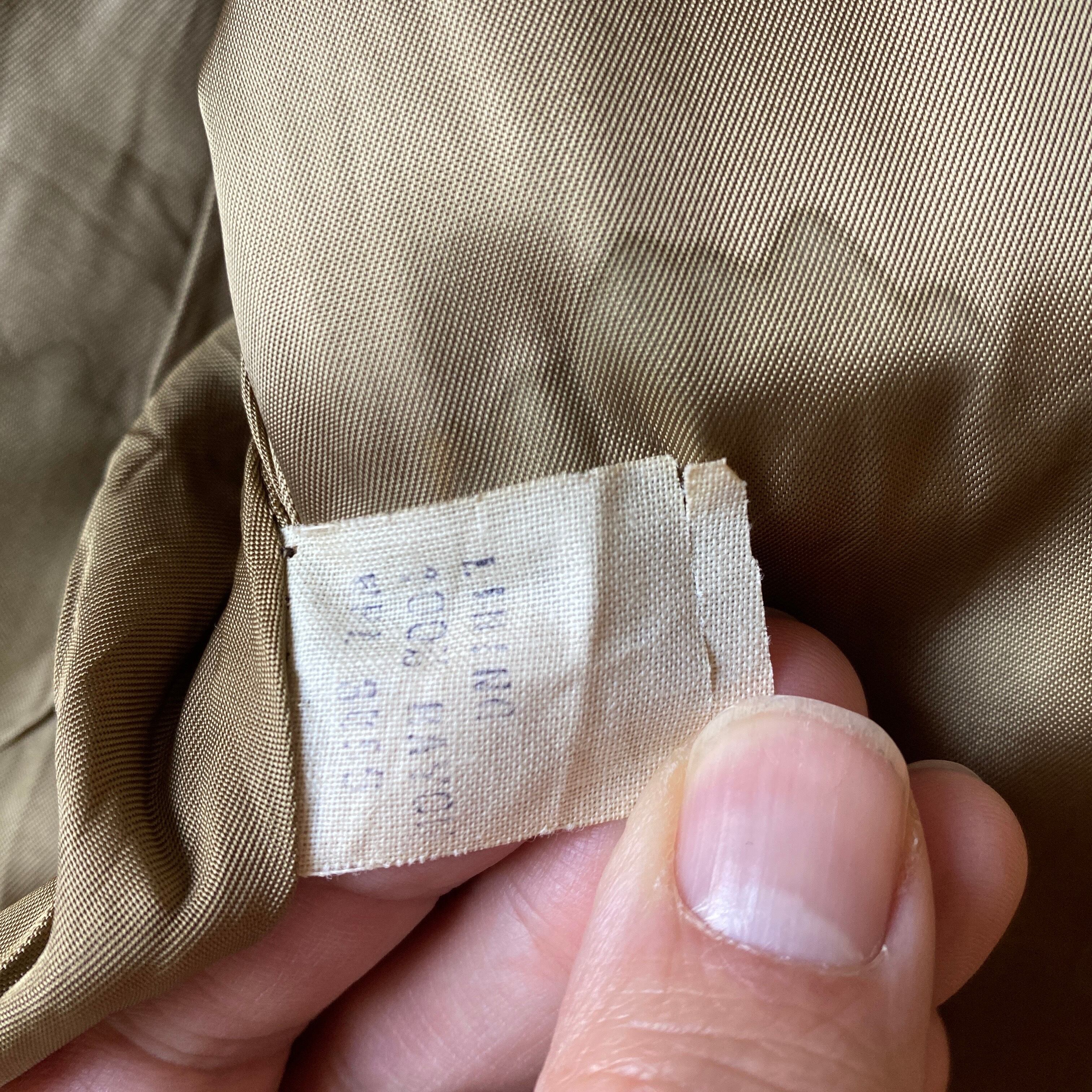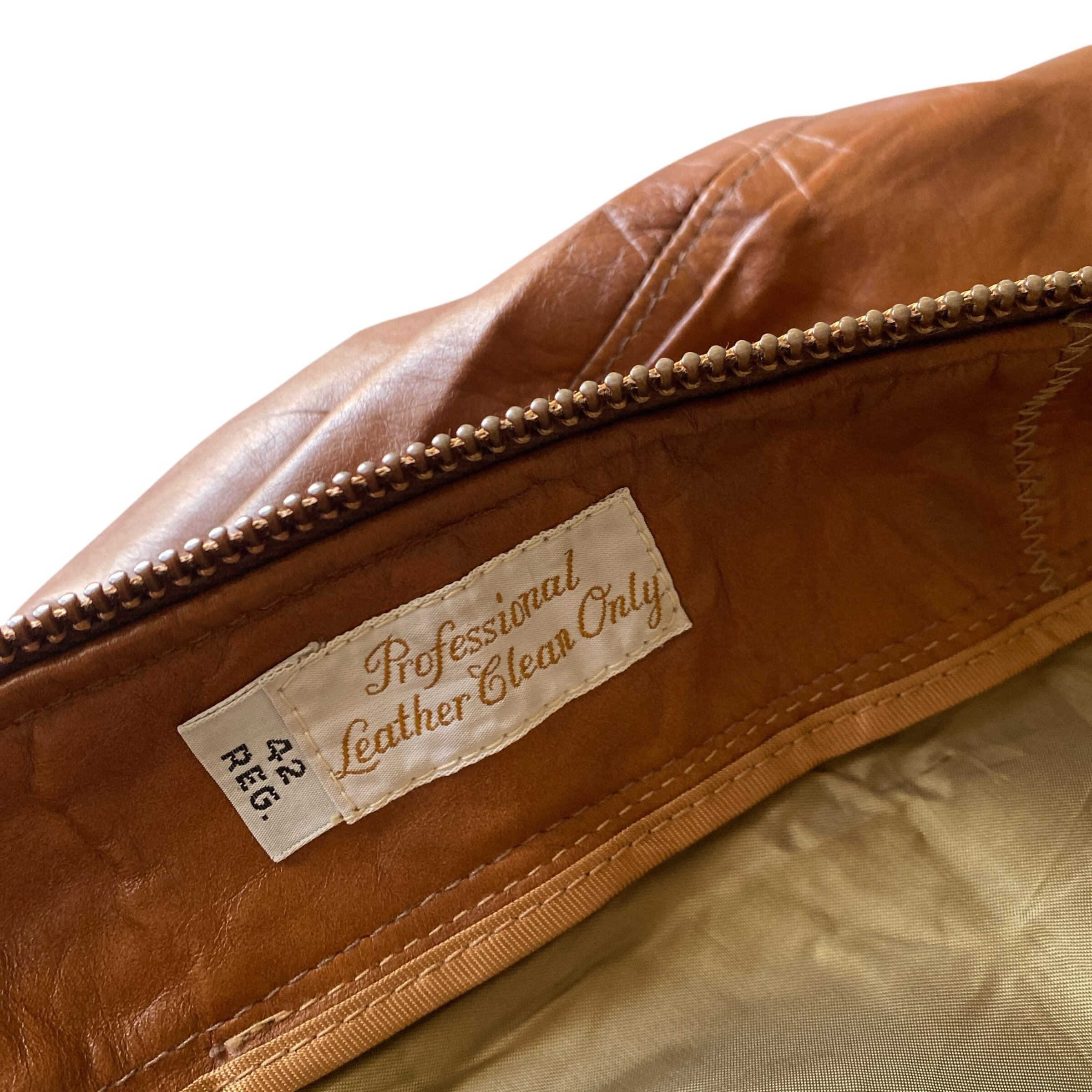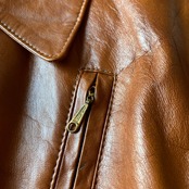 この年代らしいやや大きめの襟に、デザインの効いたポケットの配置、明るめのブラウンカラーが非常に格好良い一着。