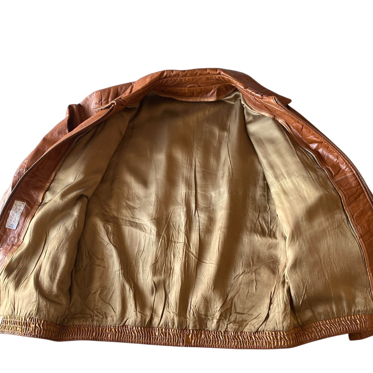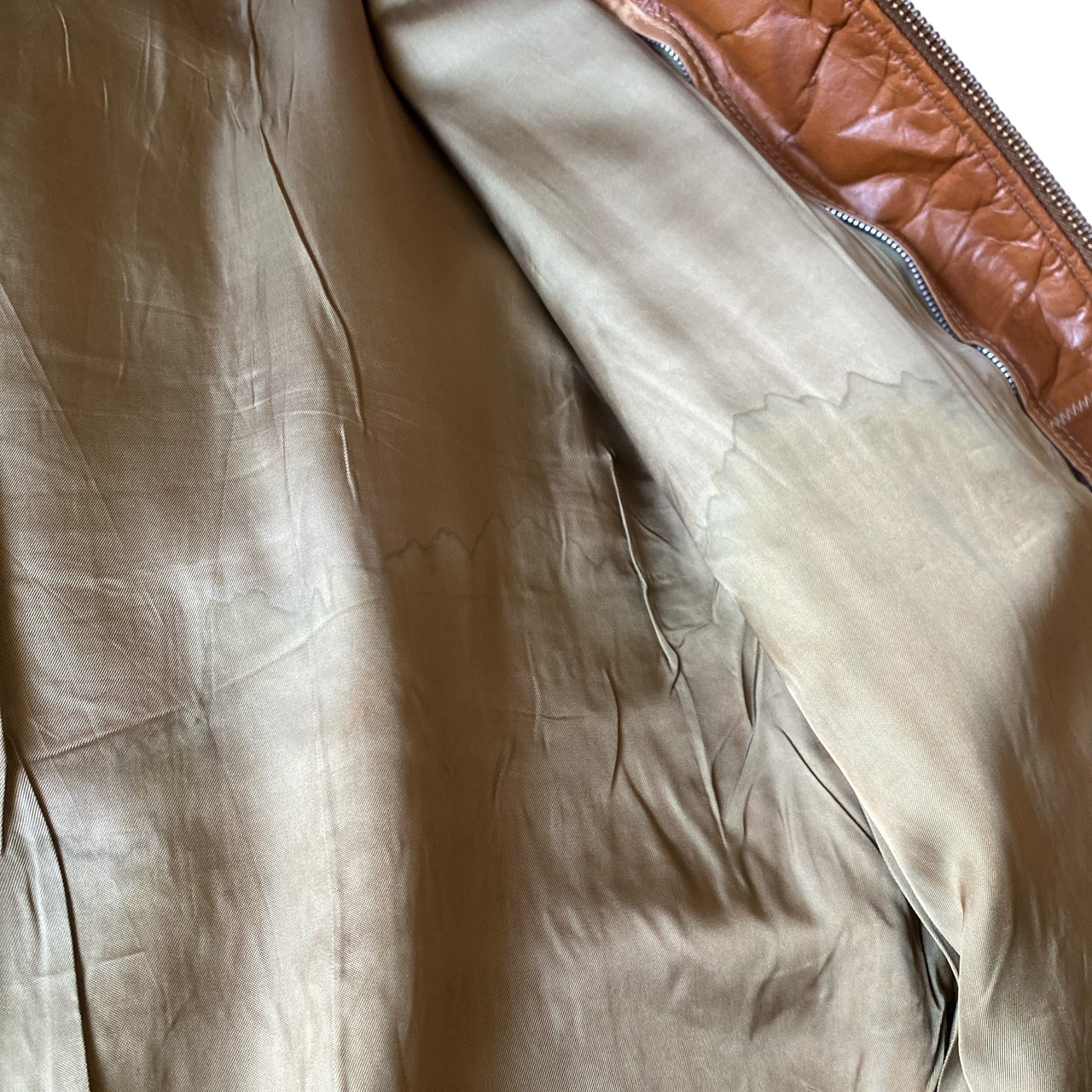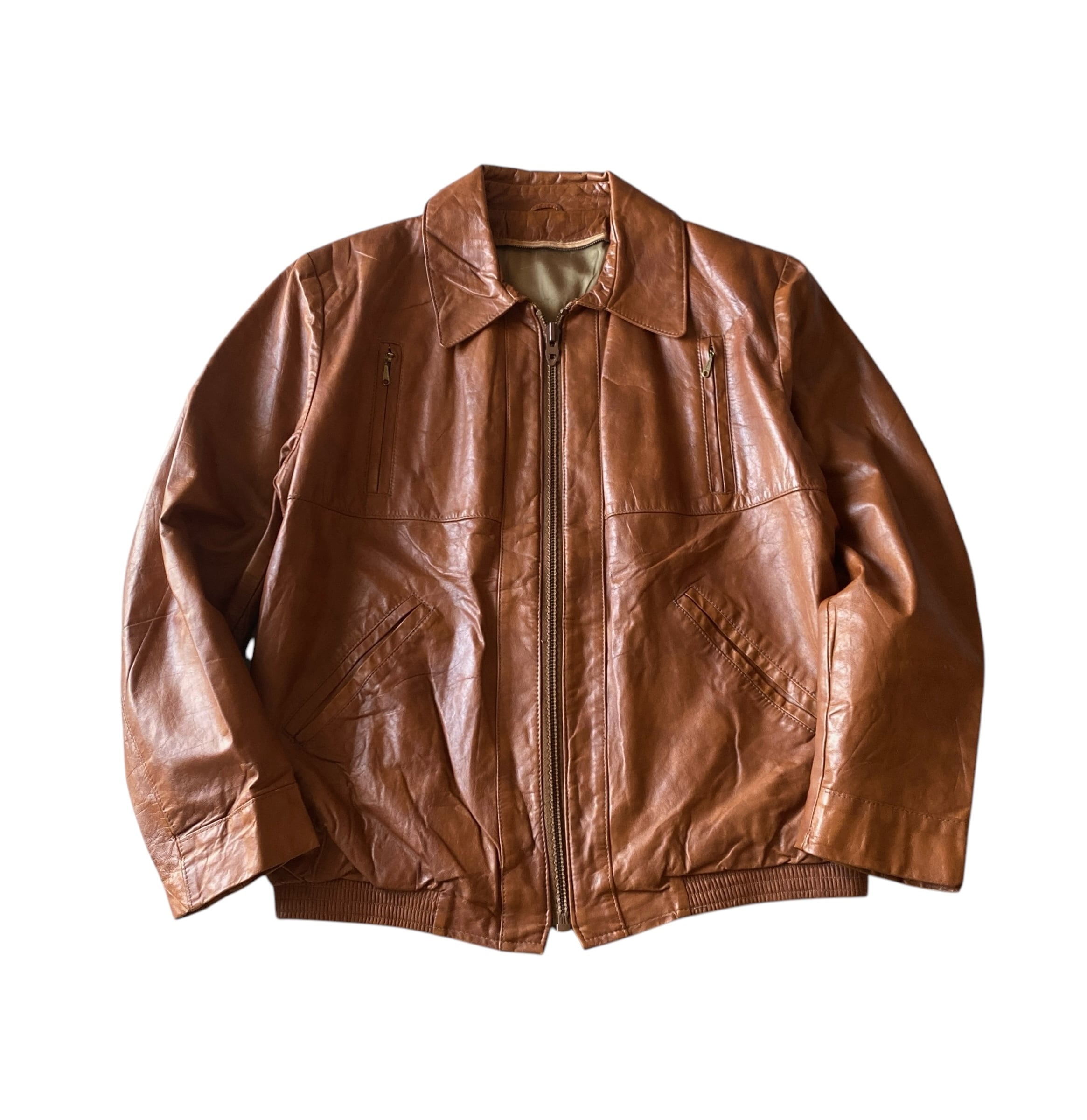 この年代らしいやや大きめの襟に、デザインの効いたポケットの配置、明るめのブラウンカラーが非常に格好良い一着。