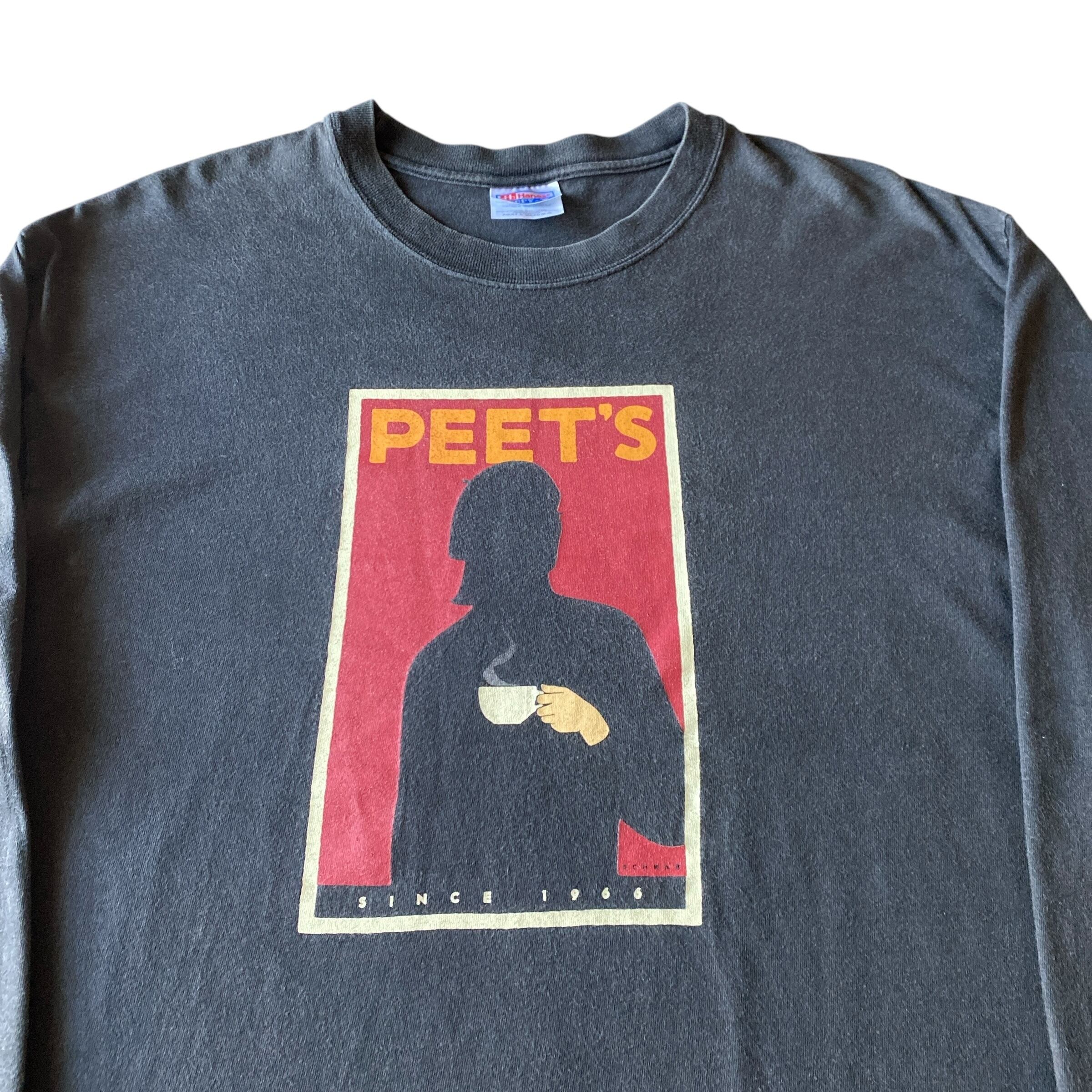 1990〜2000年代初頭頃の「ピーツコーヒー」ヴィンテージポスタープリントロングスリーブTシャツになります。(Hanes二枚タグ)
