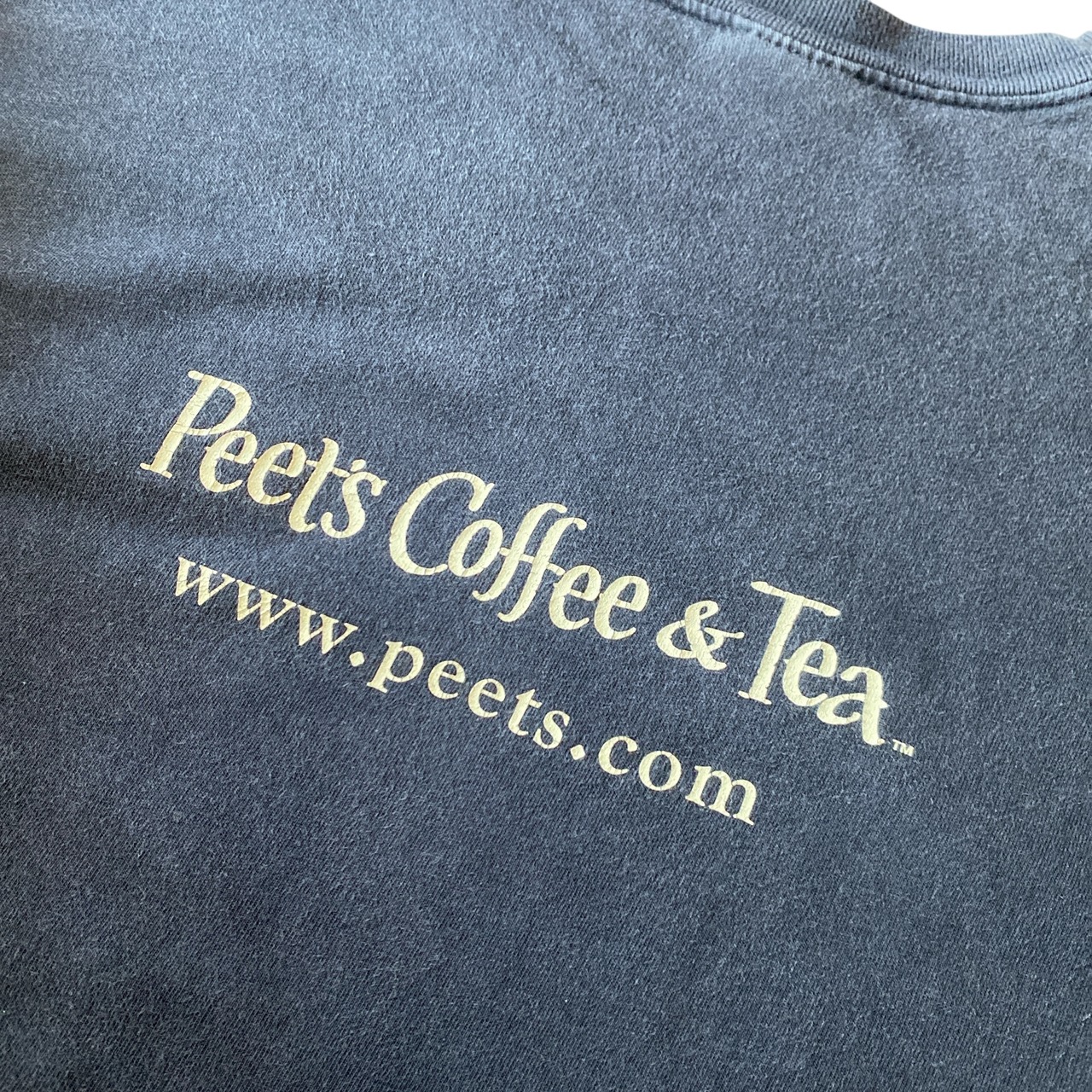 良い感じにフェードした墨黒ブラックボディに、バランスの良いサイズ感、ピーツのヴィンテージポスターのデザインがプリントされた非常に格好良い一着。