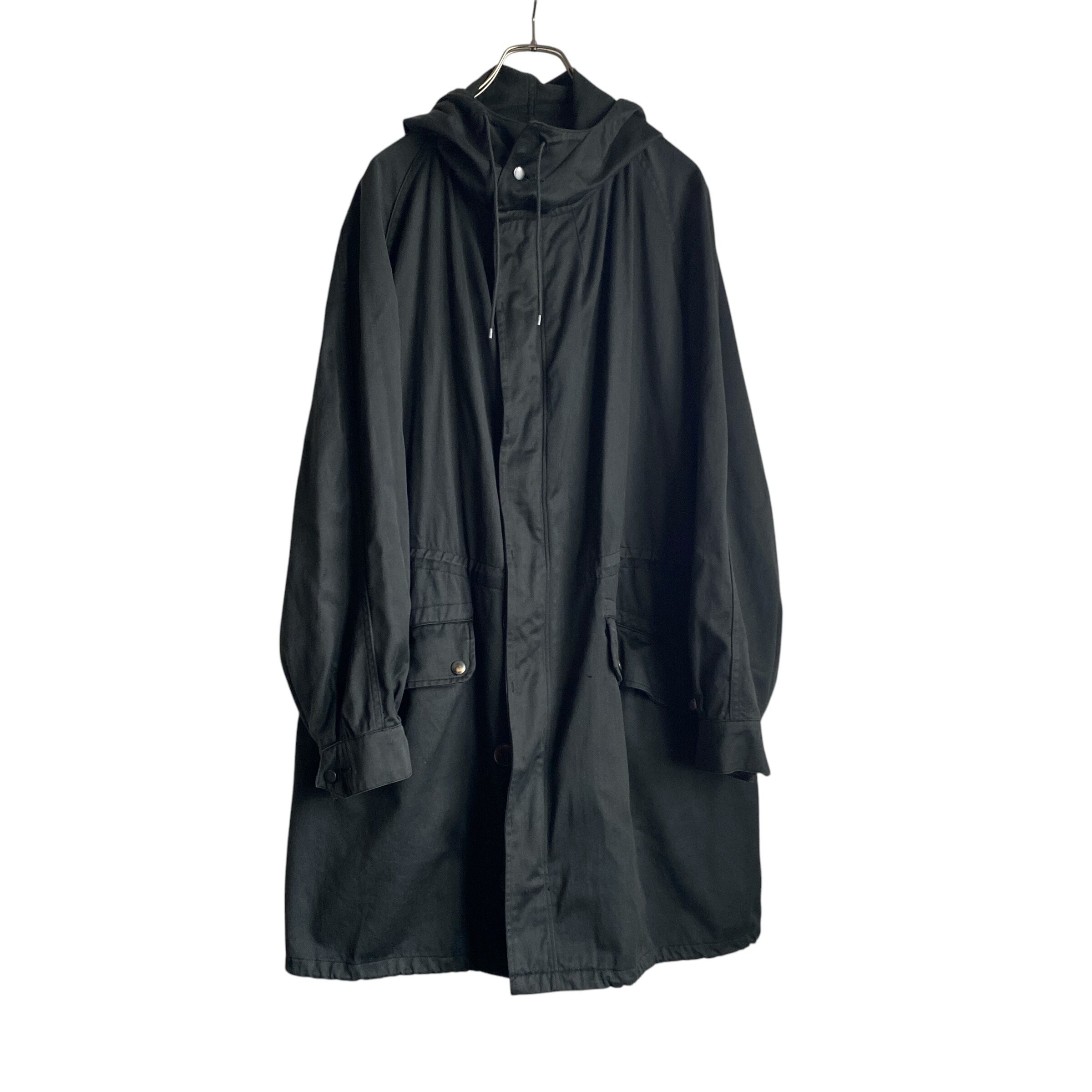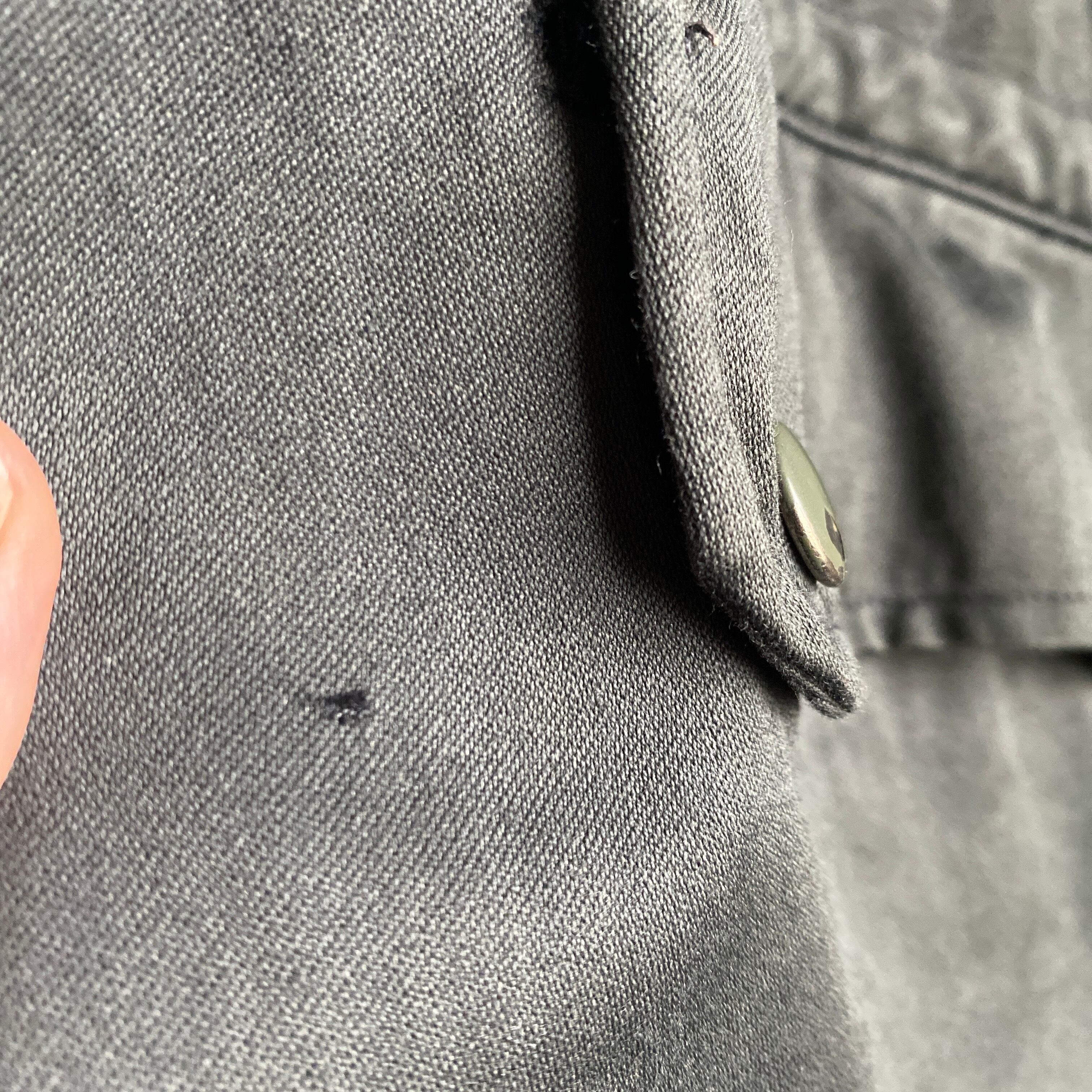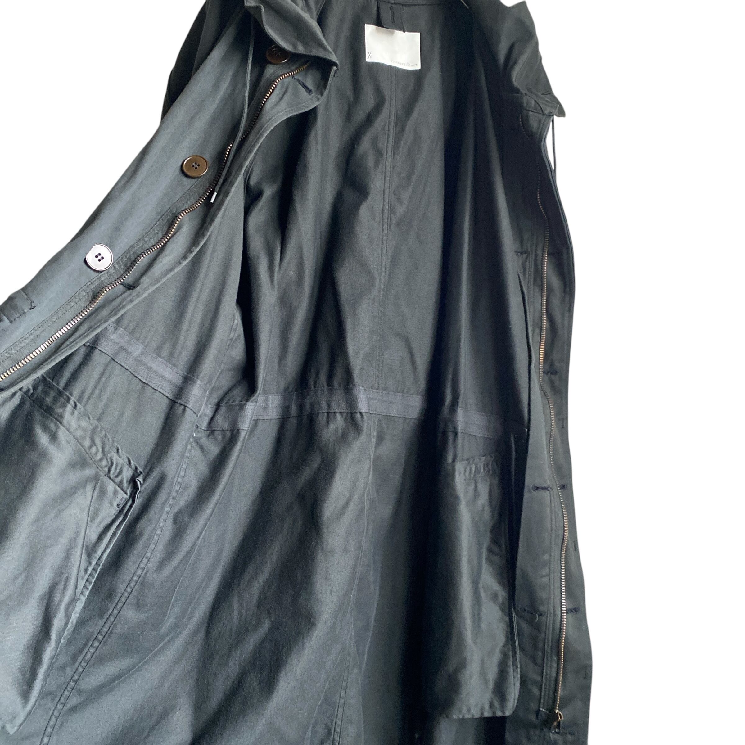 フランス軍実物のM64パーカーをベースに、ブラックの後染め、袖、首元のボタンがよりミニマルな物に換装された一着。