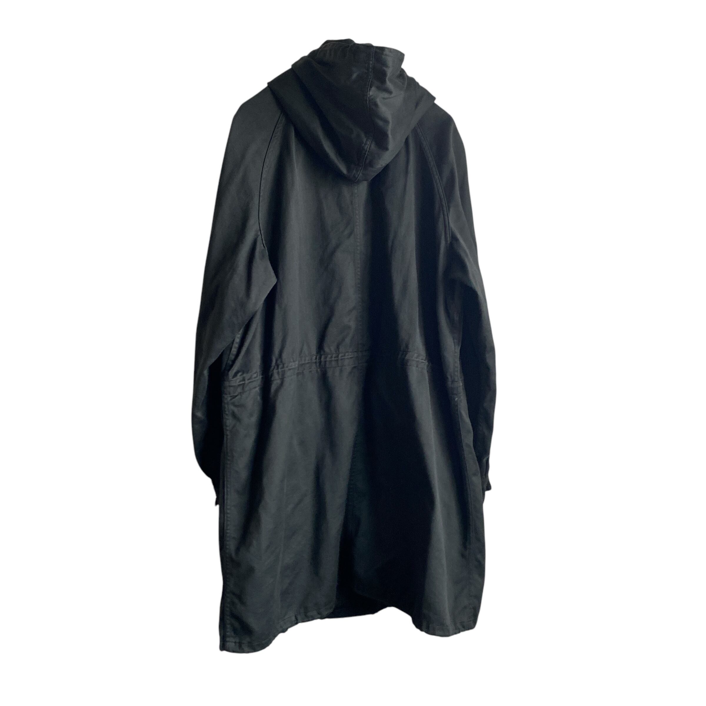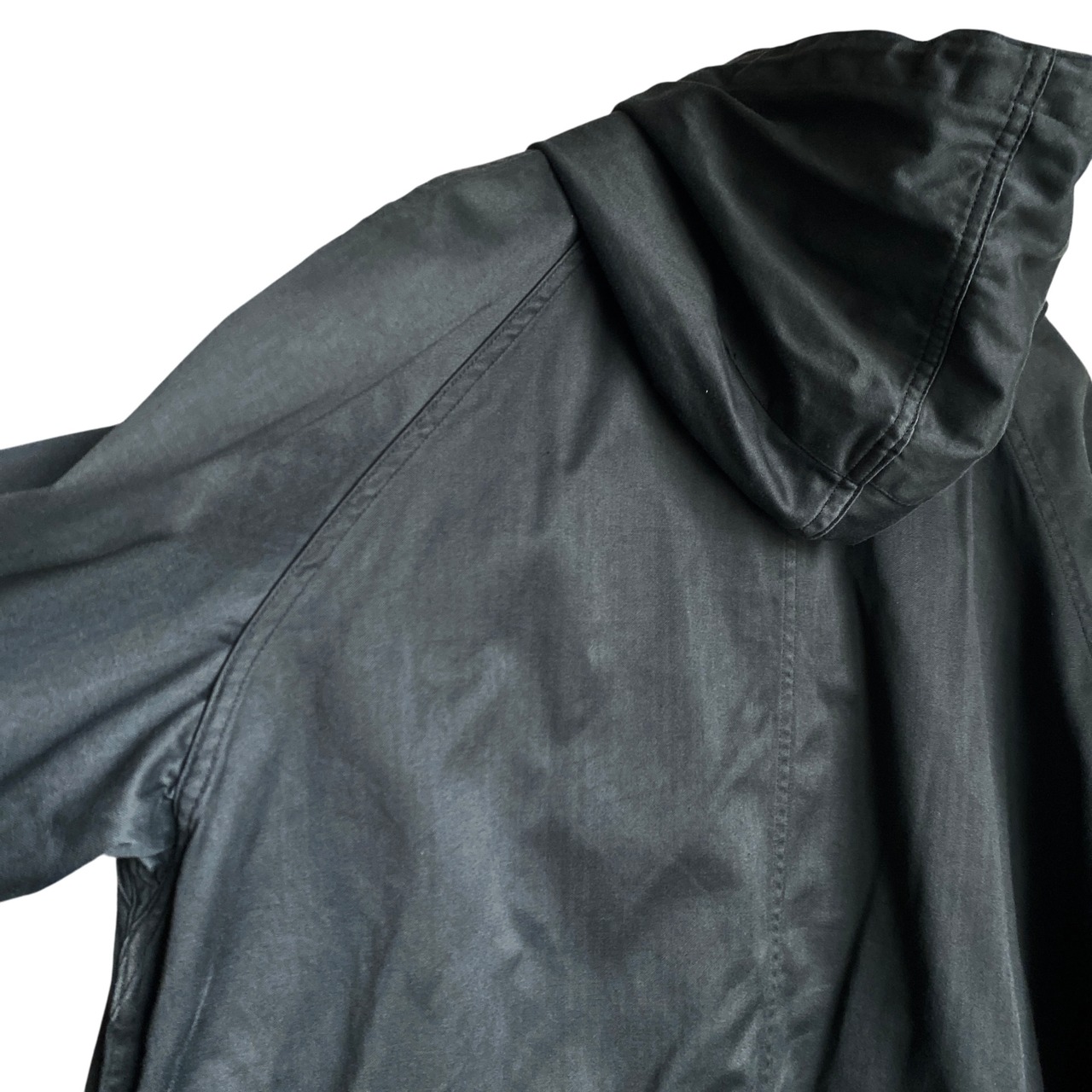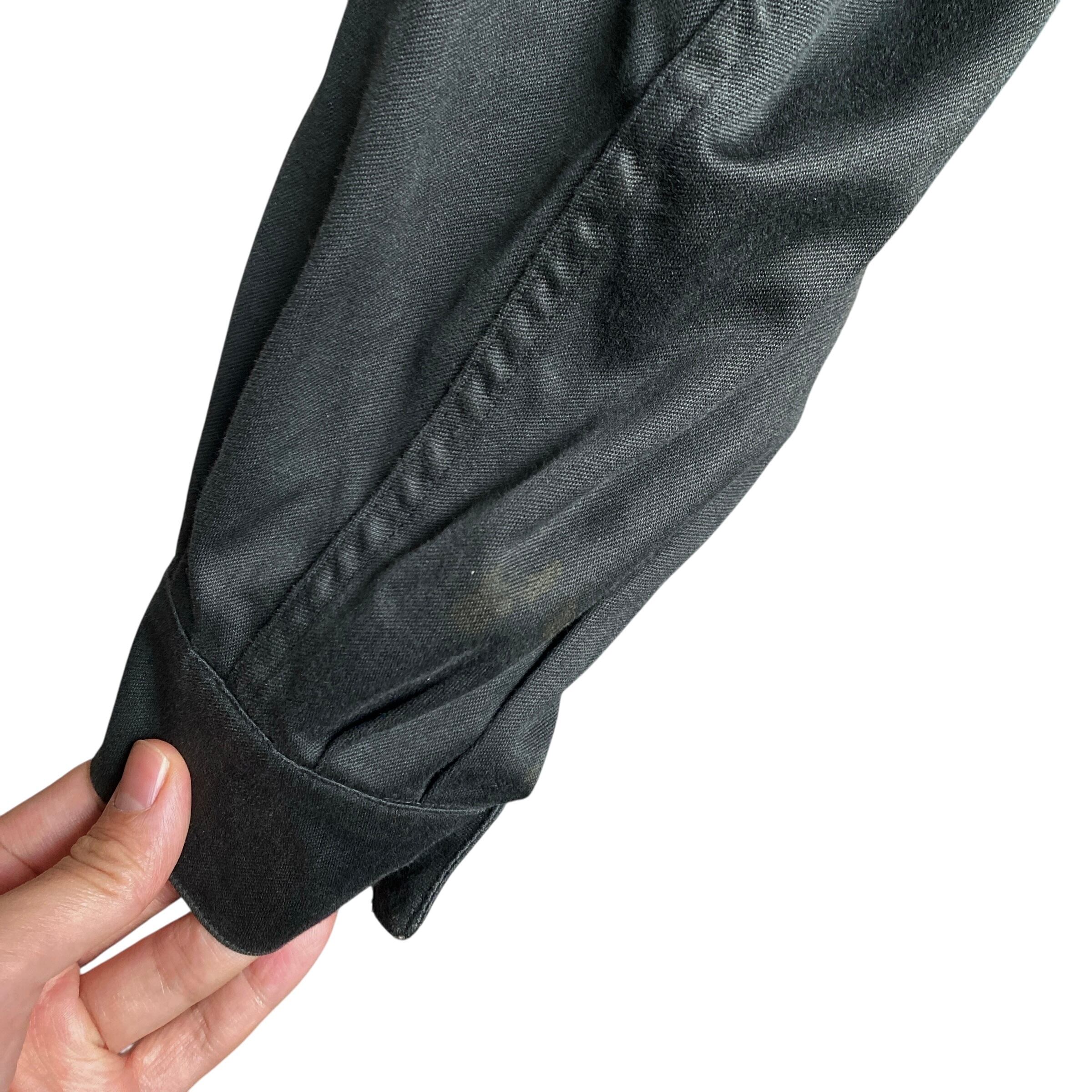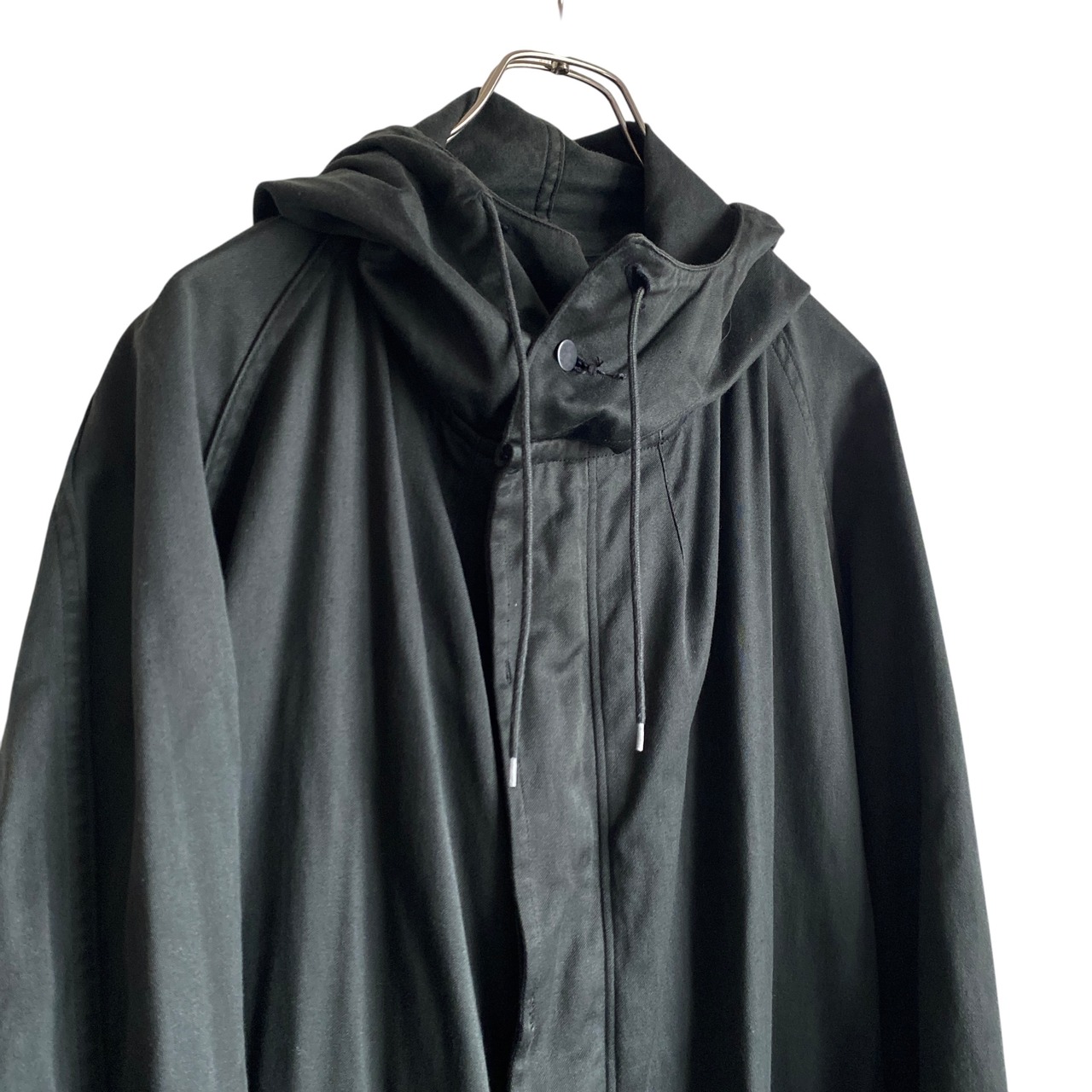フランス軍実物のM64パーカーをベースに、ブラックの後染め、袖、首元のボタンがよりミニマルな物に換装された一着。