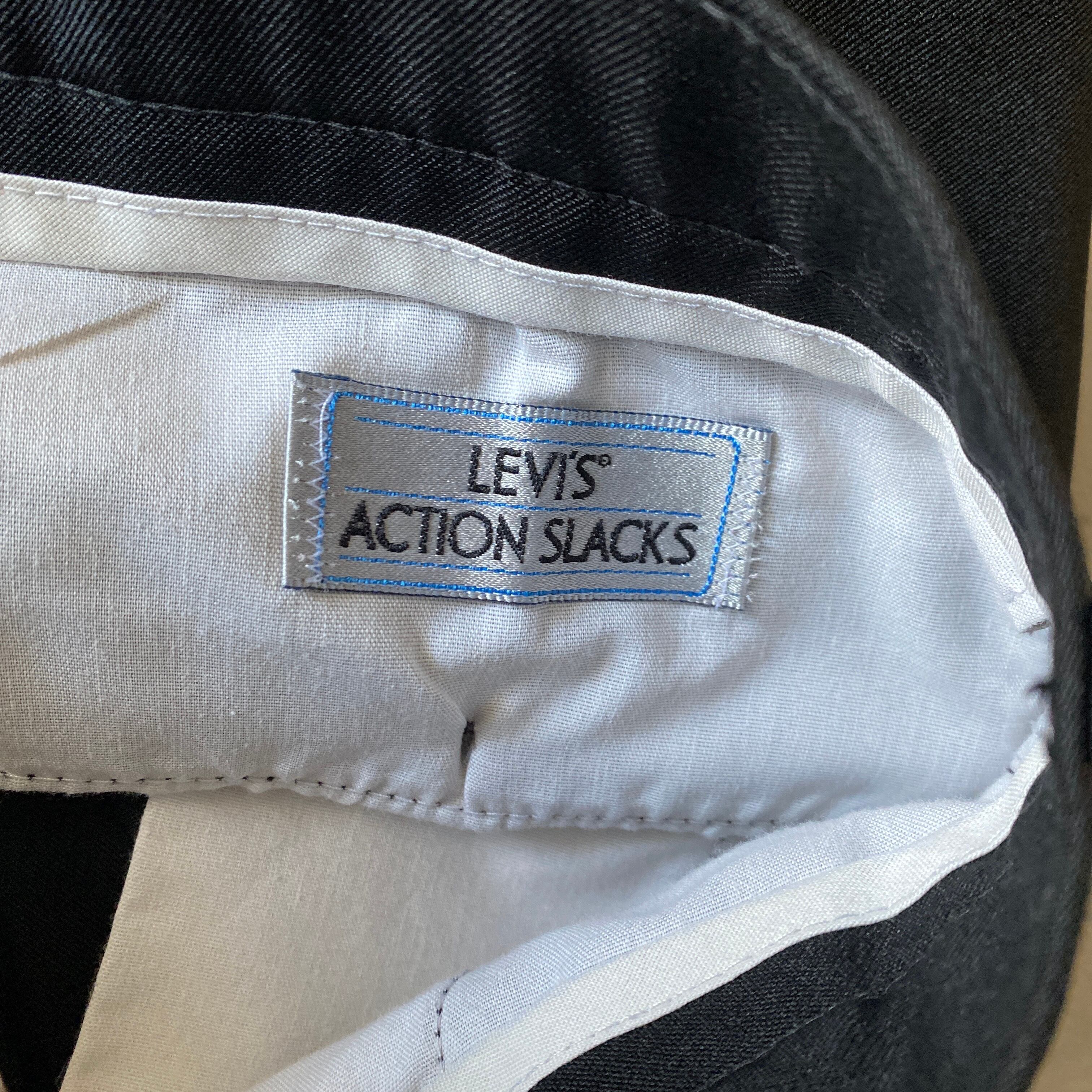 1980年代〜アメリカ製のリーバイスアクションスラックスになります。(サイズ表記のタグがついていませんが、ロケットタロンが付いている物でUSA製以外を見たことがないので間違いないと思います)