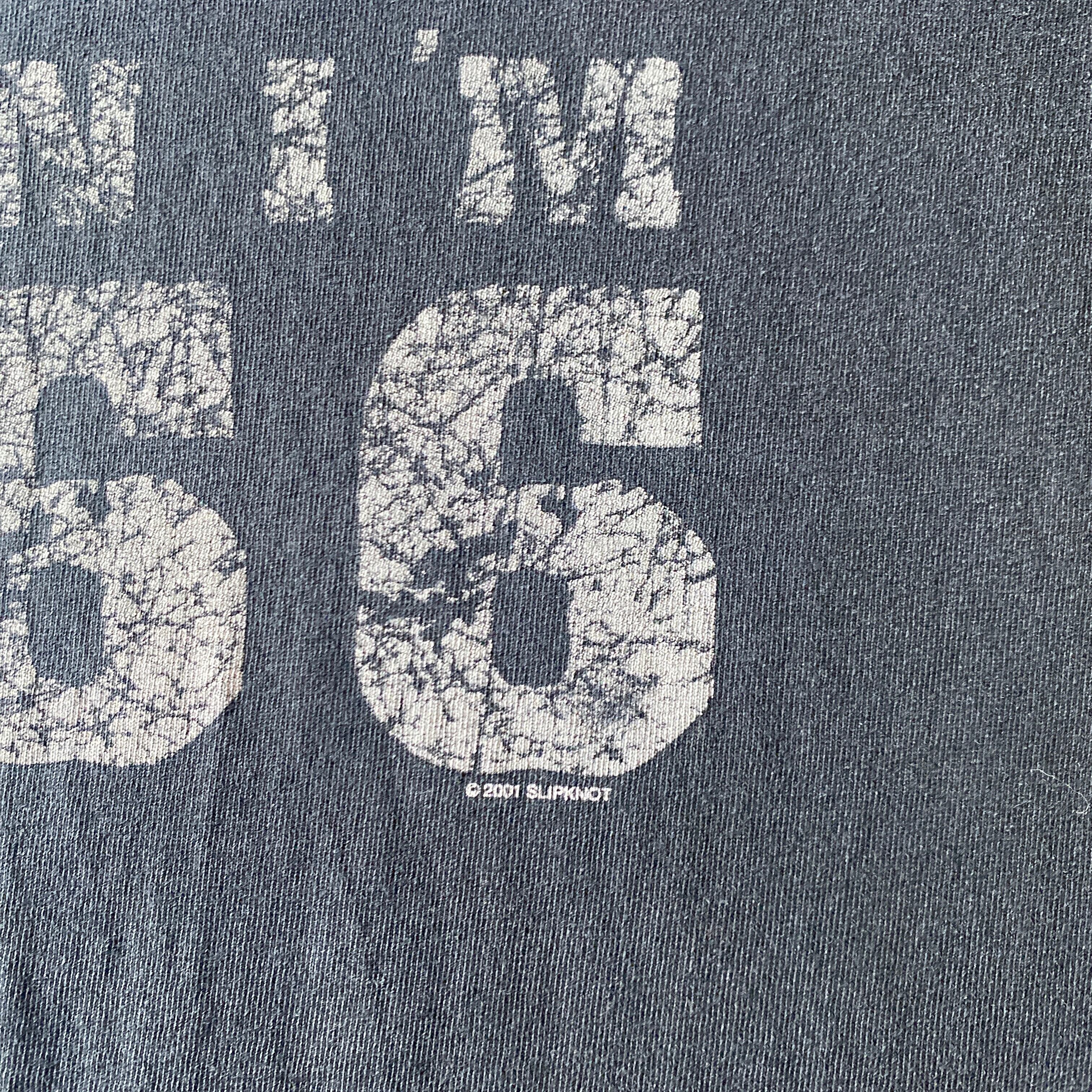 スリップノット2001年のアルバム「IOWA」に収録された楽曲「the heretic anthem 」の歌詞デザインがプリントされたtシャツになります。(2001年コピーライト)