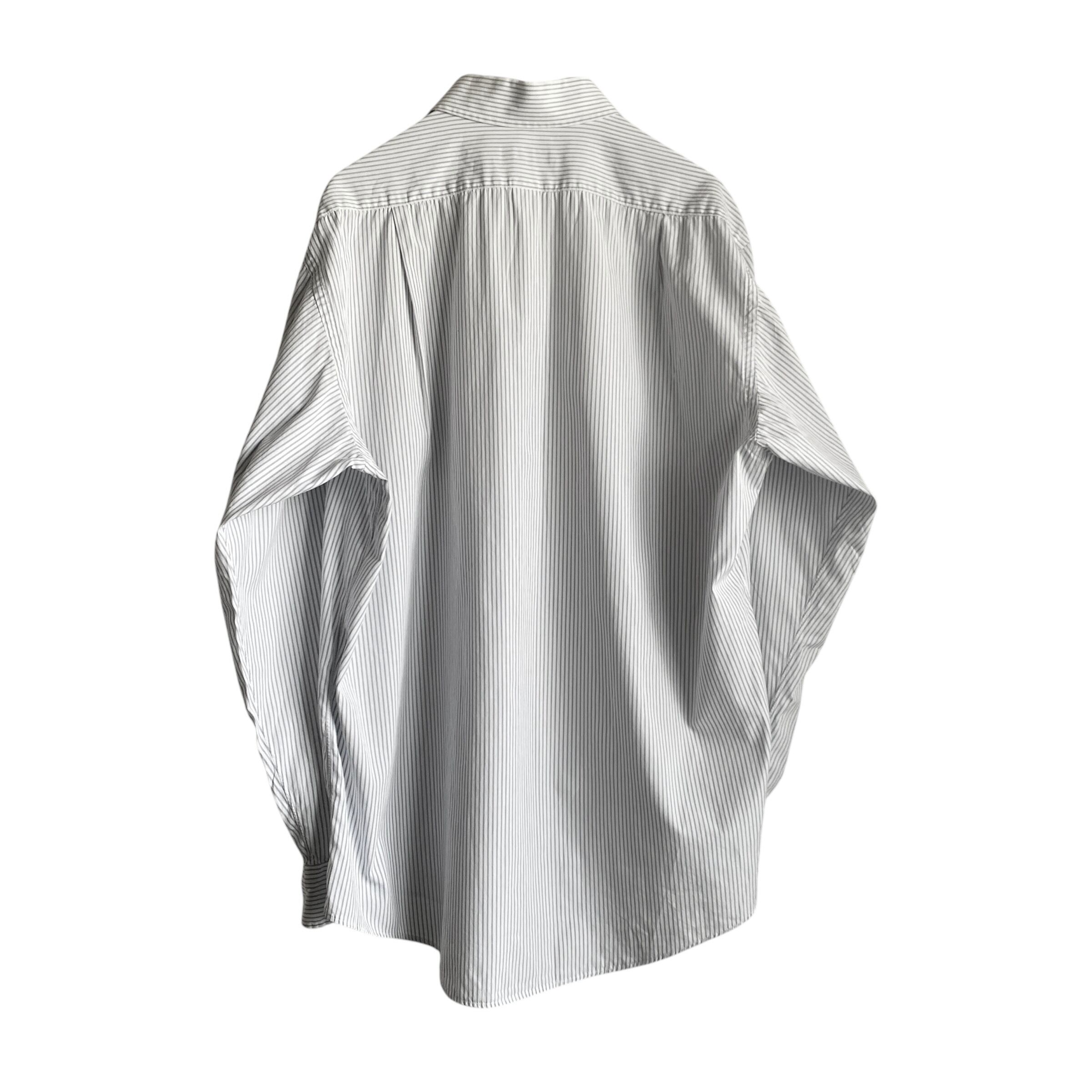 コットン100の上質なピンオックスフォード生地に、ベーシックなストライプカラー(グレー×ホワイト)、ゆったりとしたシルエットが非常に格好良い一着。