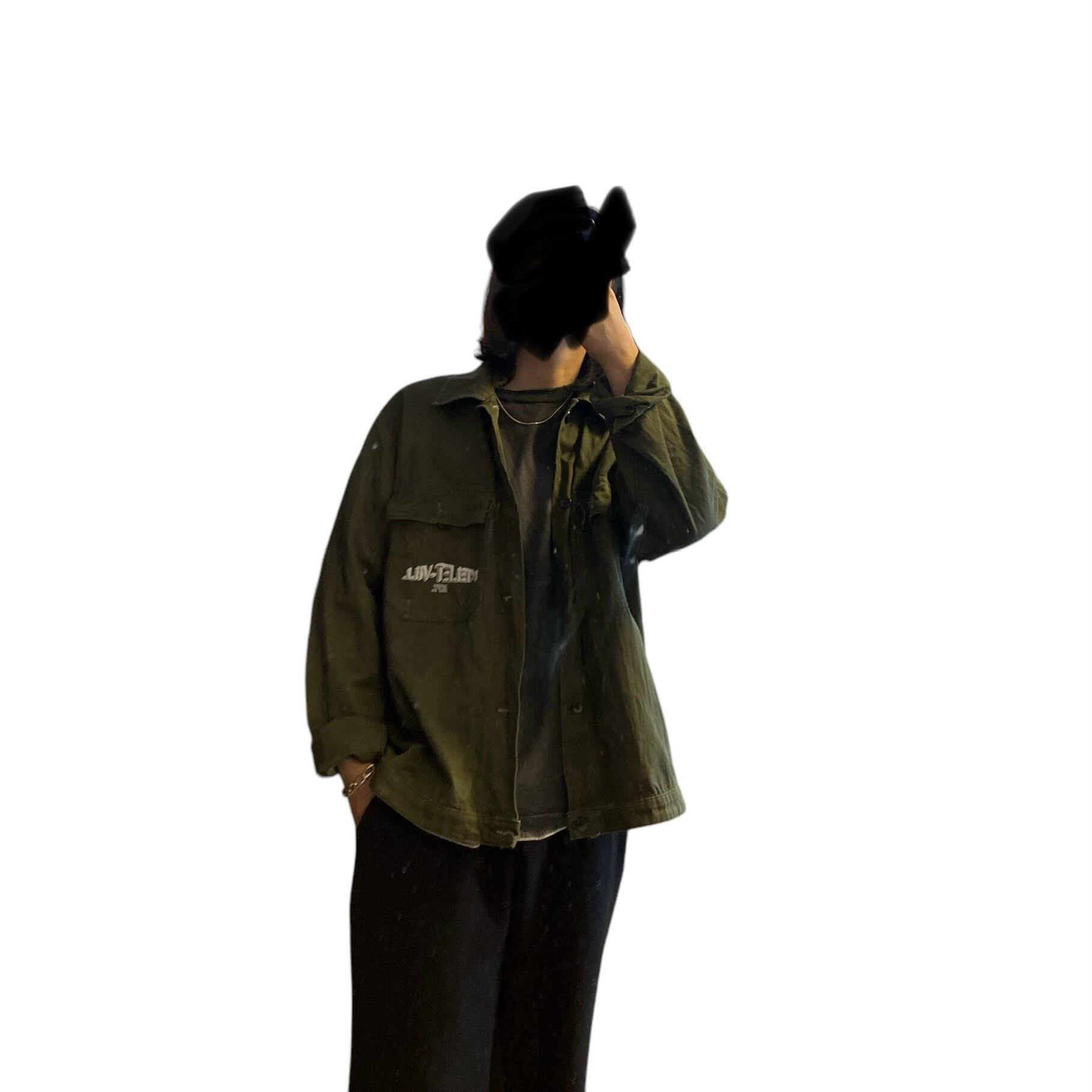 USのミリタリージャケットのようなオリーブグリーンカラー、生地の風合いも非常によく、ストリートブランドのような、popなプリントのノリも非常に格好良いです。