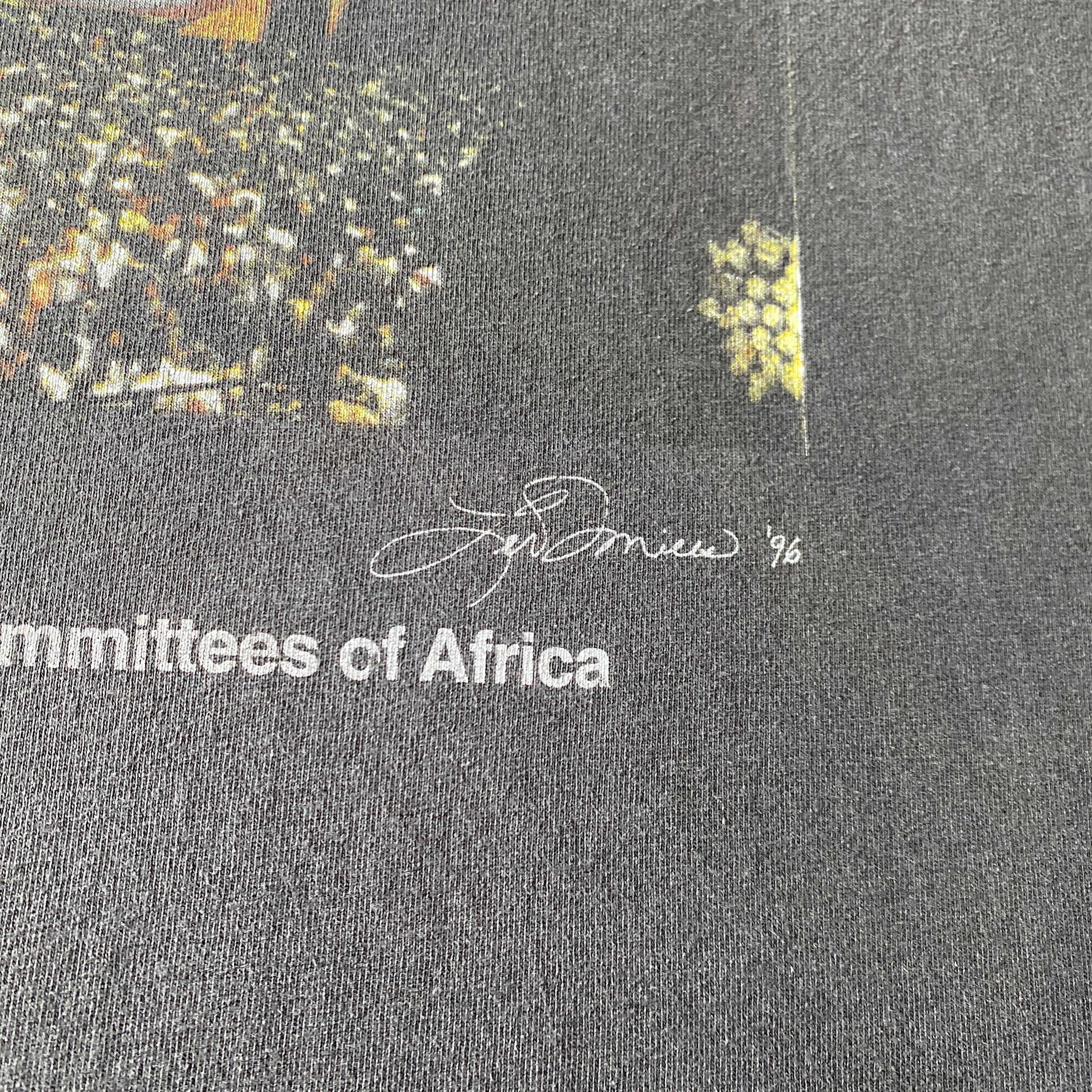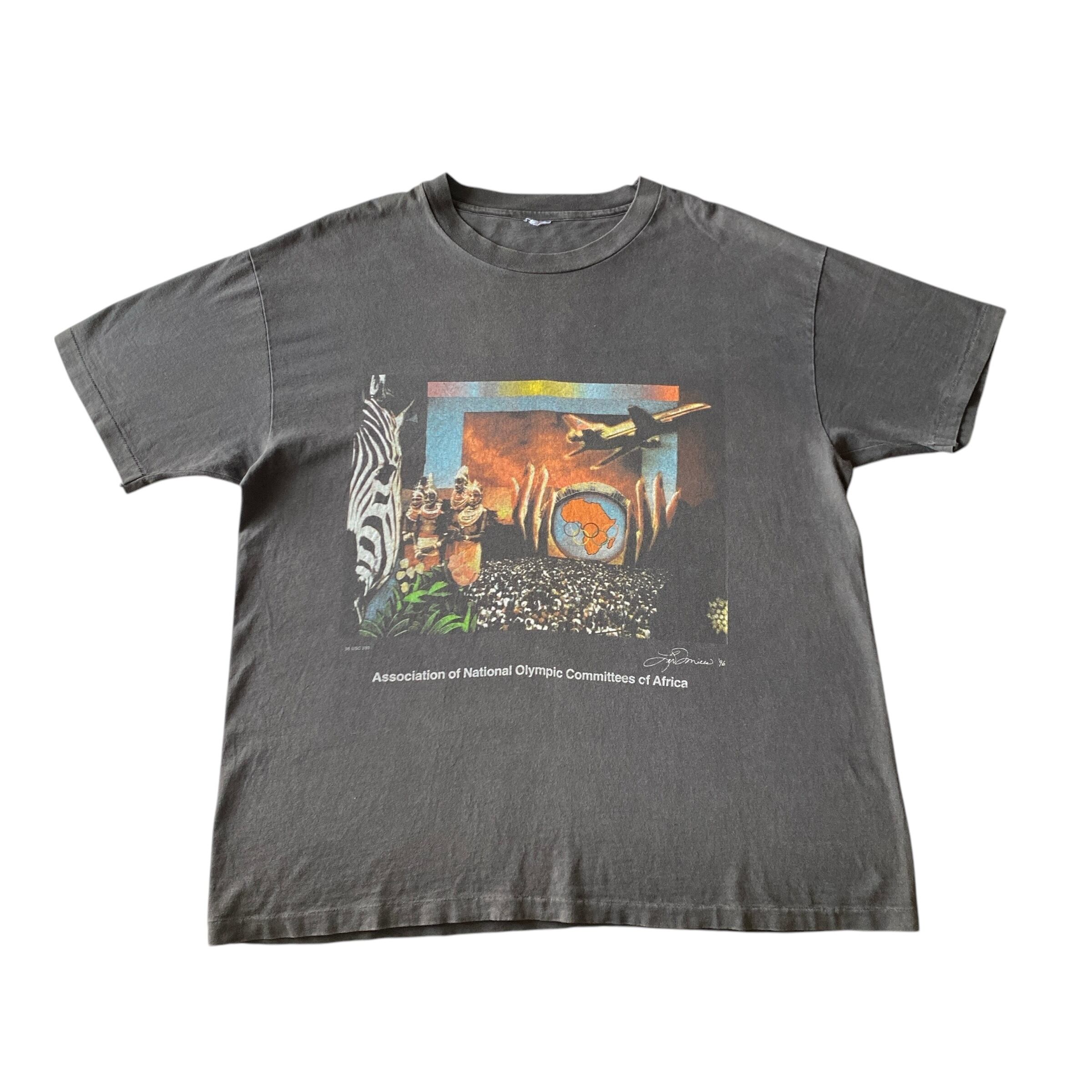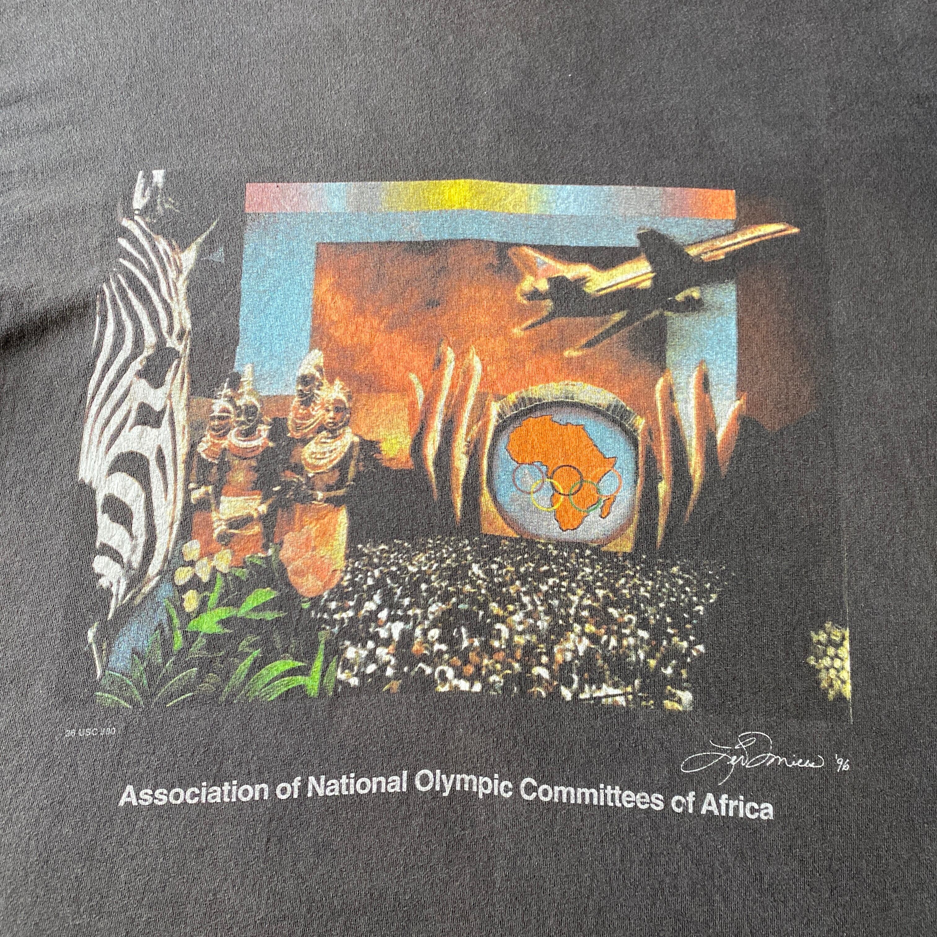 1990年代(1996年コピーライト)アメリカ製のアフリカオリンピック連合委員会?のアートデザインプリントtシャツになります。