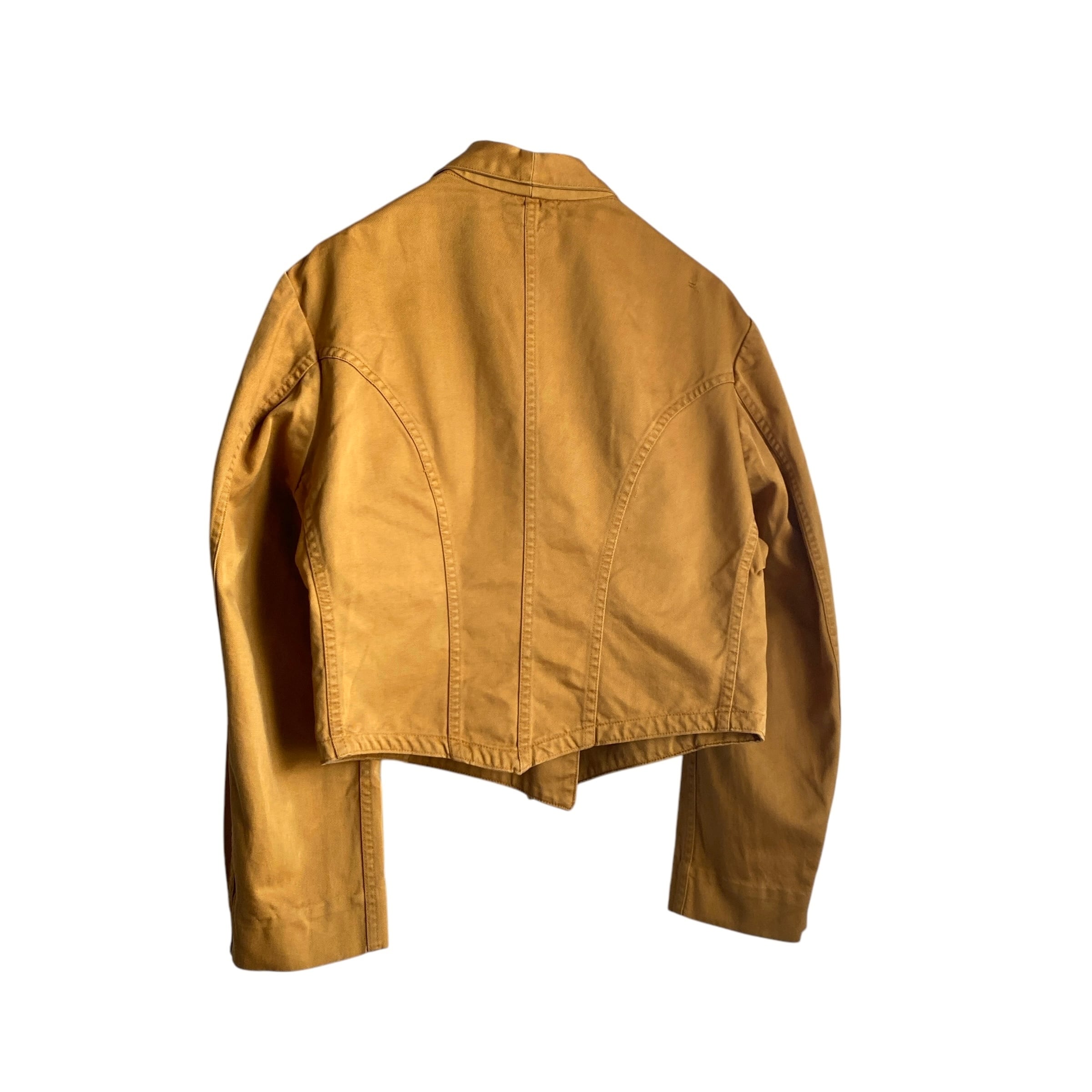 かなりの短丈に、ぎゅっと目の詰まったコットンツイル地、マスタードイエローカラーが非常に格好良いです。