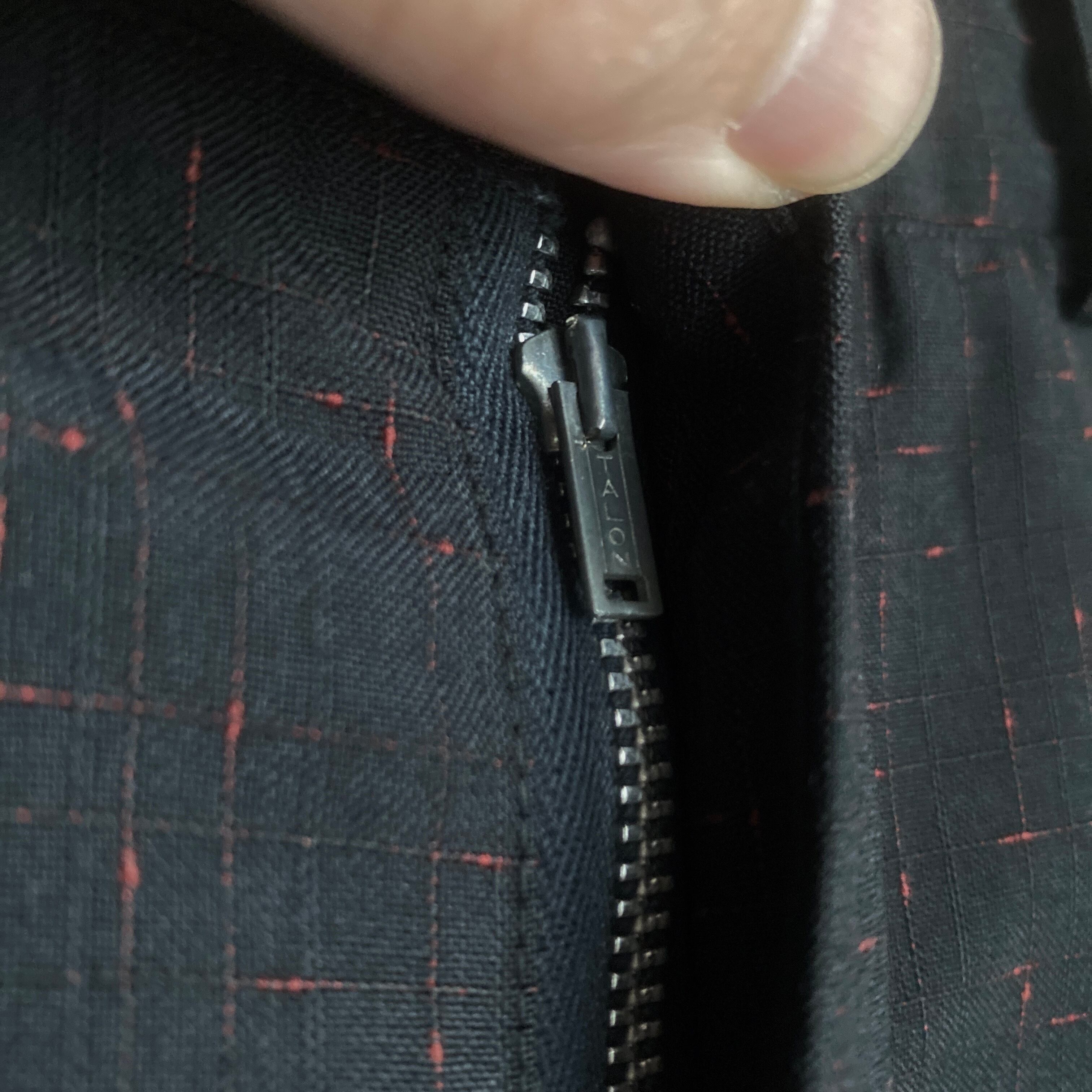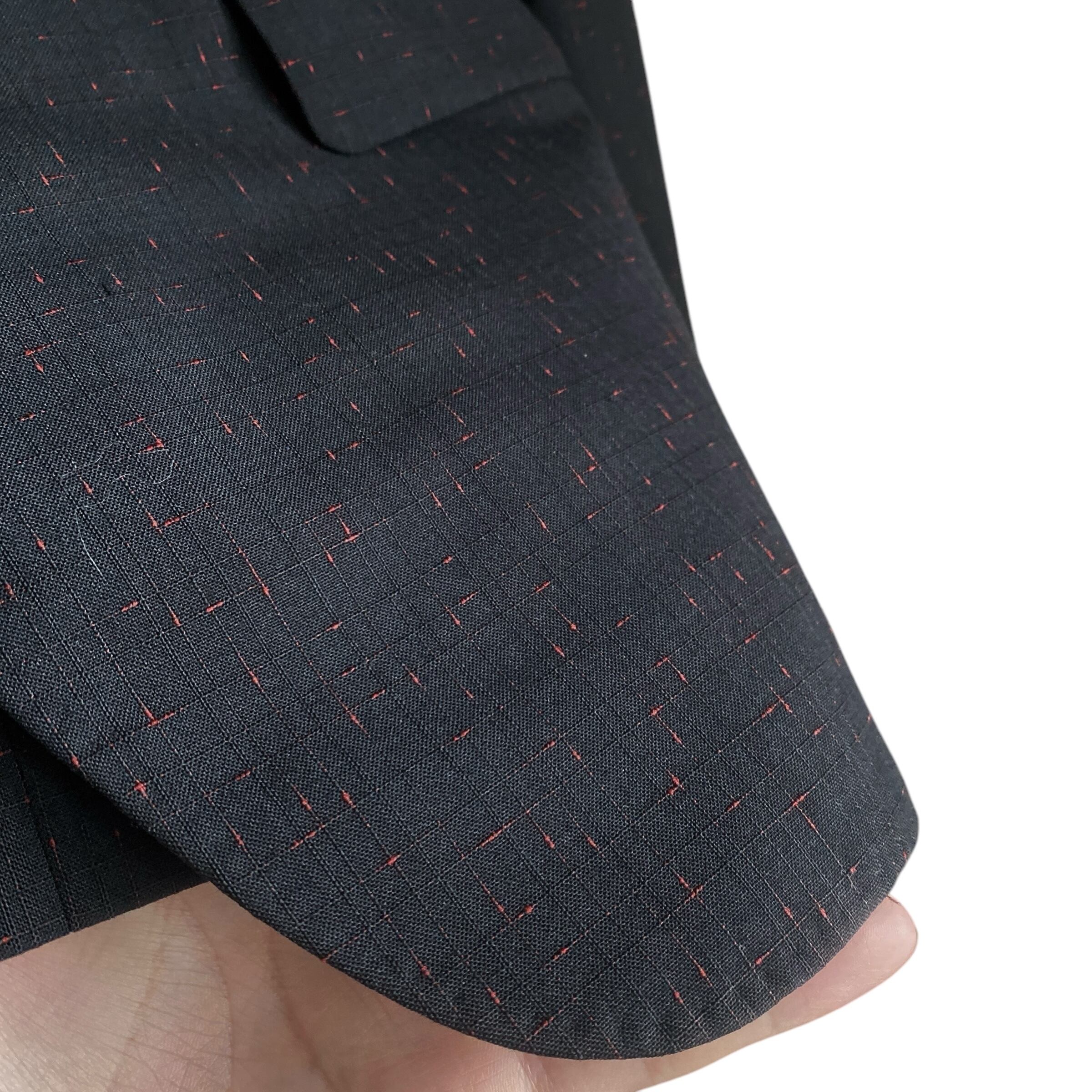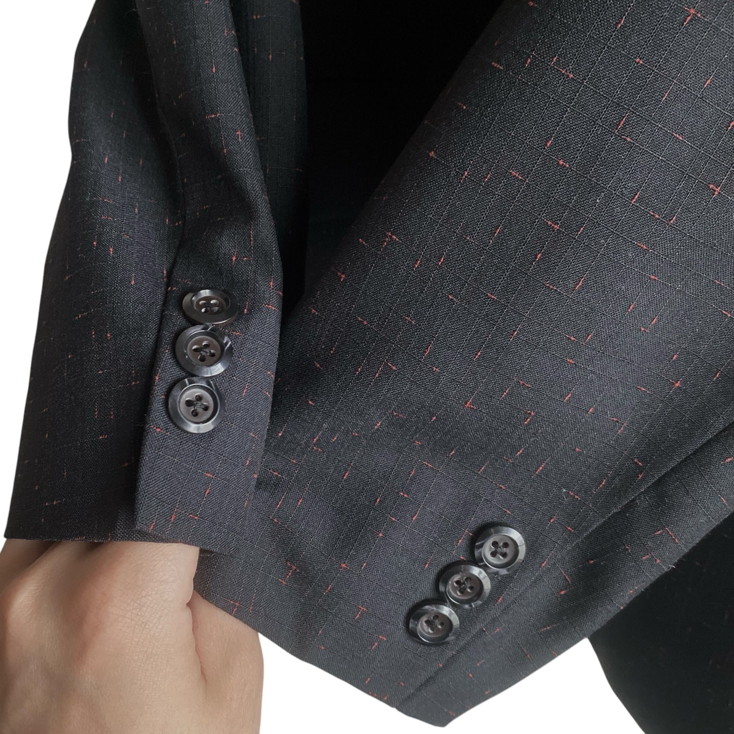 さらっとした上質な生地感のサマーウール生地に、ブラックベースにダークレッドのカスリ柄、ベーシックで癖のないクラシックなシルエットが非常に格好良い一着。