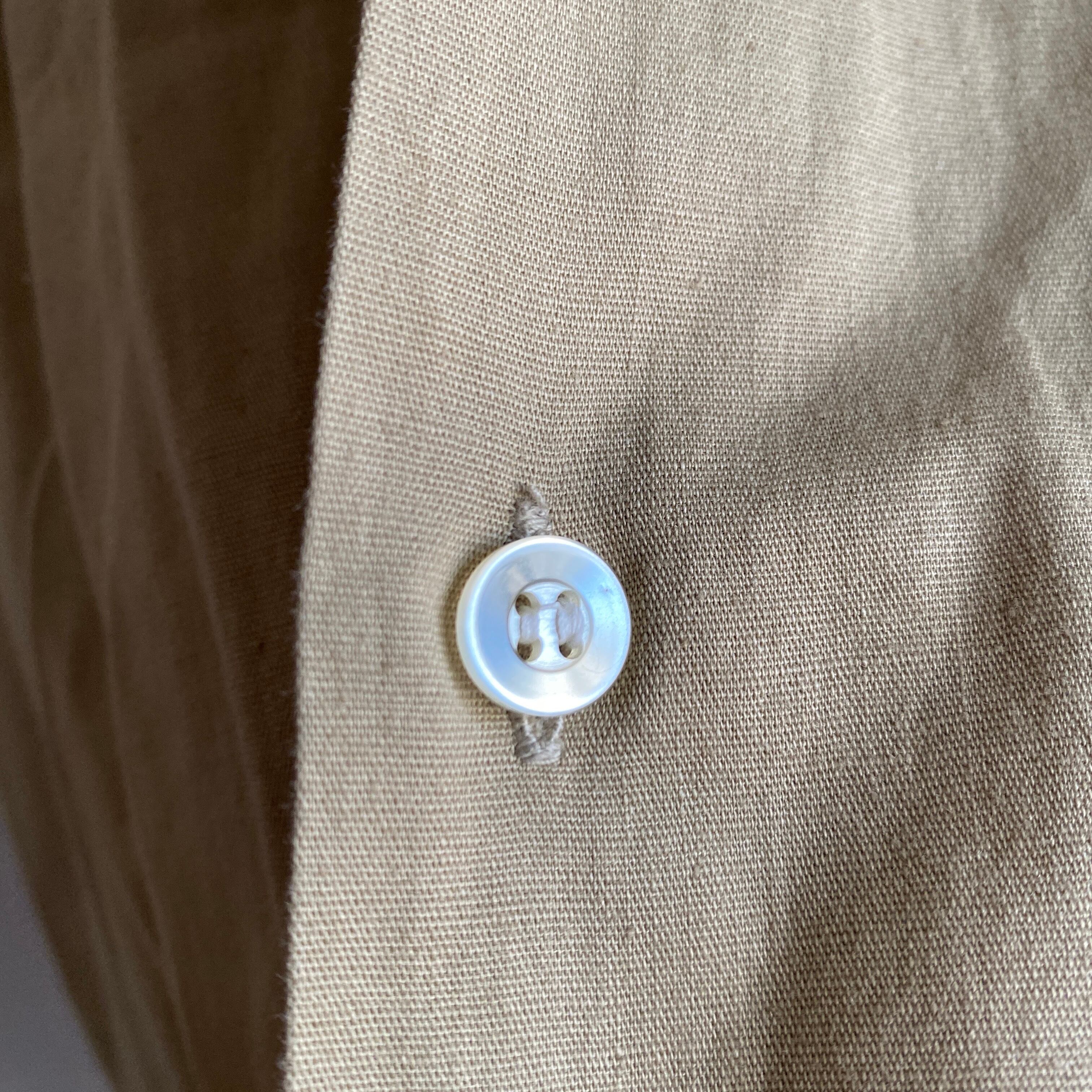 マスキュリンな雰囲気のカーキ系カラーに、程よくハリ感のある風合いの良いコットン生地、ゆったりとしたボックスシルエットが非常に格好良い一着。