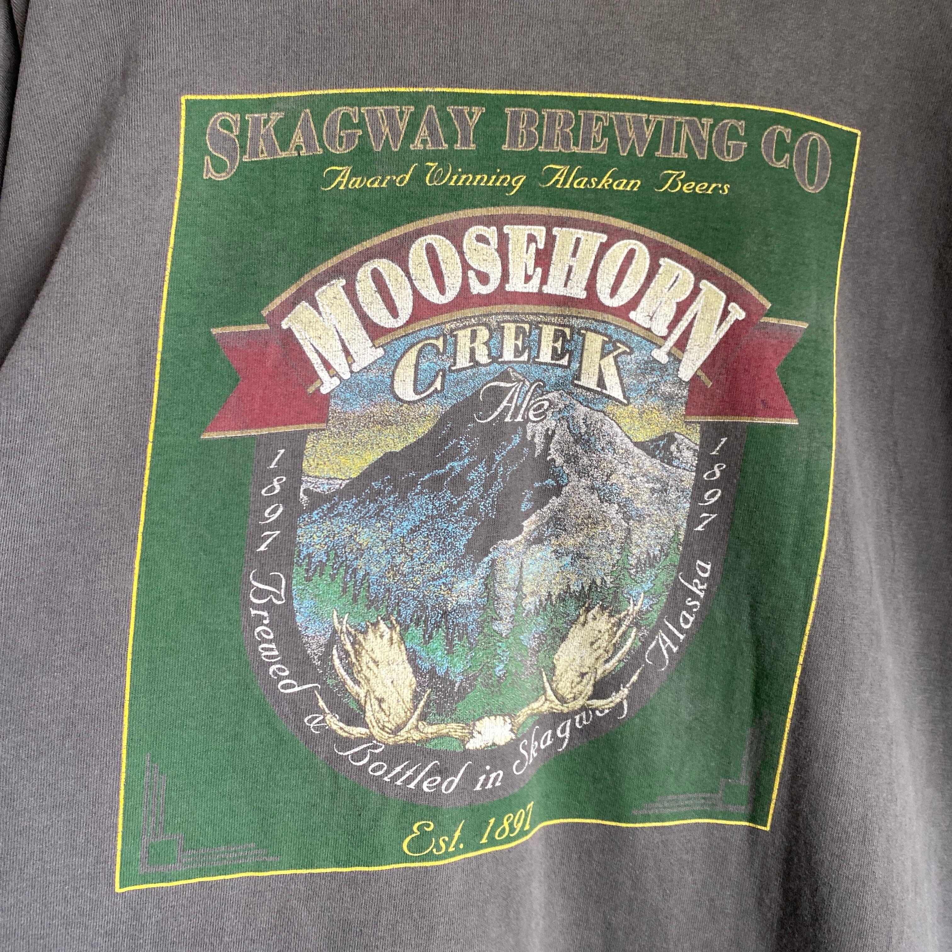 1990年代頃のアメリカ製「スカーグウェイブリューイングカンパニー」両面プリントtシャツになります。(アメリカはアラスカ州スカーグウェイにある、ビール醸造所兼レストラン)