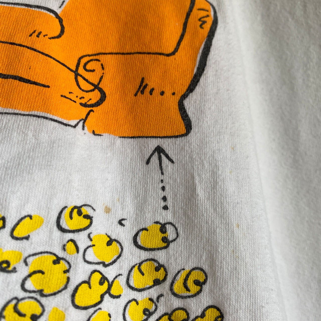 状態/白T特有のくすみ感、薄い汚れなどありますが、個人的にはヴィンテージTらしい良い雰囲気だと思います。(脇あたりの汚れを写した画像に黒い影がありますが、汚れではなく撮影者の影の写り込みです)