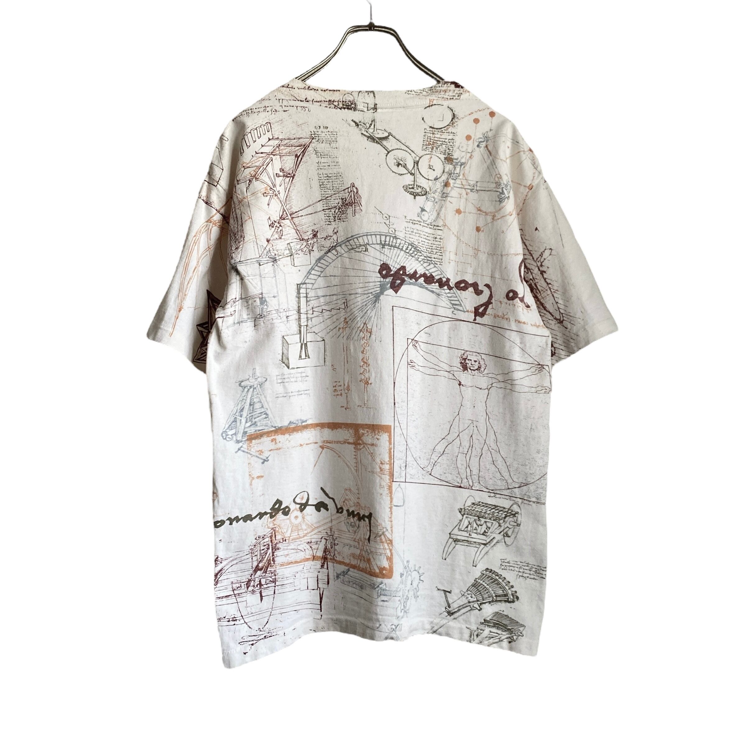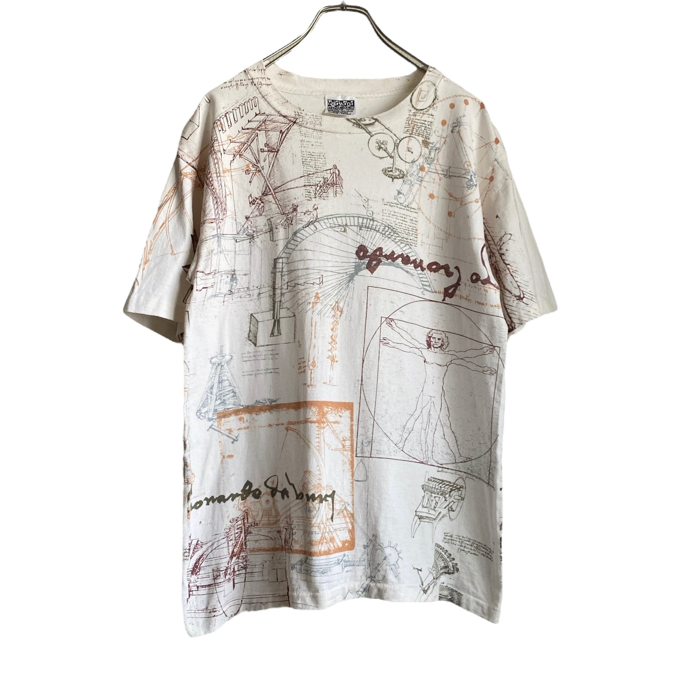 1990年代頃のアメリカ製「leonardo da vinci」アートデザインオールオーバープリントtシャツになります。