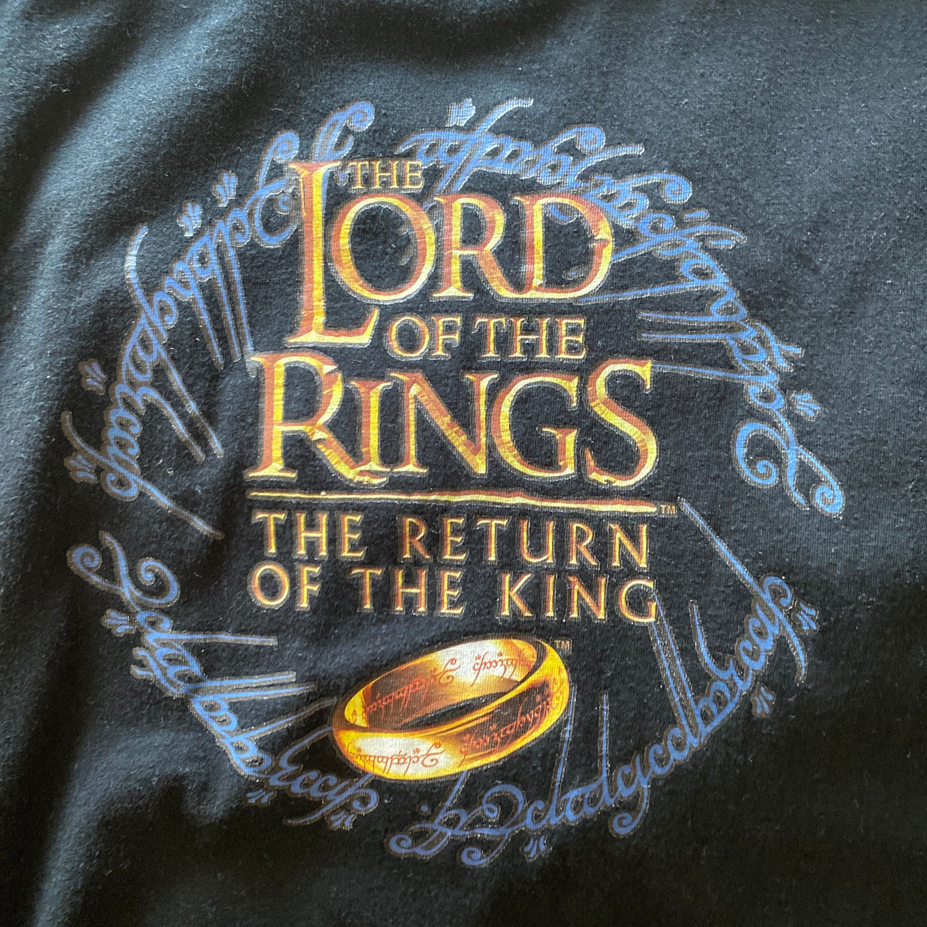 2000年代(コピーライトはありませんが、知り合いのディーラー曰く2003年当時のもの)の「ロードオブザリング王の帰還」プリントtシャツになります。
