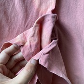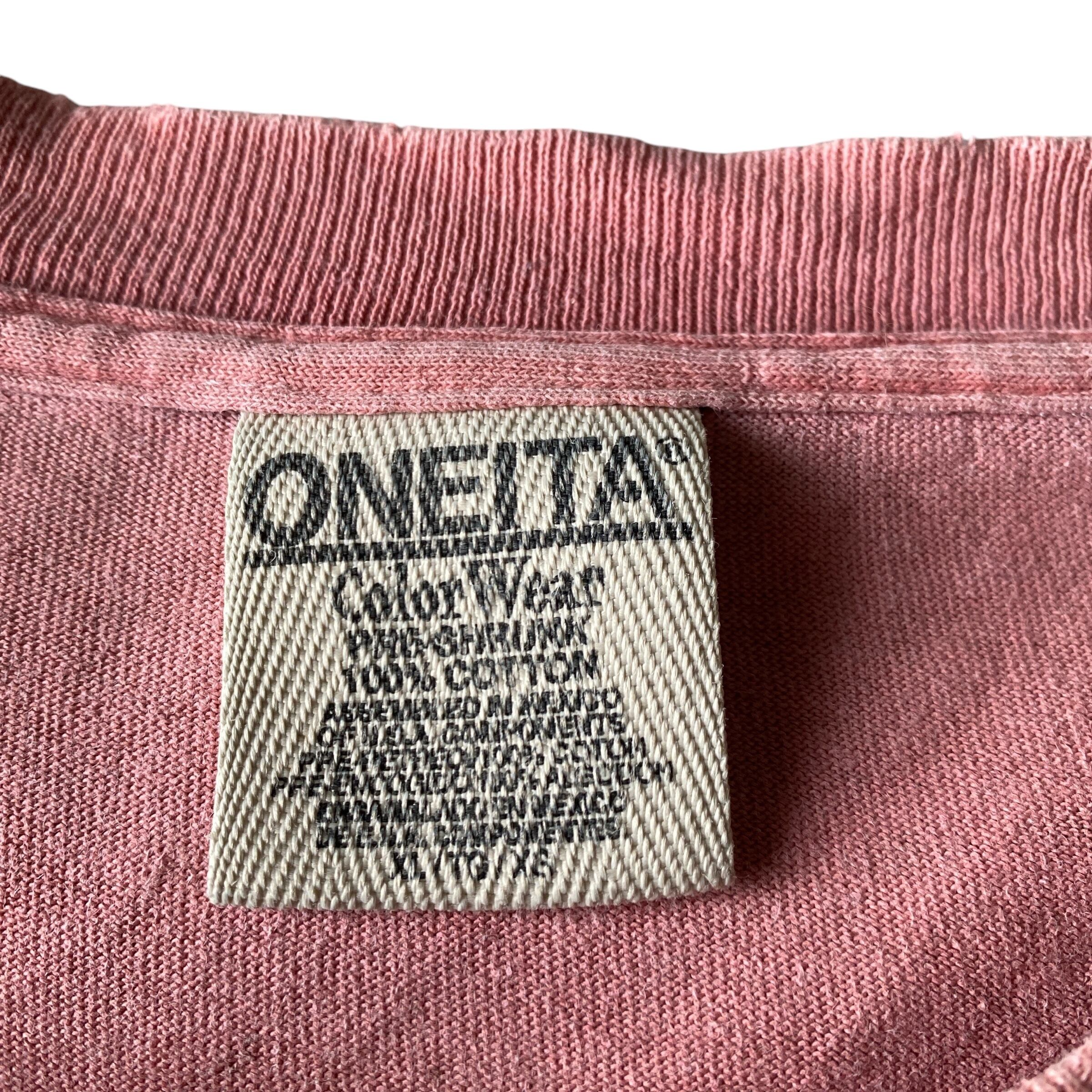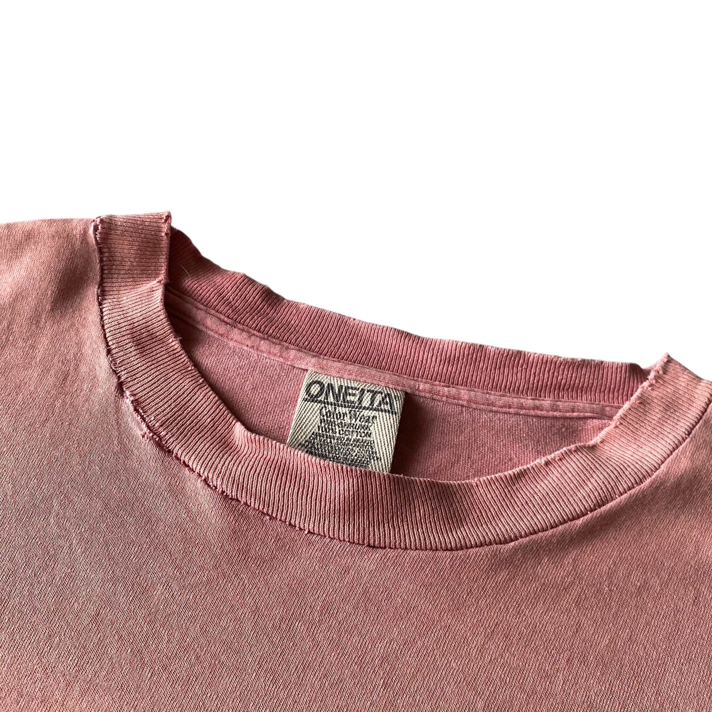 フェードしたくすみピンクボディにランダムなブリーチ、ややダメージの入ったグランジな雰囲気が非常に格好良い一着。