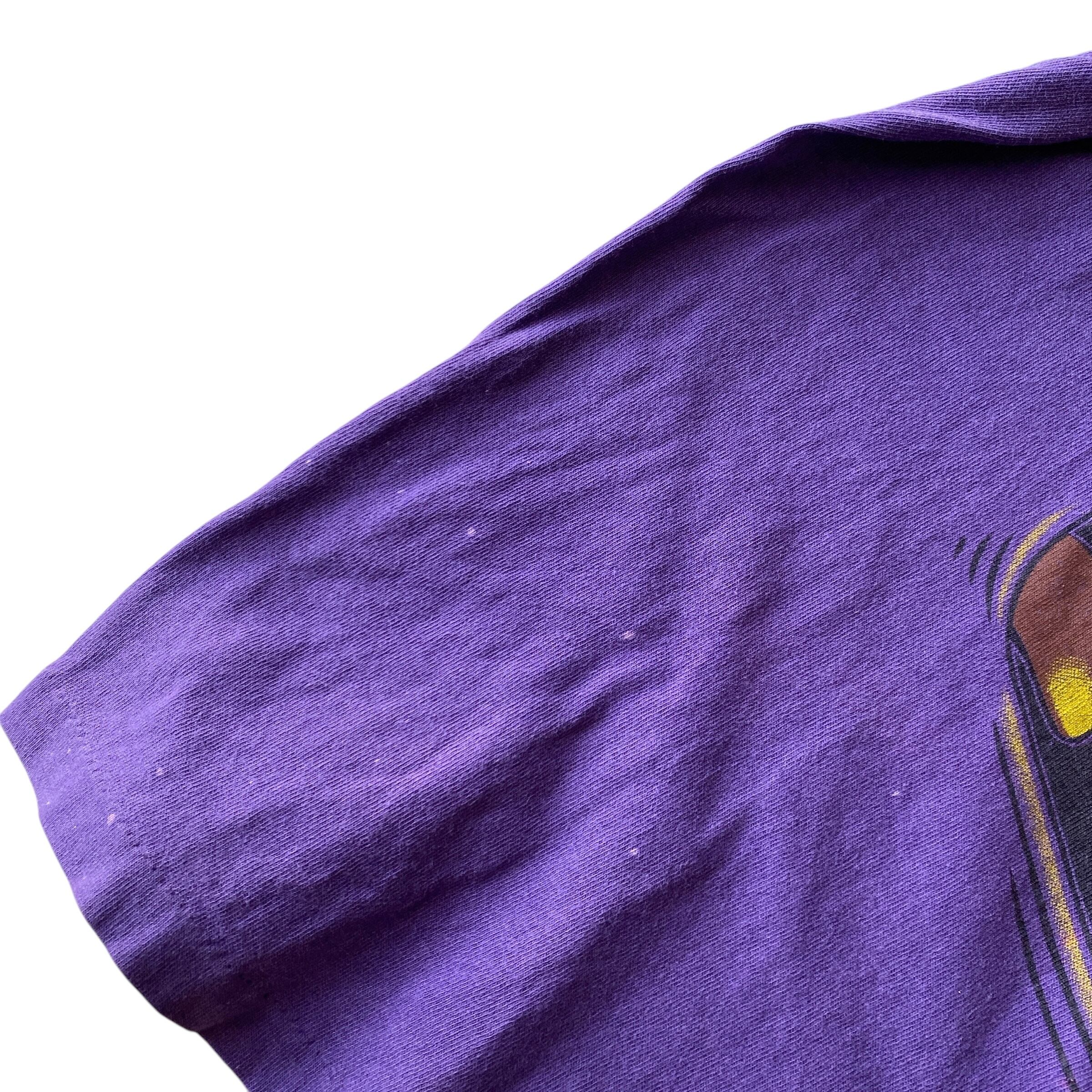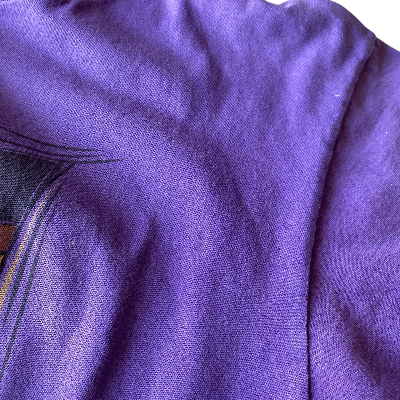 程よくフェードしたパープルボディに、コヨーテの大判リンクプリントが非常にかわいい一着。