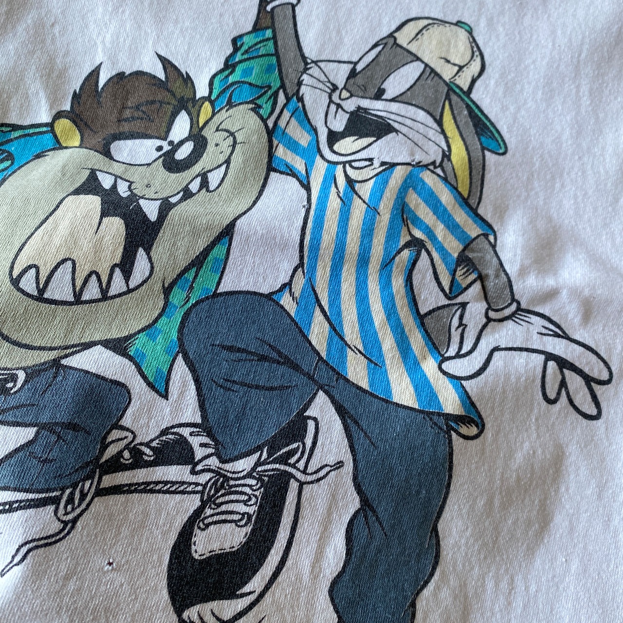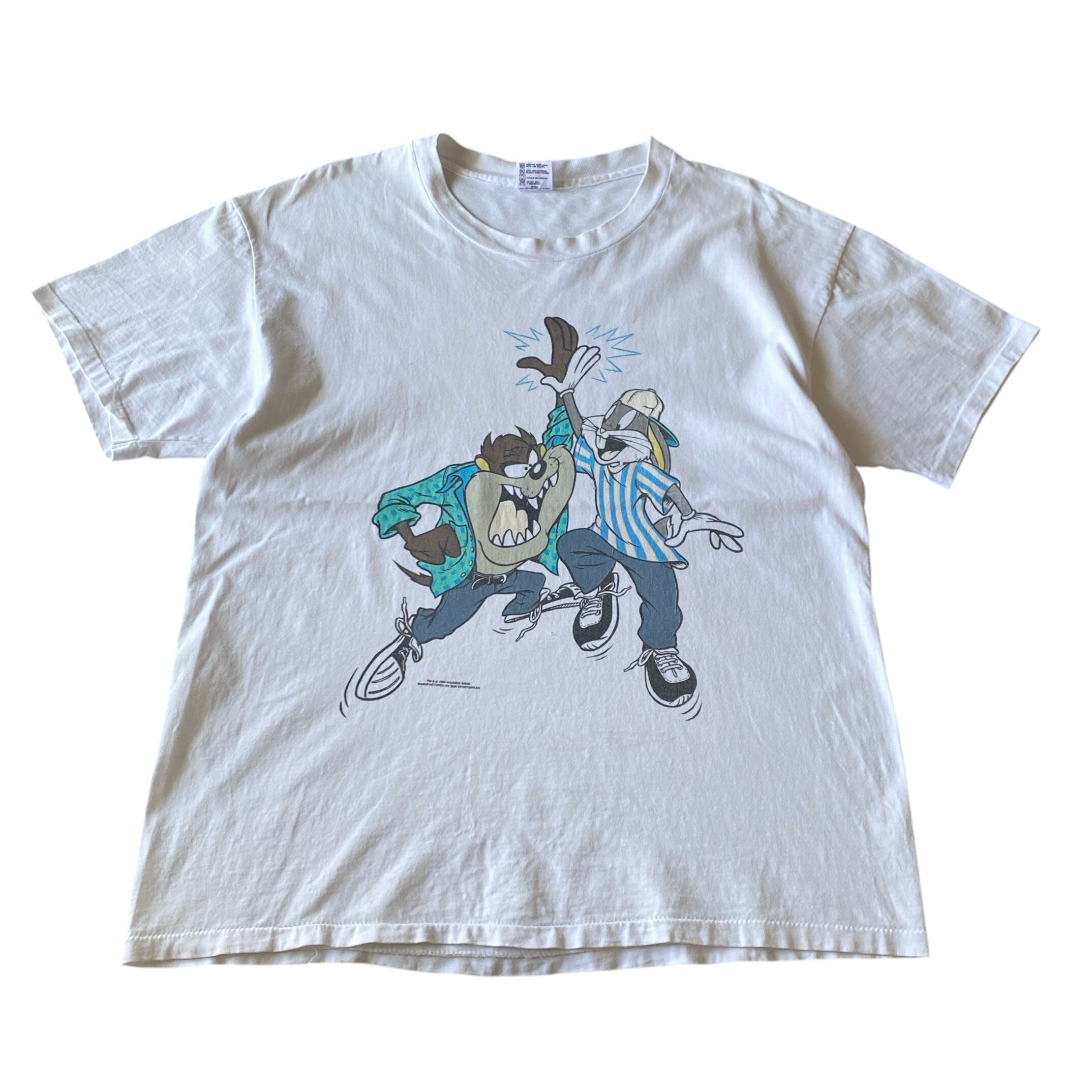 1993年Warner Bros.コピーライトのアメリカ製「ルーニーチューンズ」バッグスバニー&タズマニアンデビルプリントtシャツになります。