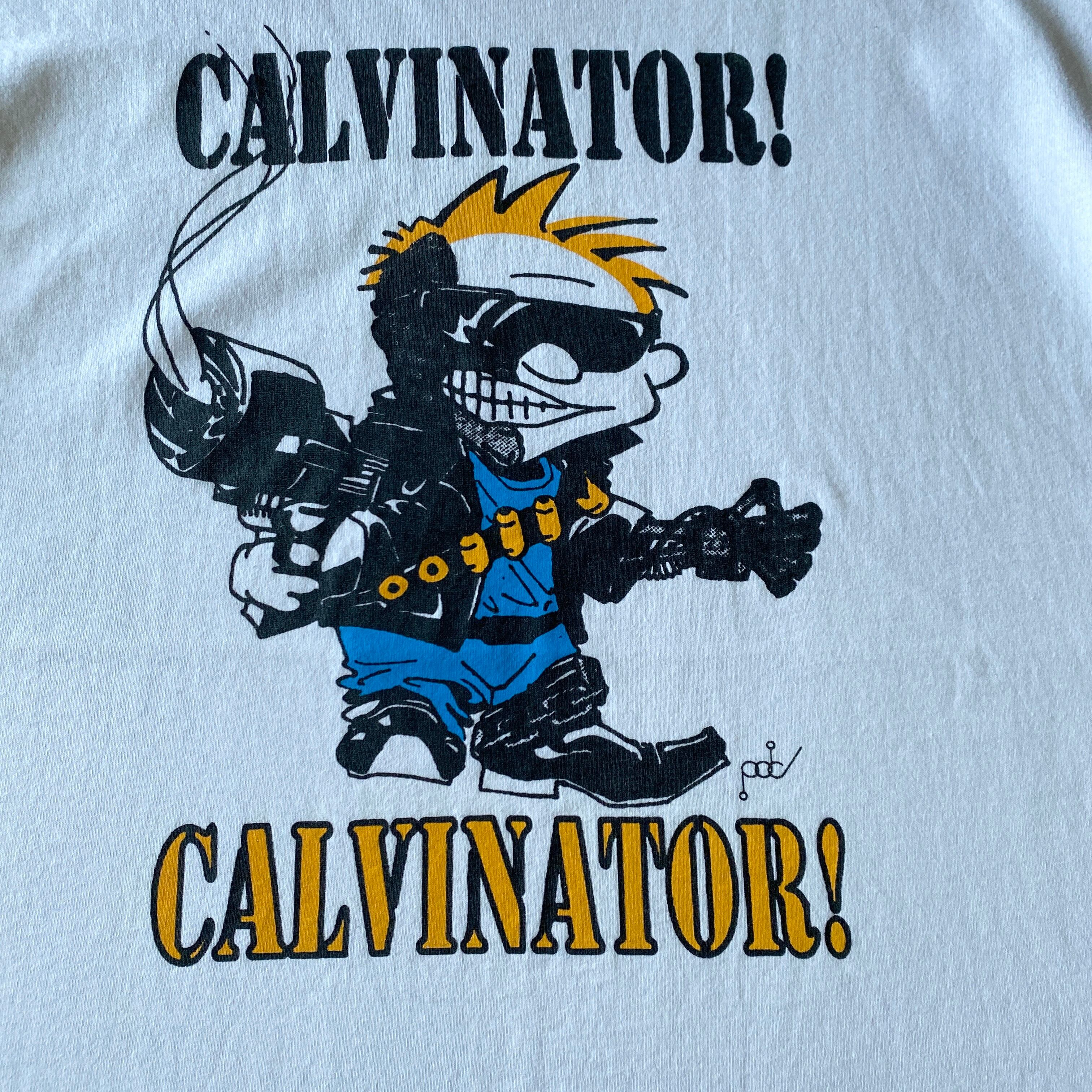 1980年代頃〜アメリカ製「Calvin&Hobbes」TERMINATORパロディプリントtシャツになります。