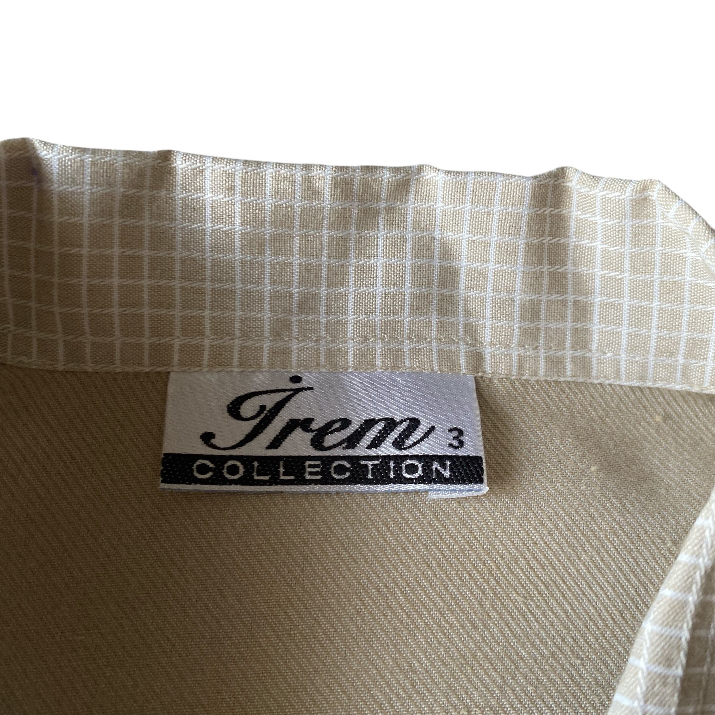 上品なエクリュカラーをベースに、グラフチェックの切り替え、シャークカラーの襟が非常に格好良い一着。