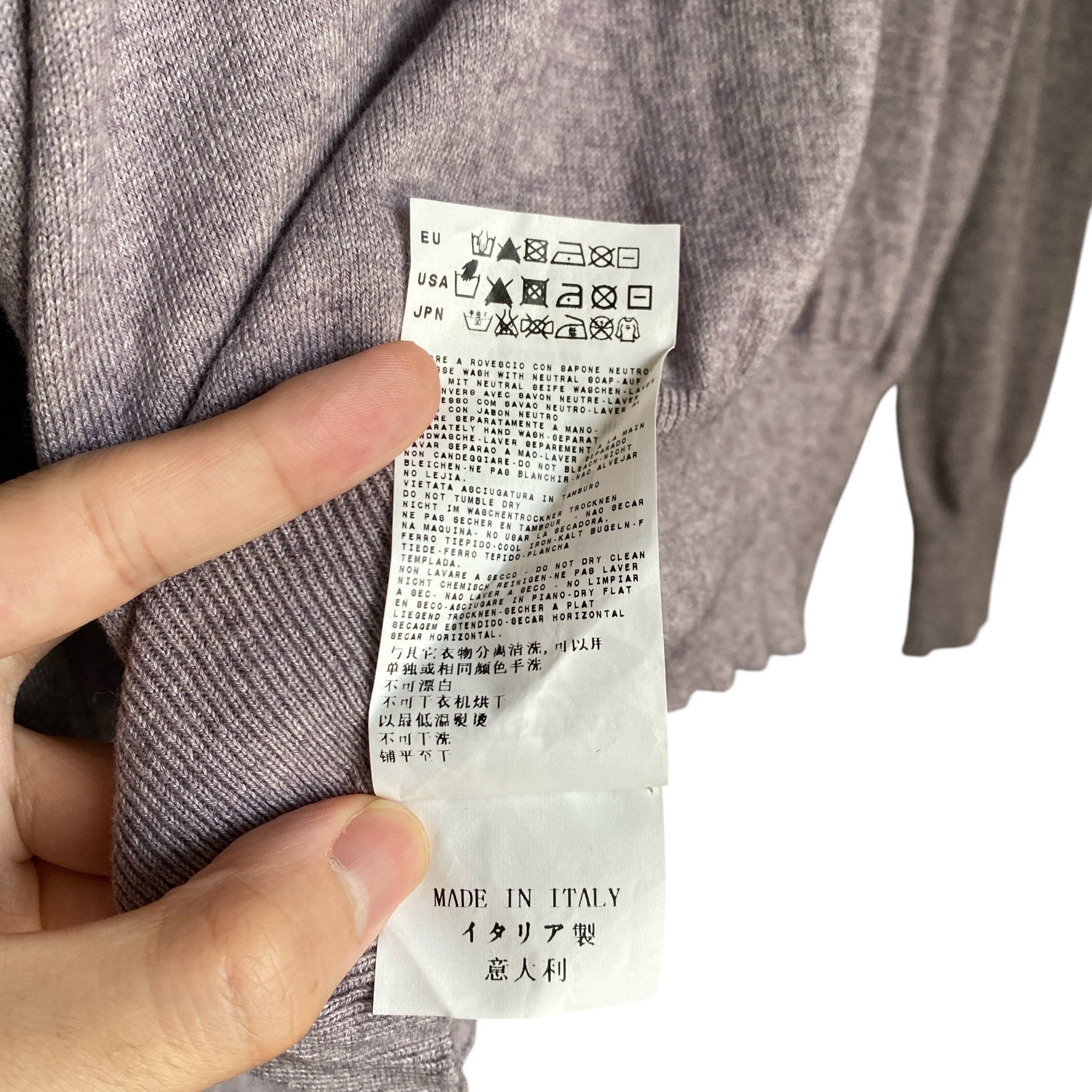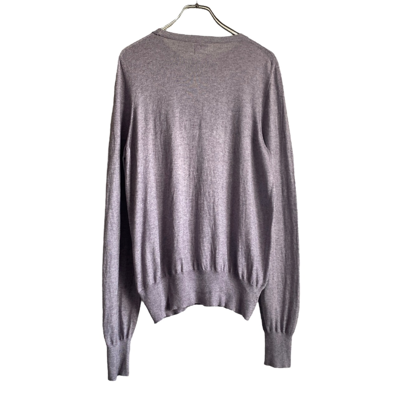 グレーパープル系の上品なメランジカラーに、非常に柔らかいコットンカシミヤの生地感、ジャスト目に着られるベーシックなシルエットが素晴らしい一着。