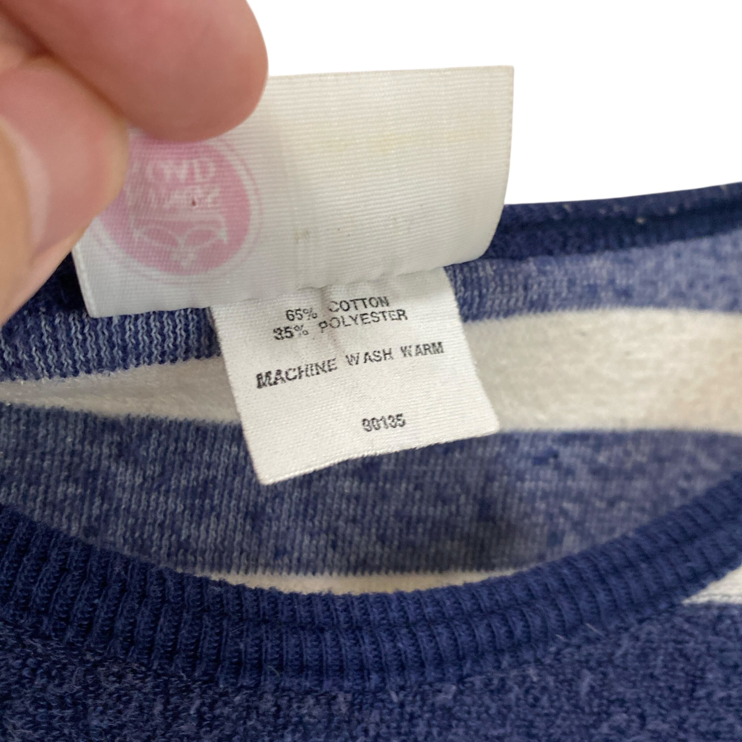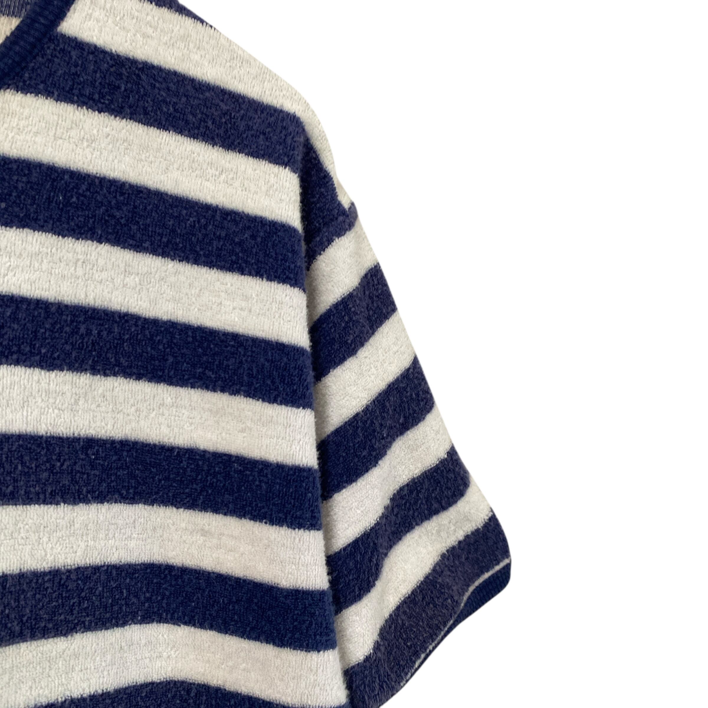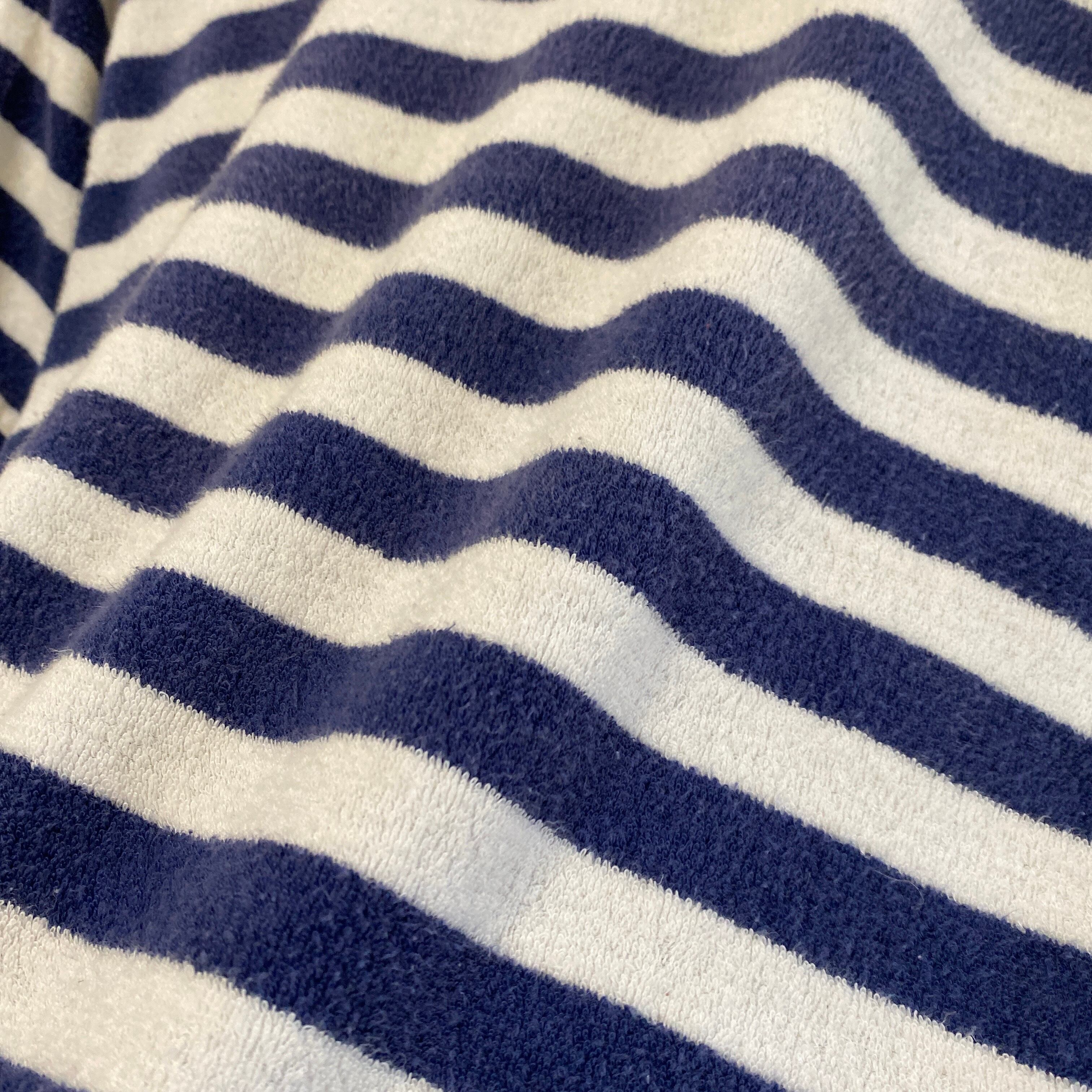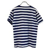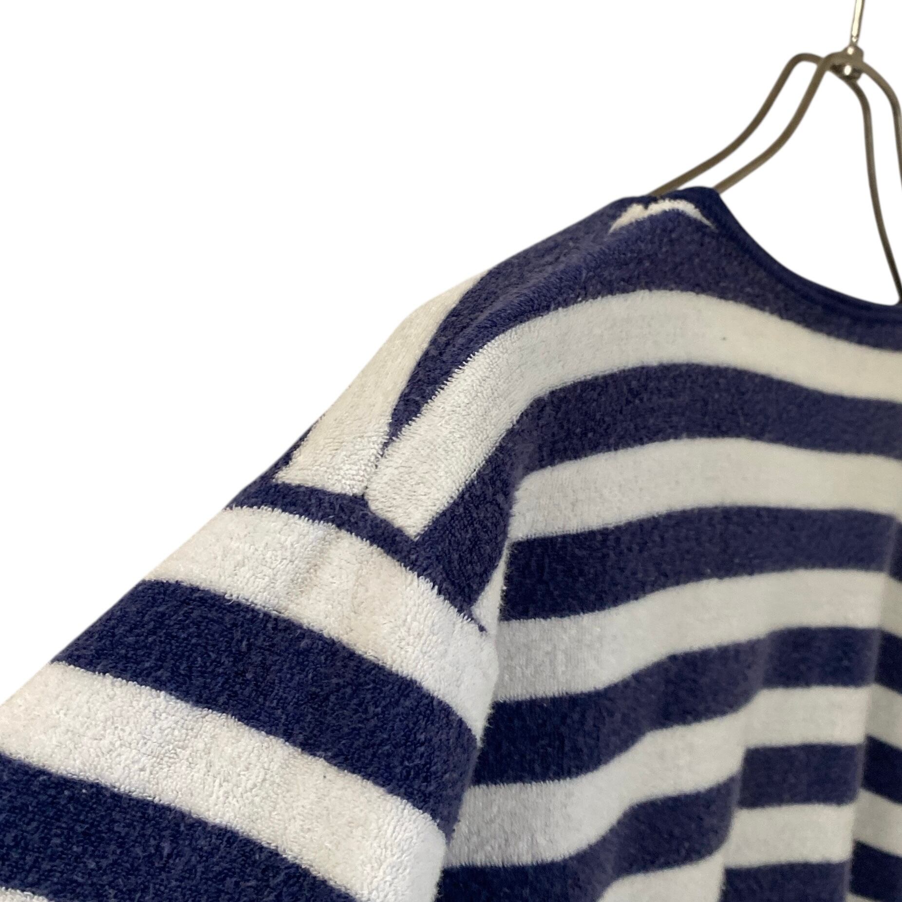 この年代だと時々見かけるパイルのボーダーTですが、こちらは珍しいネイビー×ホワイトのマリンボーダー柄の一着。(実物は写真よりもう気持ち薄く見えるかもしれません)