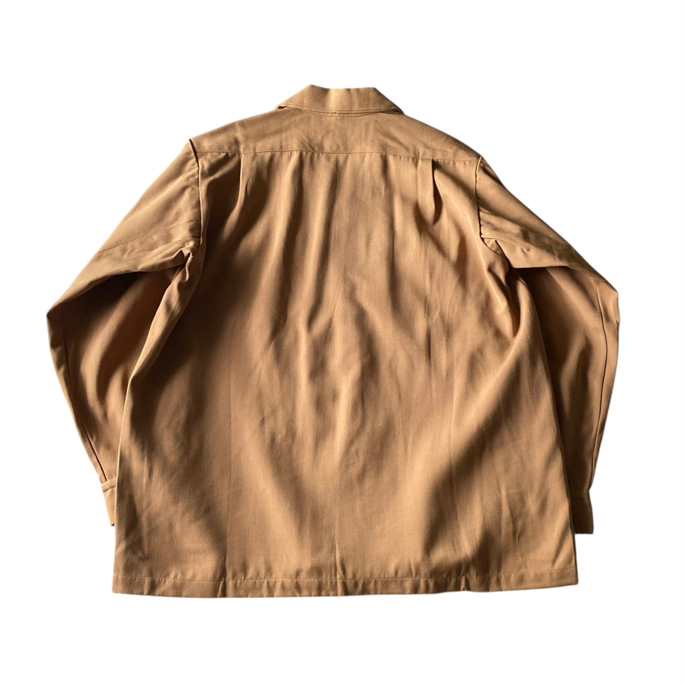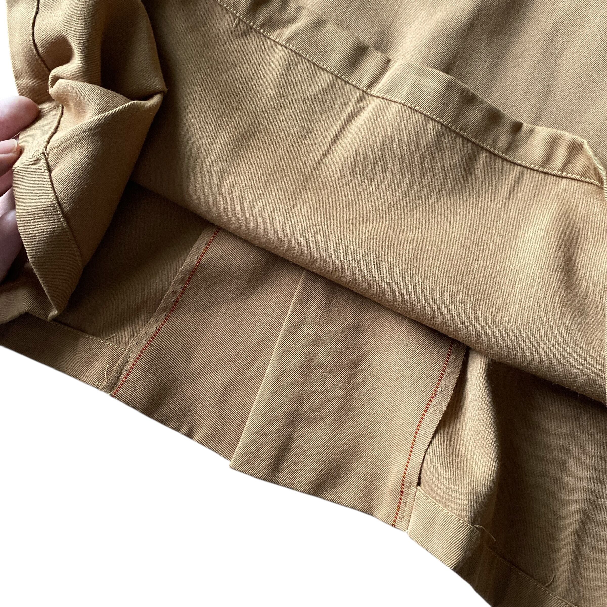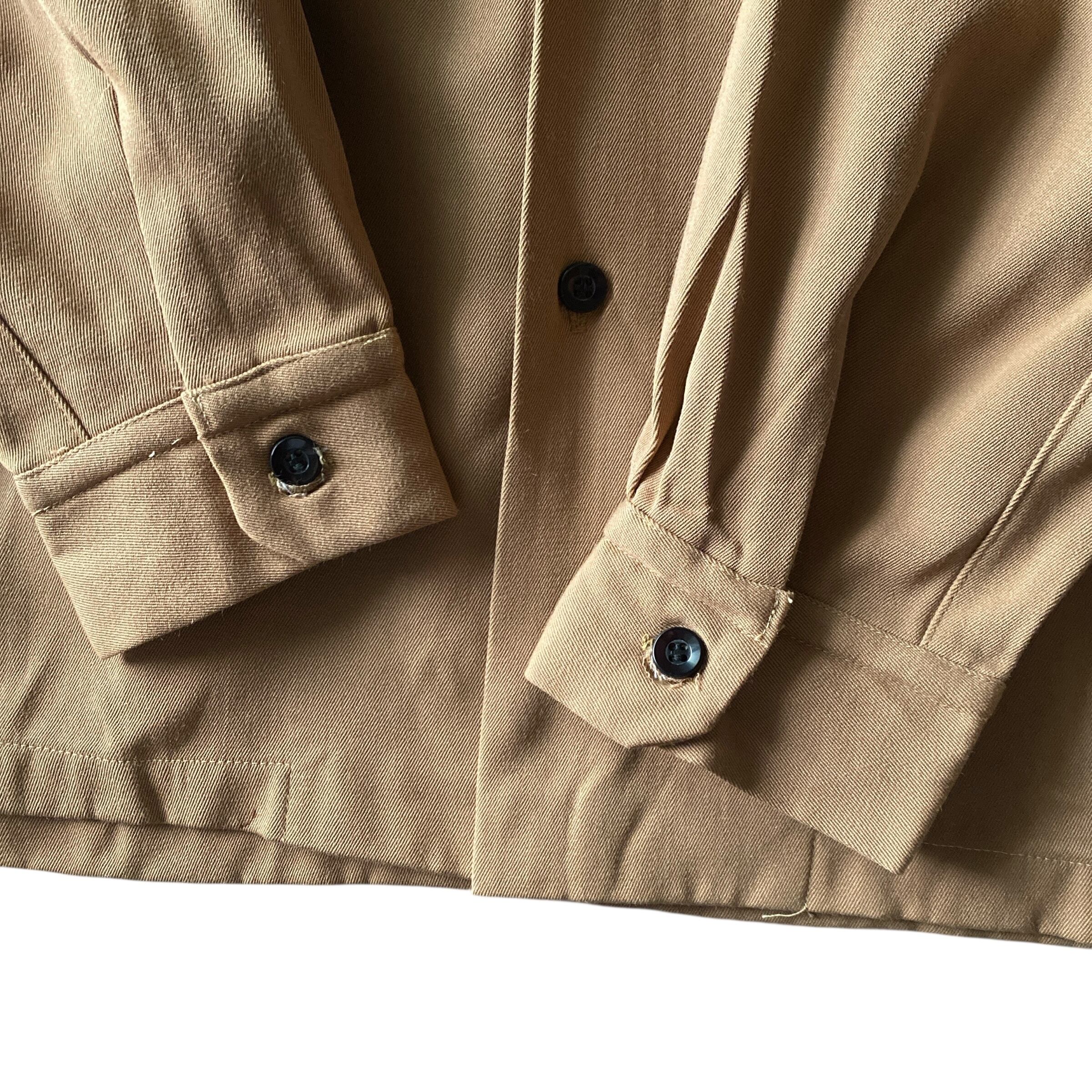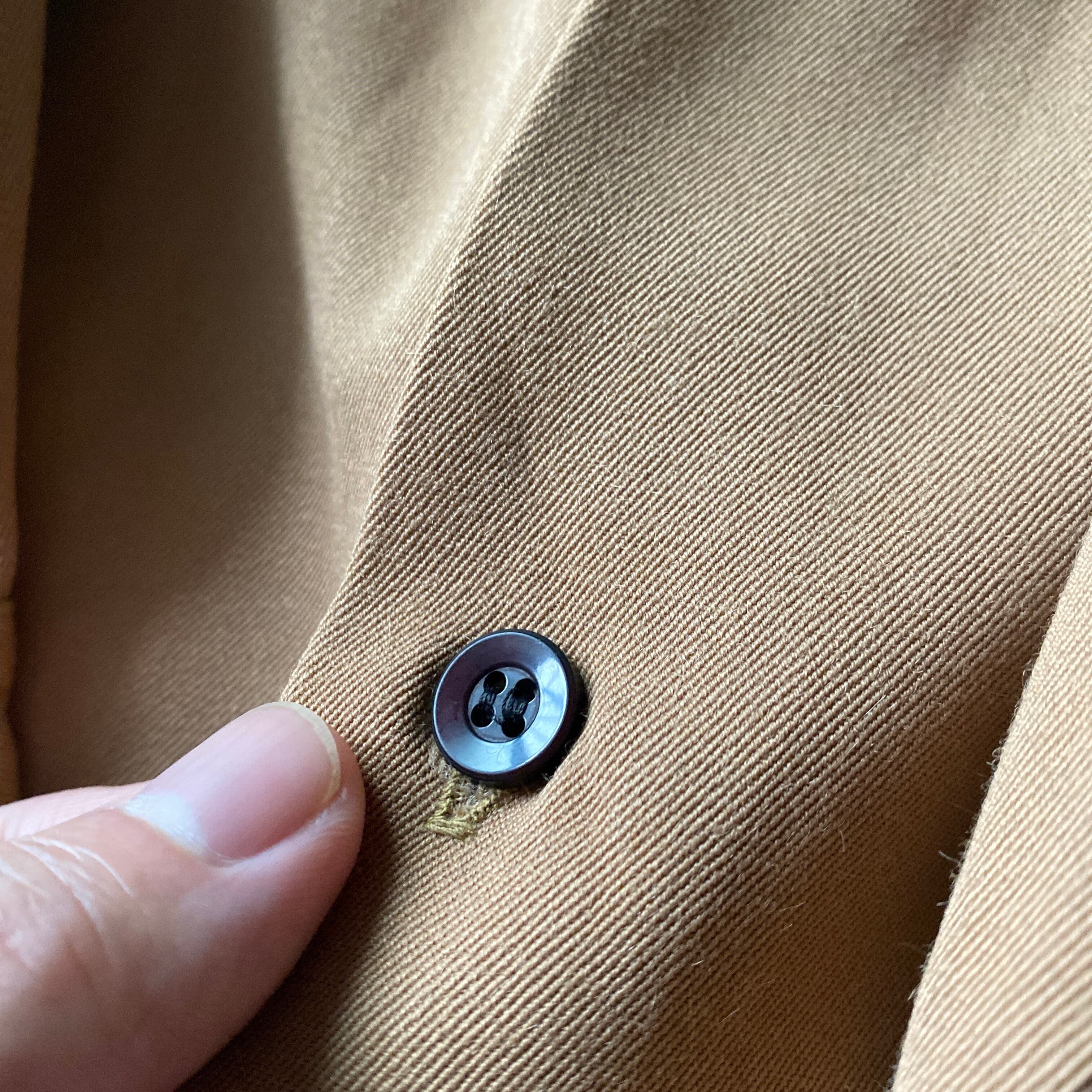 肉厚でがっしりとしたウールギャバジン生地に、キャラメルブラウン系の無骨でありながら上品さのある色目、ボックスシルエットが非常に格好良い一着。