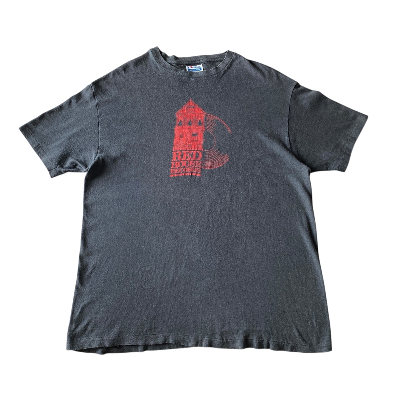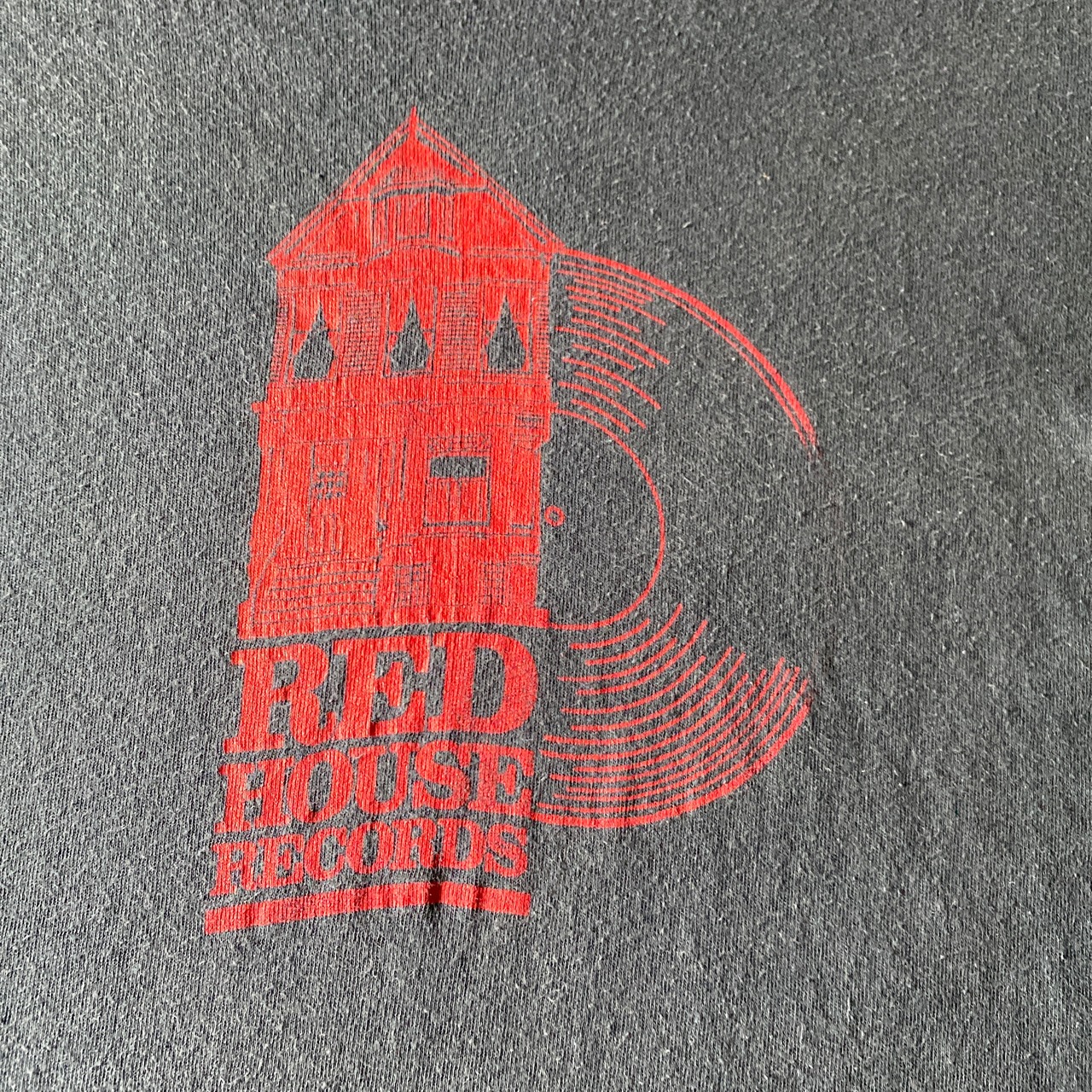1980年代頃〜「レッドハウスレコーズ」ロゴプリントTシャツになります。(1983年設立のフォーク、ブルース、アメリカーナなどのジャンルを扱うレコード会社。60年代のヒットメーカーボブフェルドマンによる。)