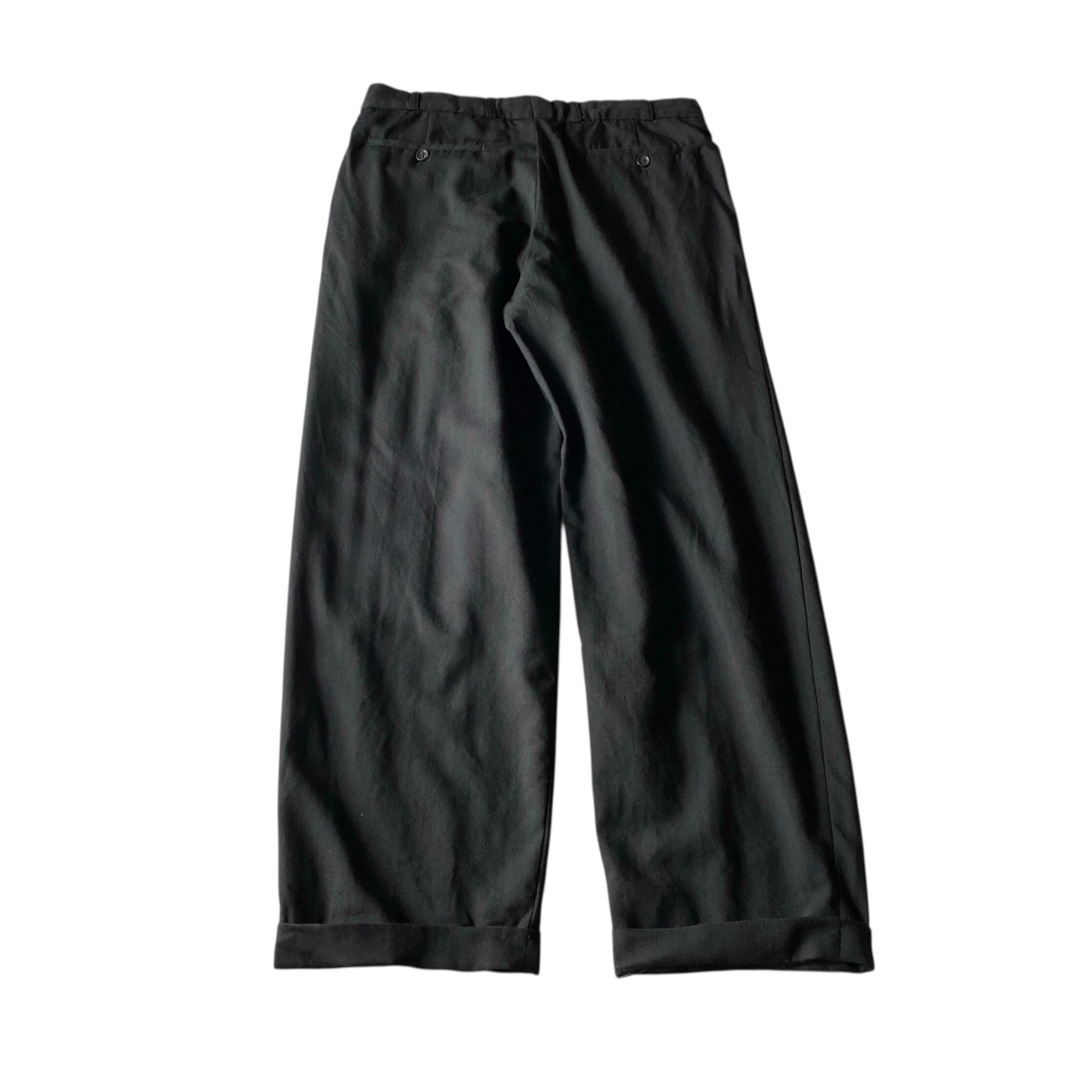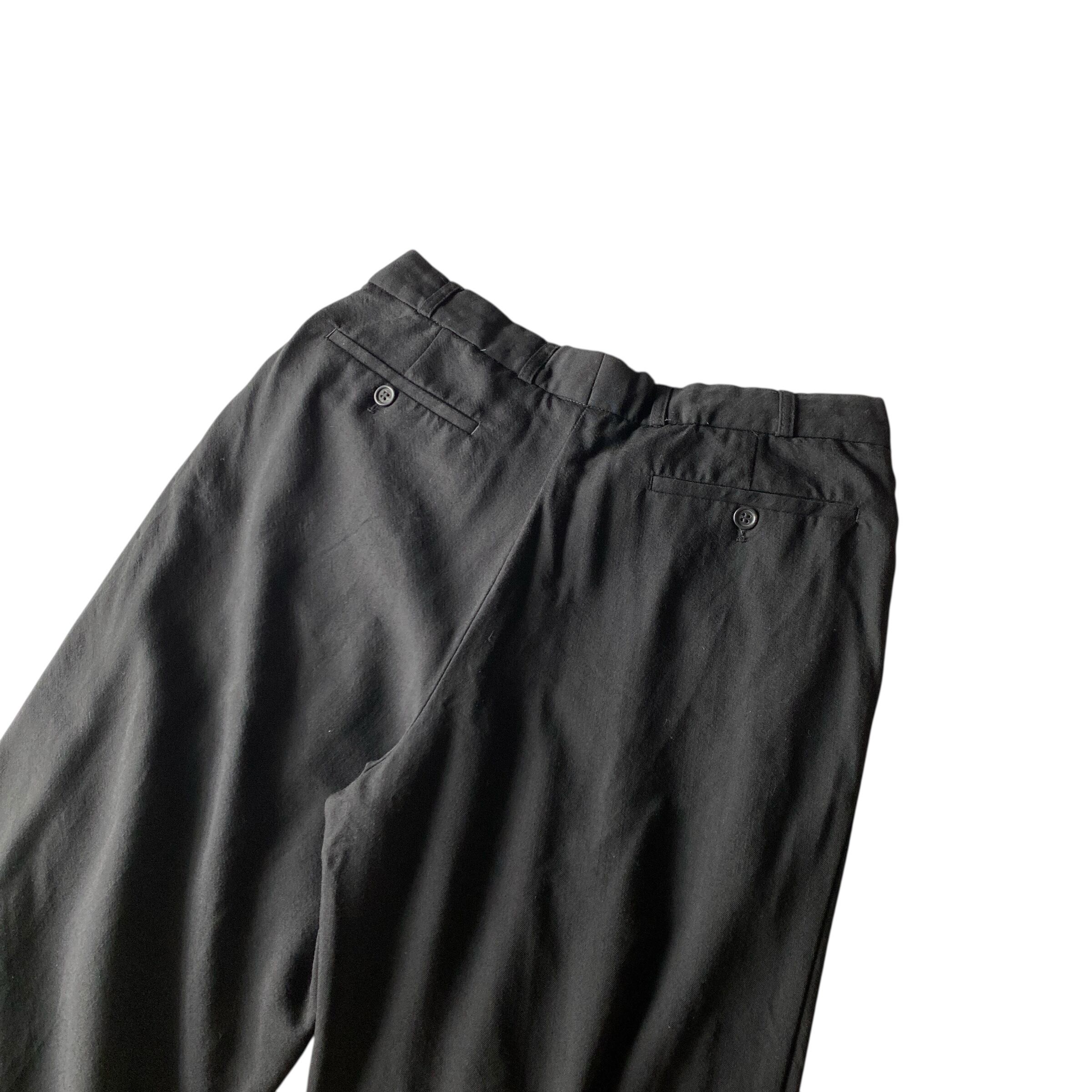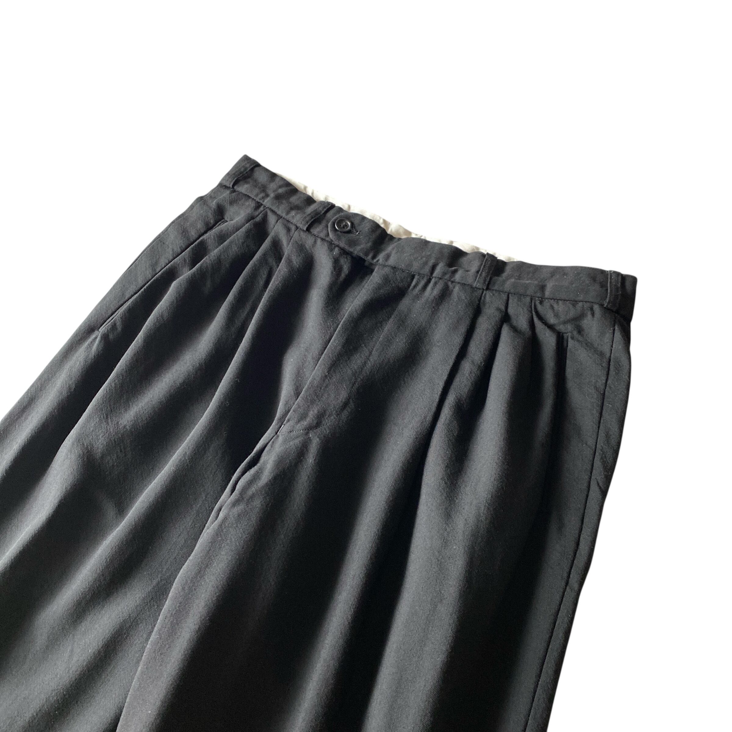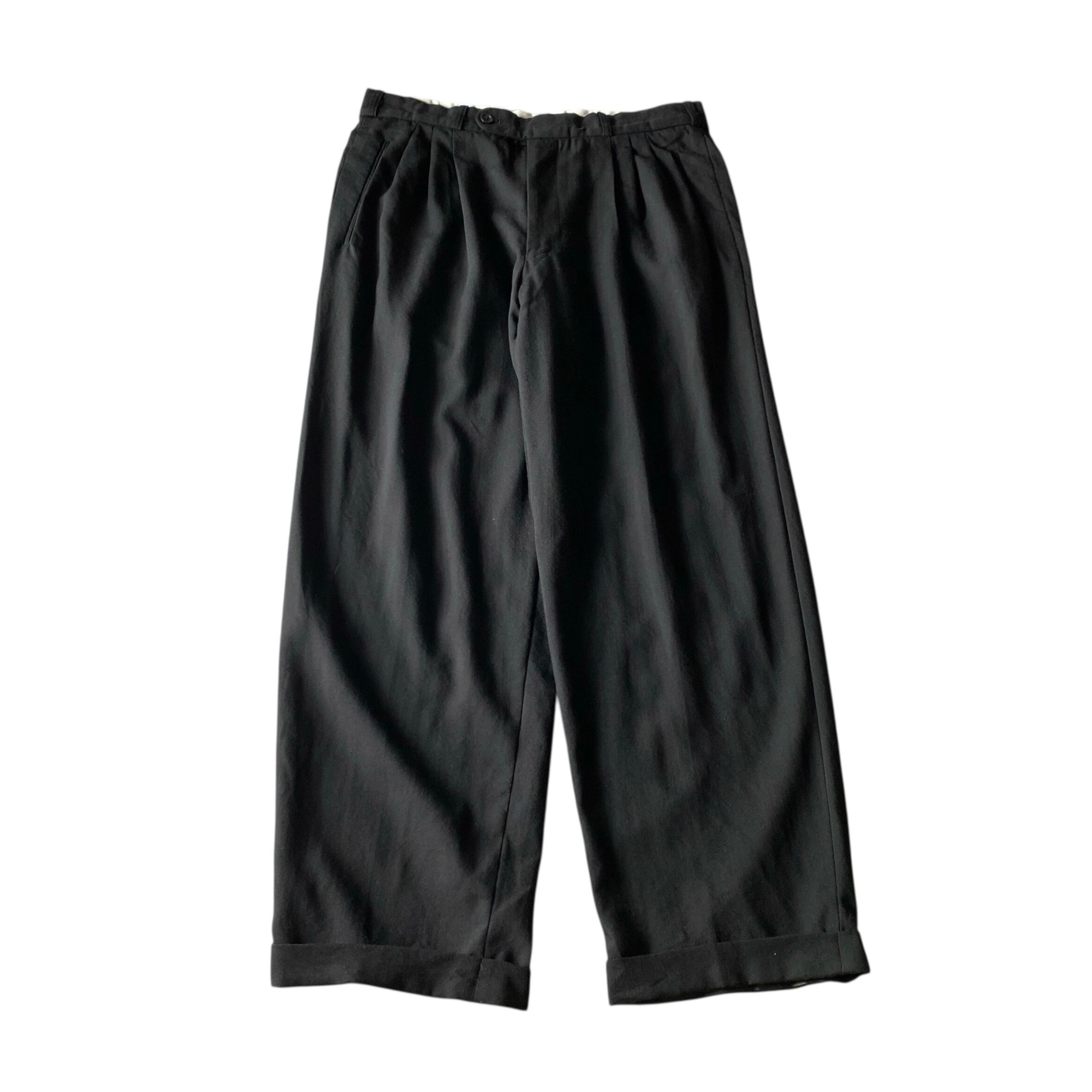程よく肉厚でとろみシボ感のある極上のウールギャバジン生地に、ブラックカラー、ゆったりとしたクラシックシルエットが大変素晴らしい一本。