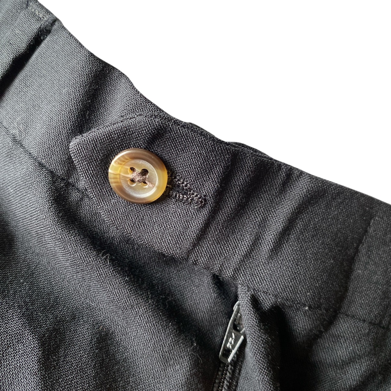 とろみのある平織りのサマーウール生地に、ブラックカラー、ドレープ感のあるワイド目で美しいシルエット、シンプルミニマルなデザインが非常に格好良い一着。