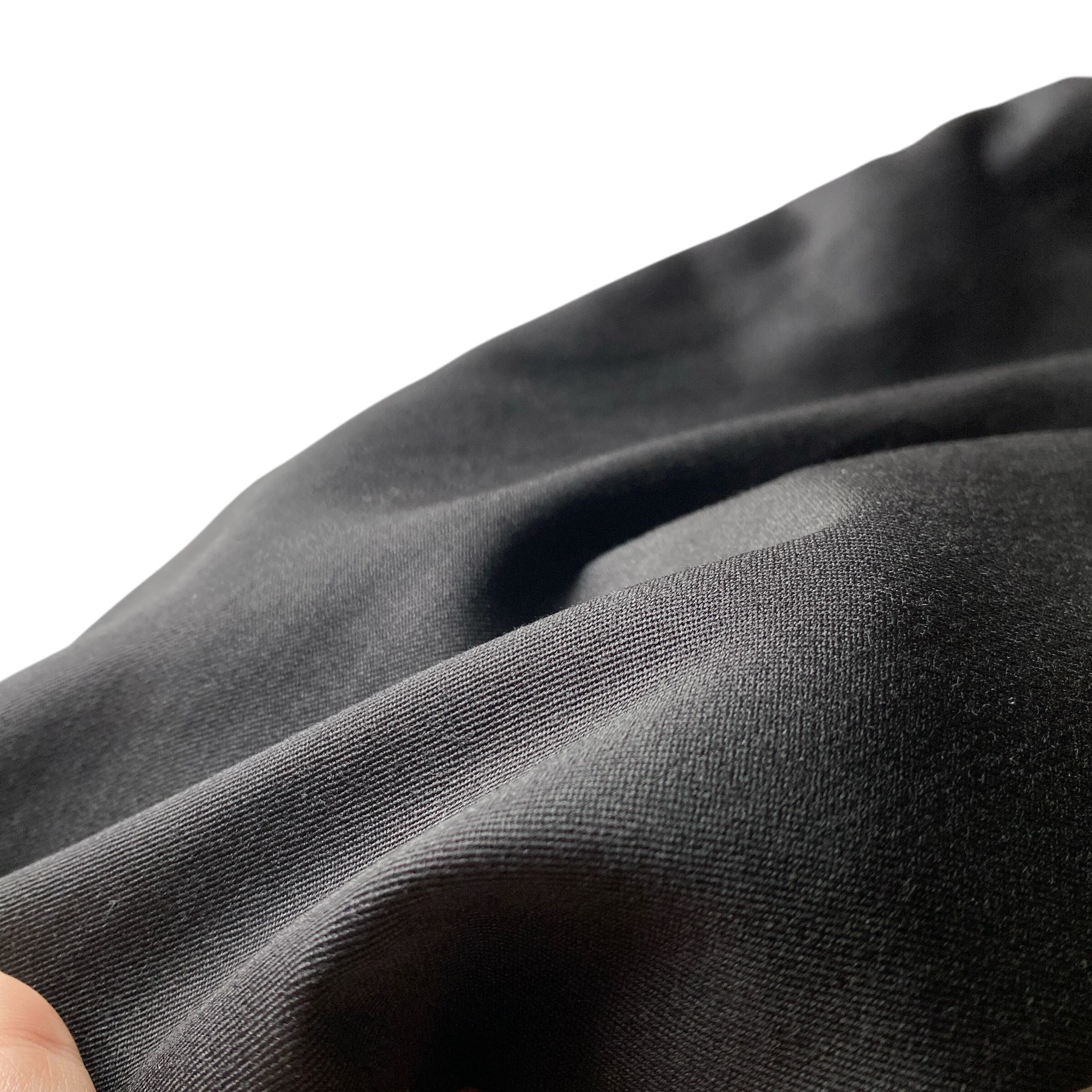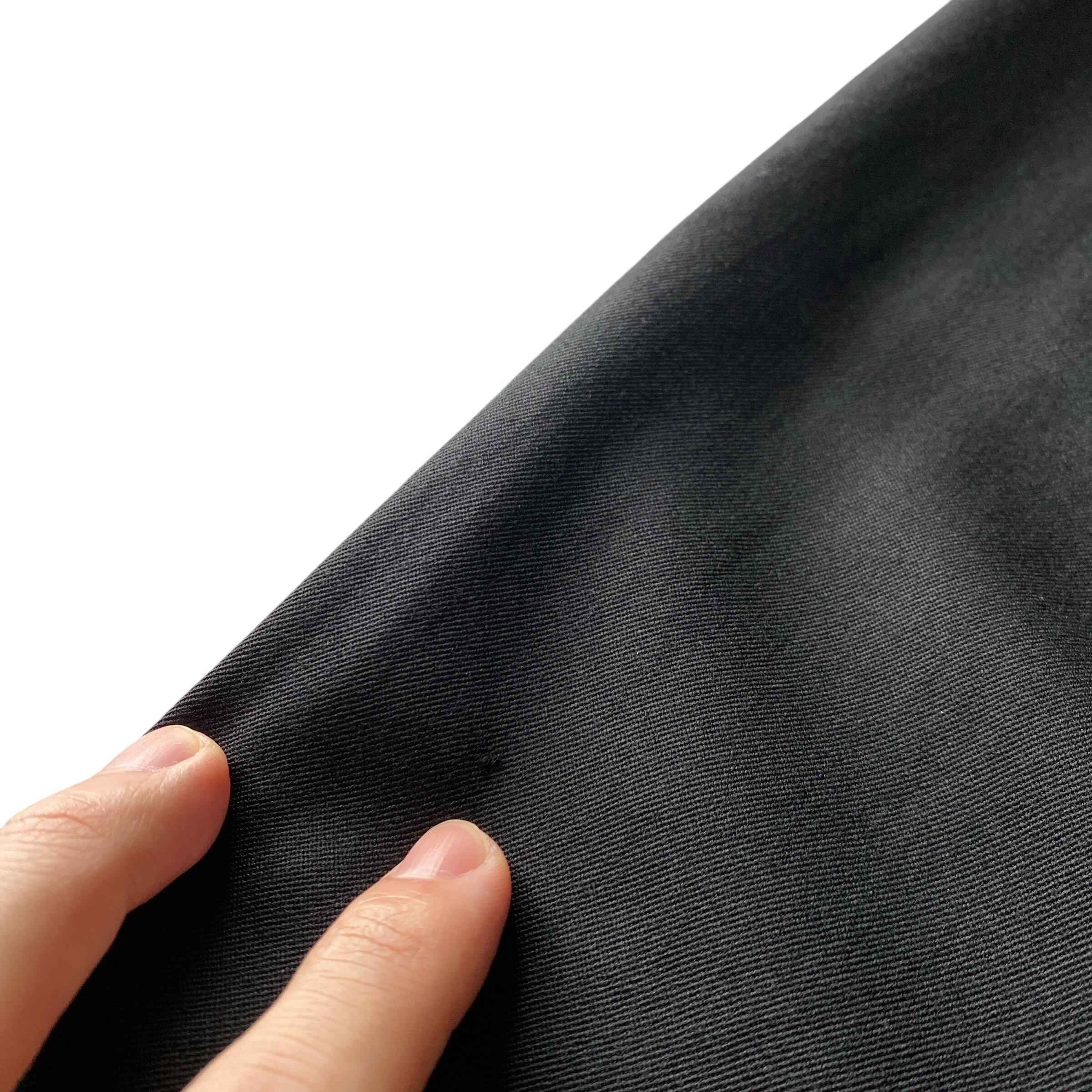 程よく肉厚で、目の詰まったドレープ感の強い極上のウールギャバジン生地に、ブラックカラー、ゆったりとしたクラシックなシルエットが素晴らしい一着。
