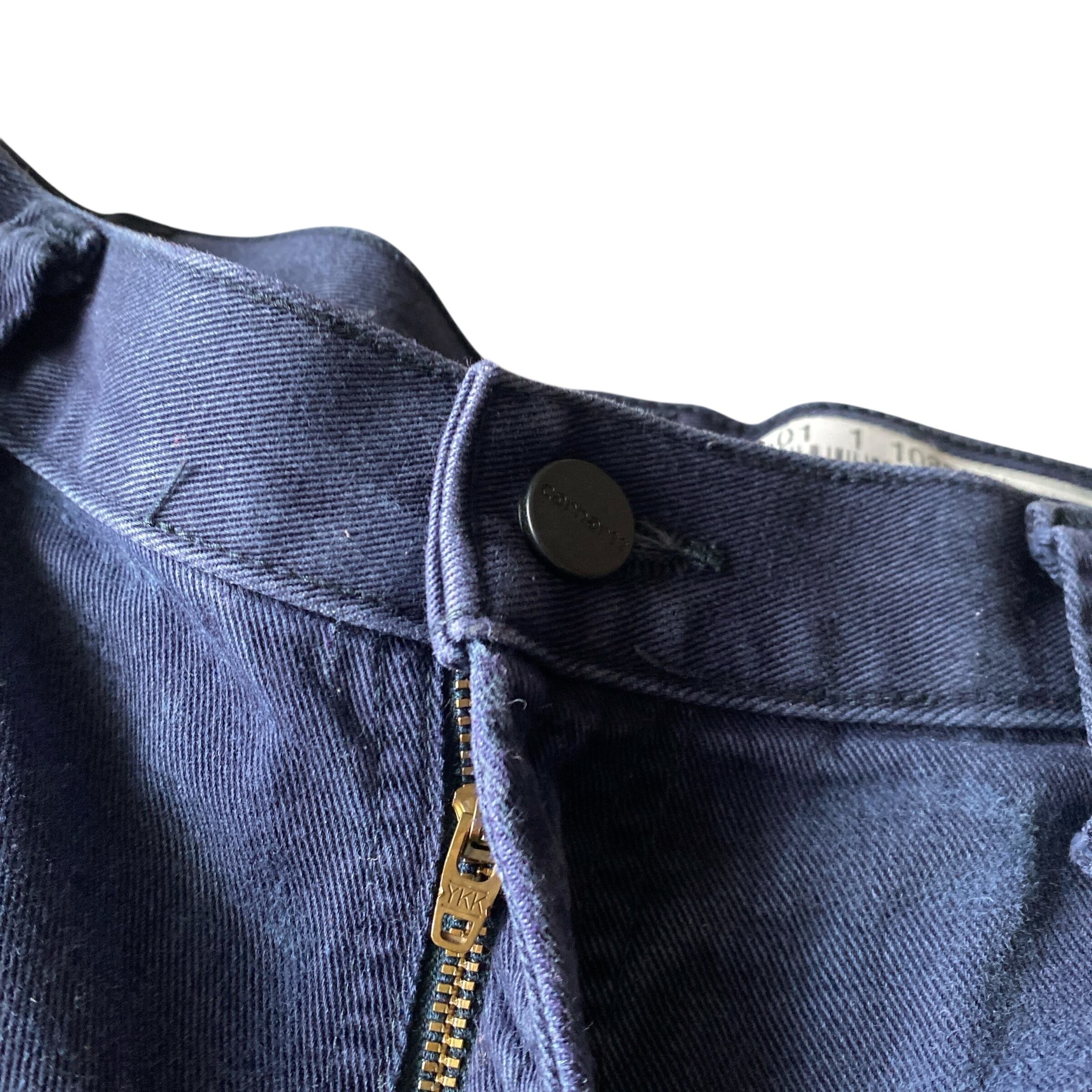 コットンにナイロンが少し混紡された程よく肉厚で風合いの良いツイル生地に、フェードしたネイビーカラー、ゆとりのあるベーシックなストレートシルエットが非常に格好良い一着。
