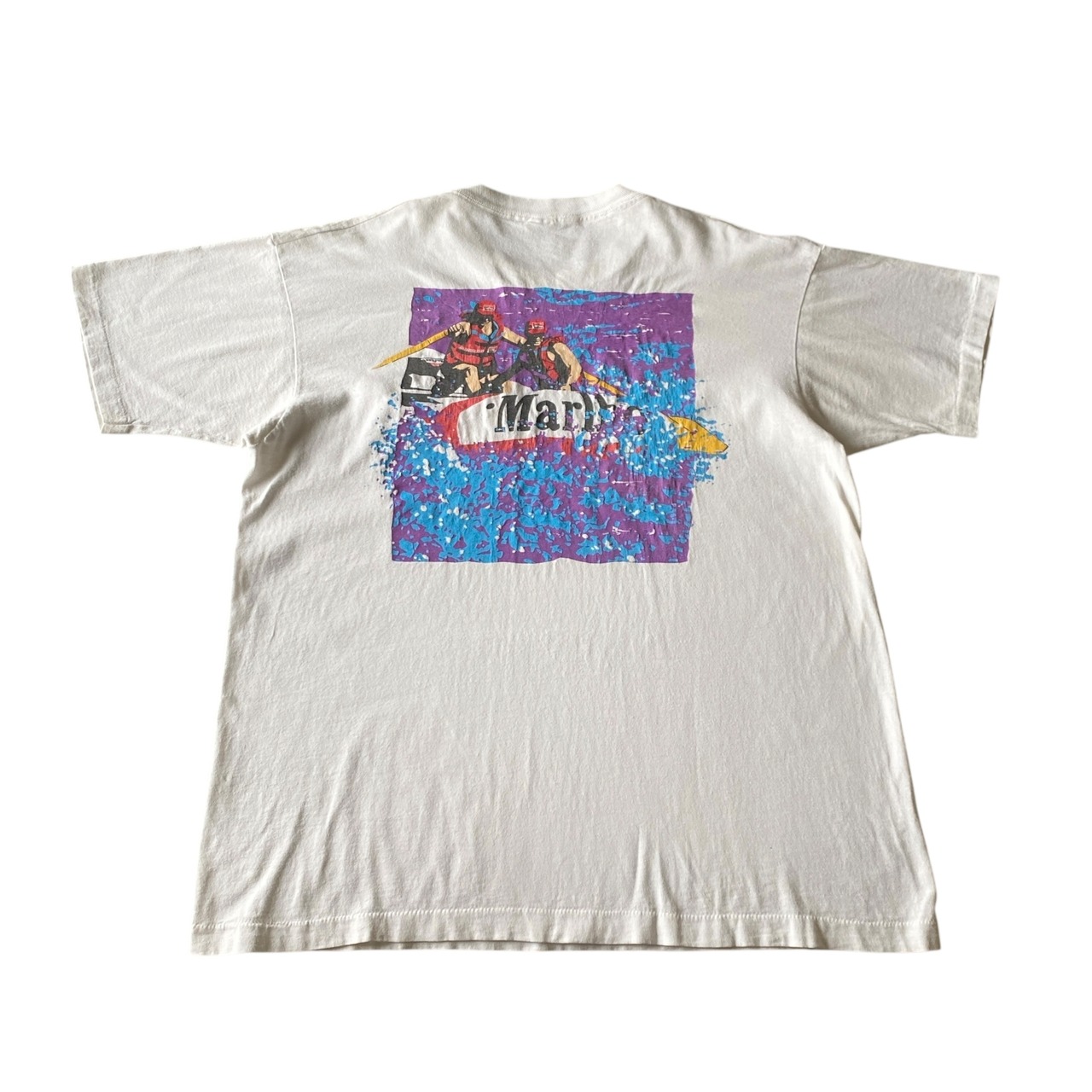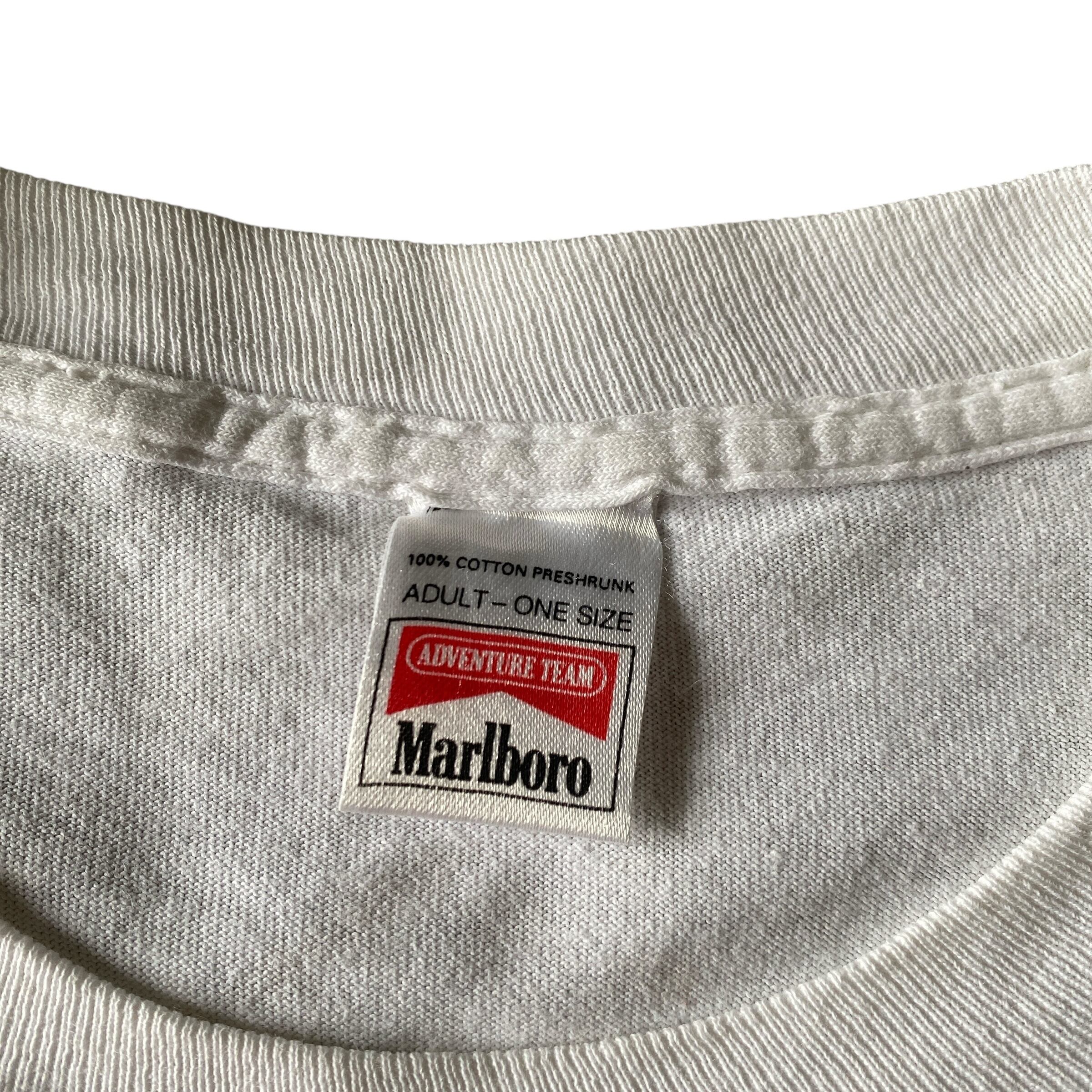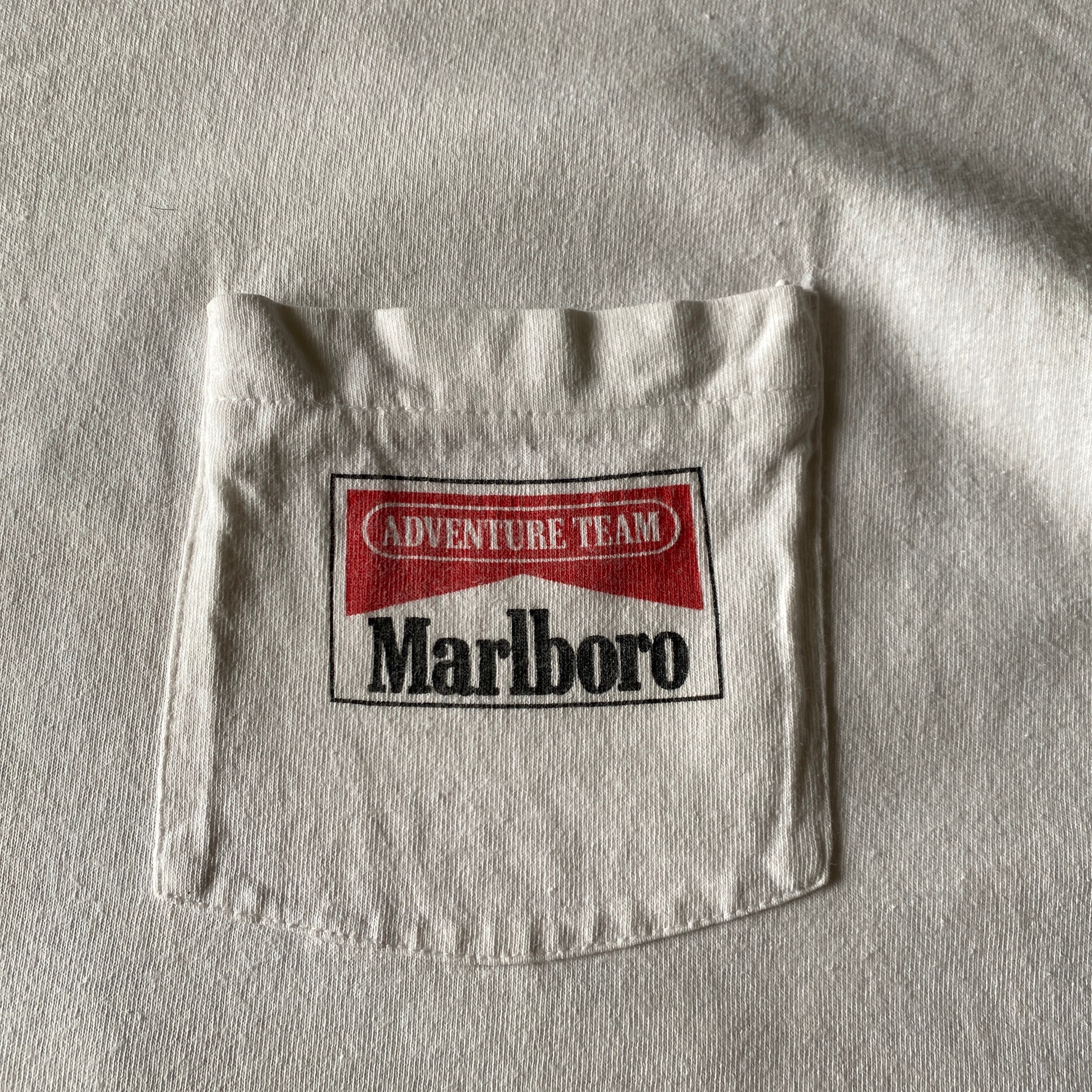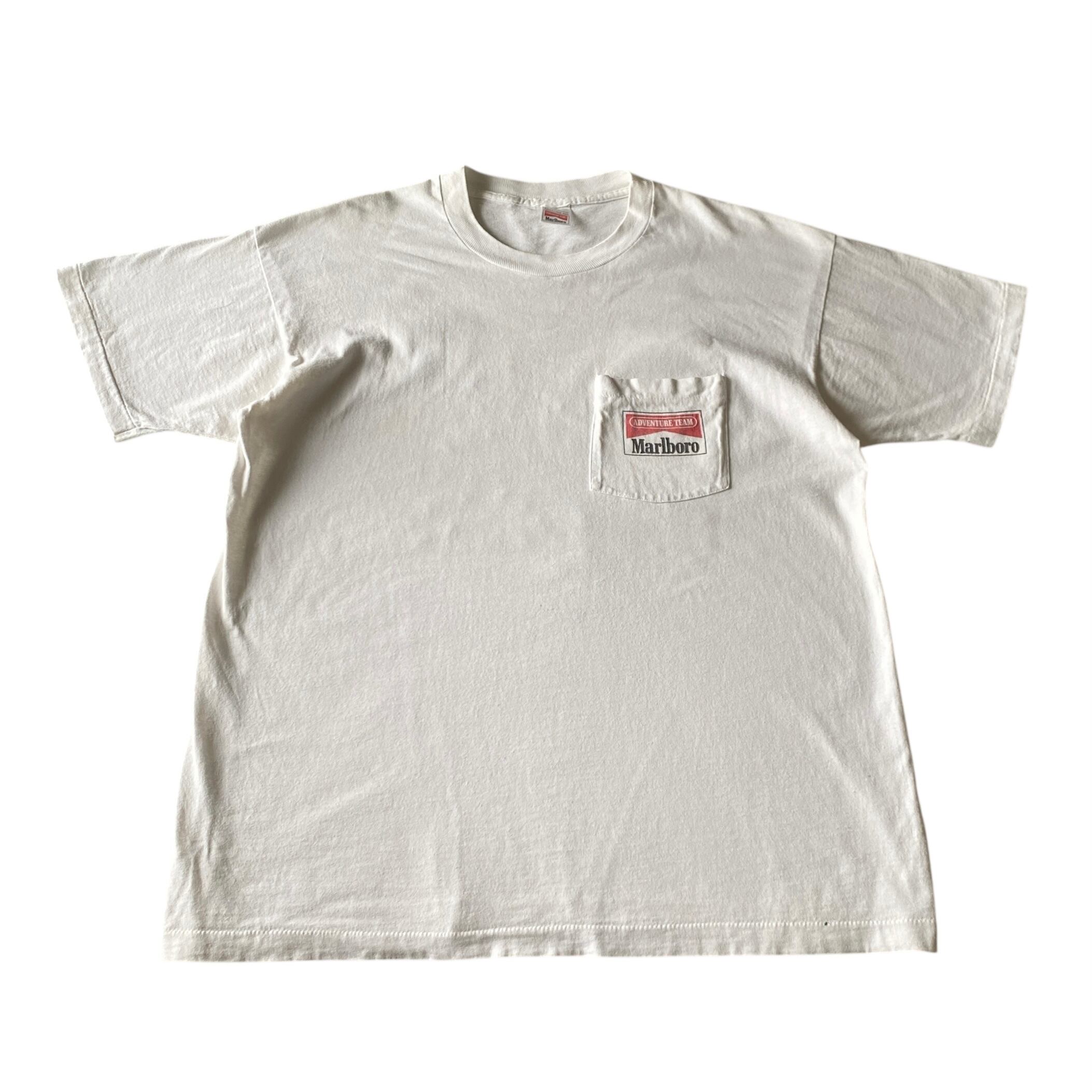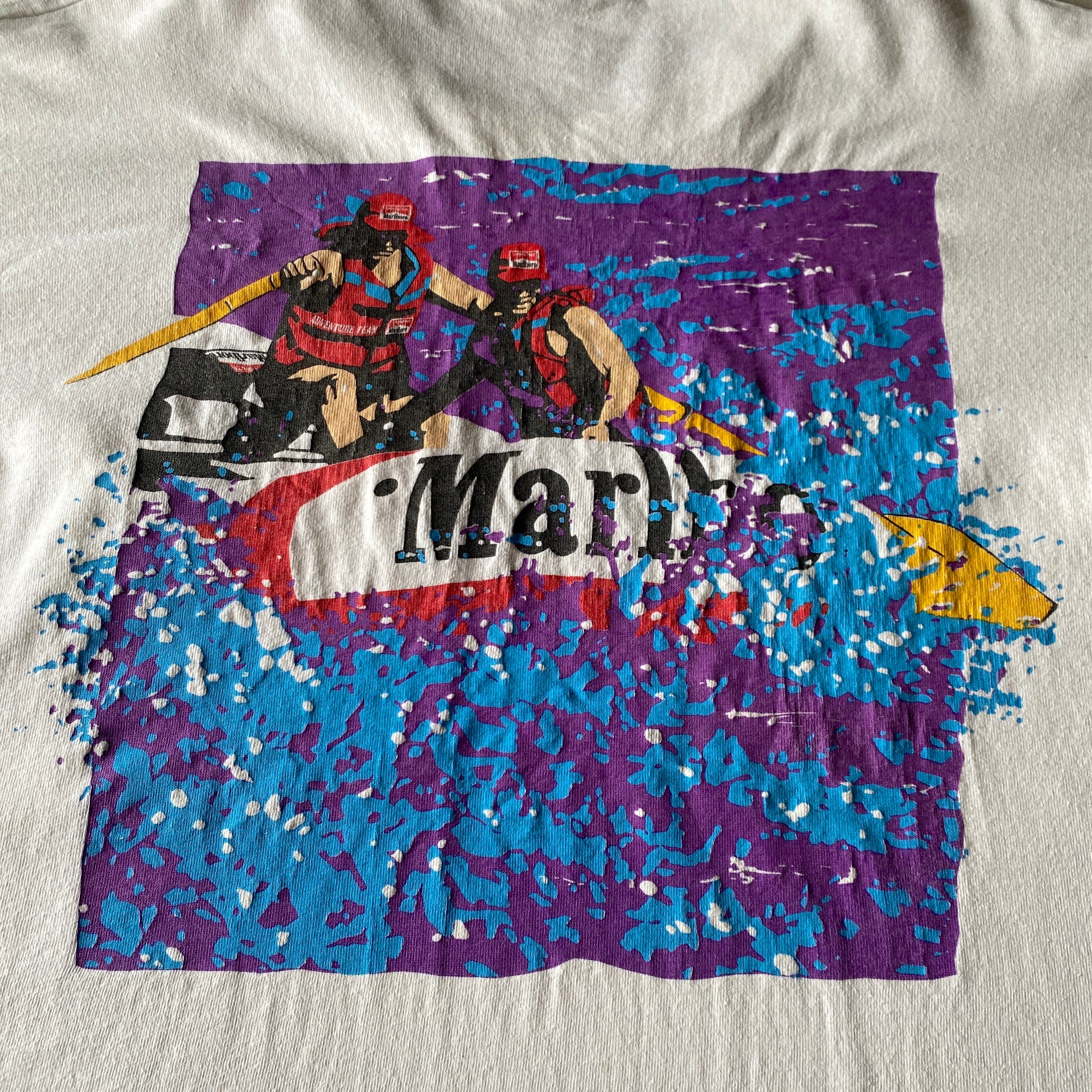 1990年代の「マールボロアドベンチャーチーム」ボート(カヤック、カヌー?)プリントポケット付きtシャツになります。