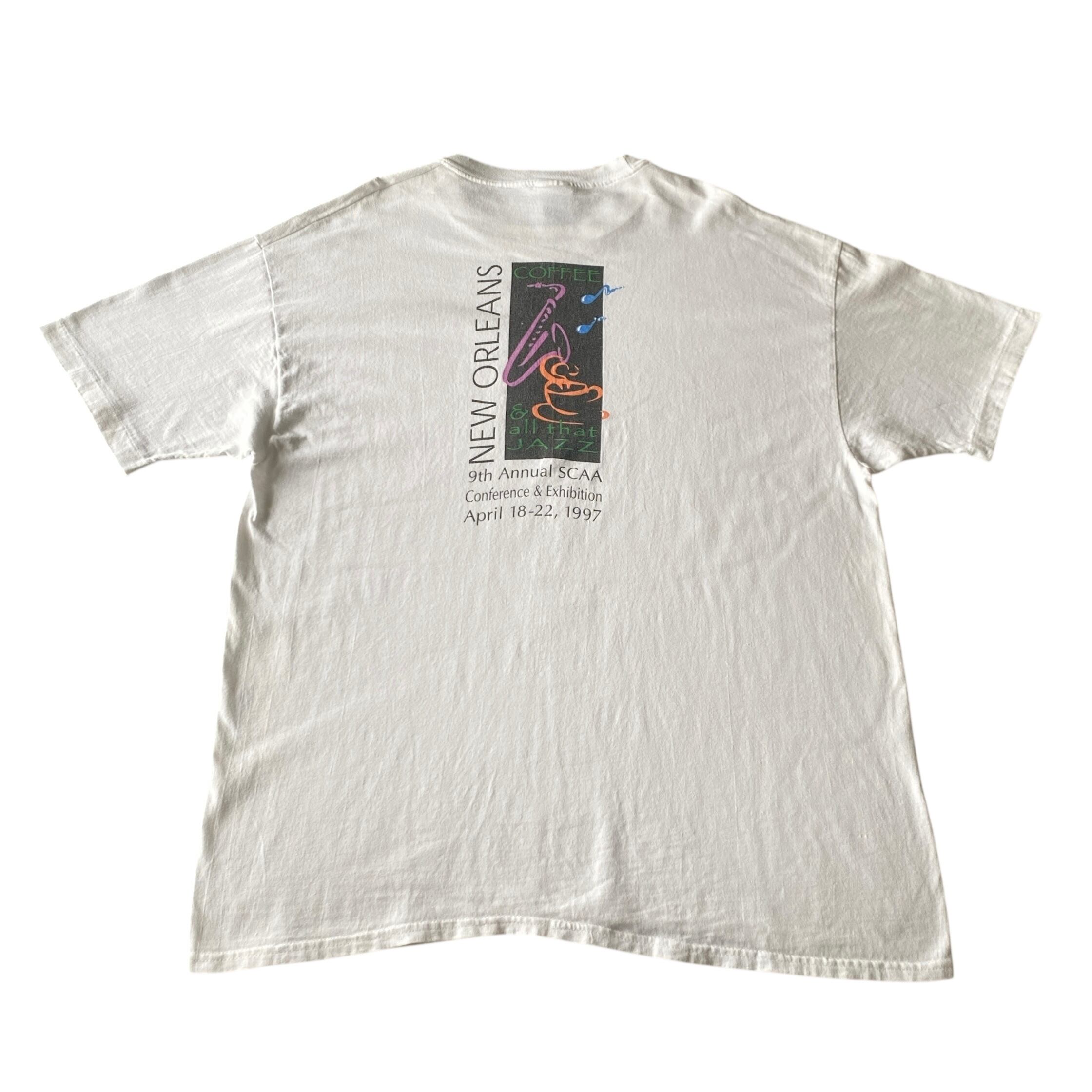 1990年代(1997)の「ニューオーリンズ コーヒー&ジャズ」プリントtシャツになります。