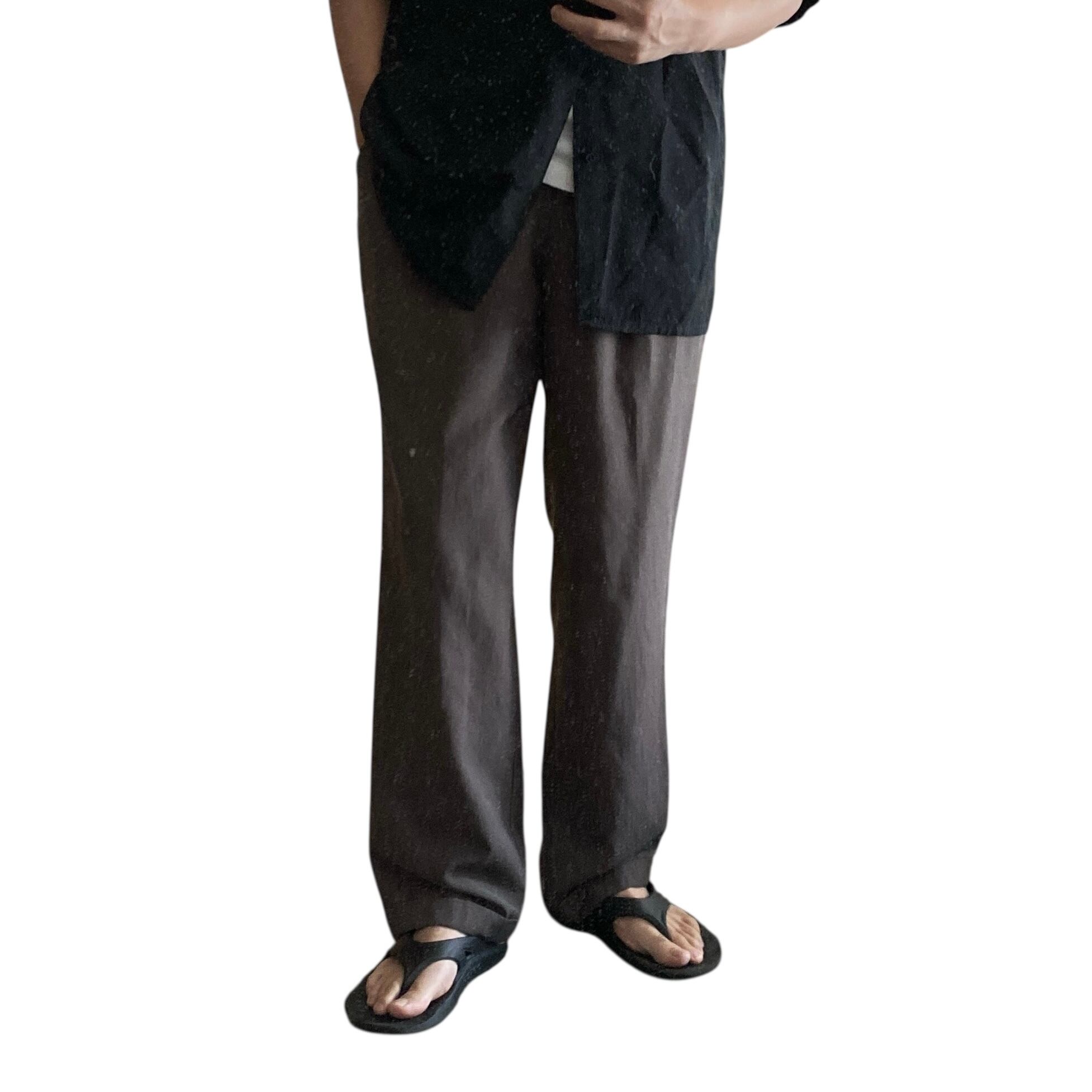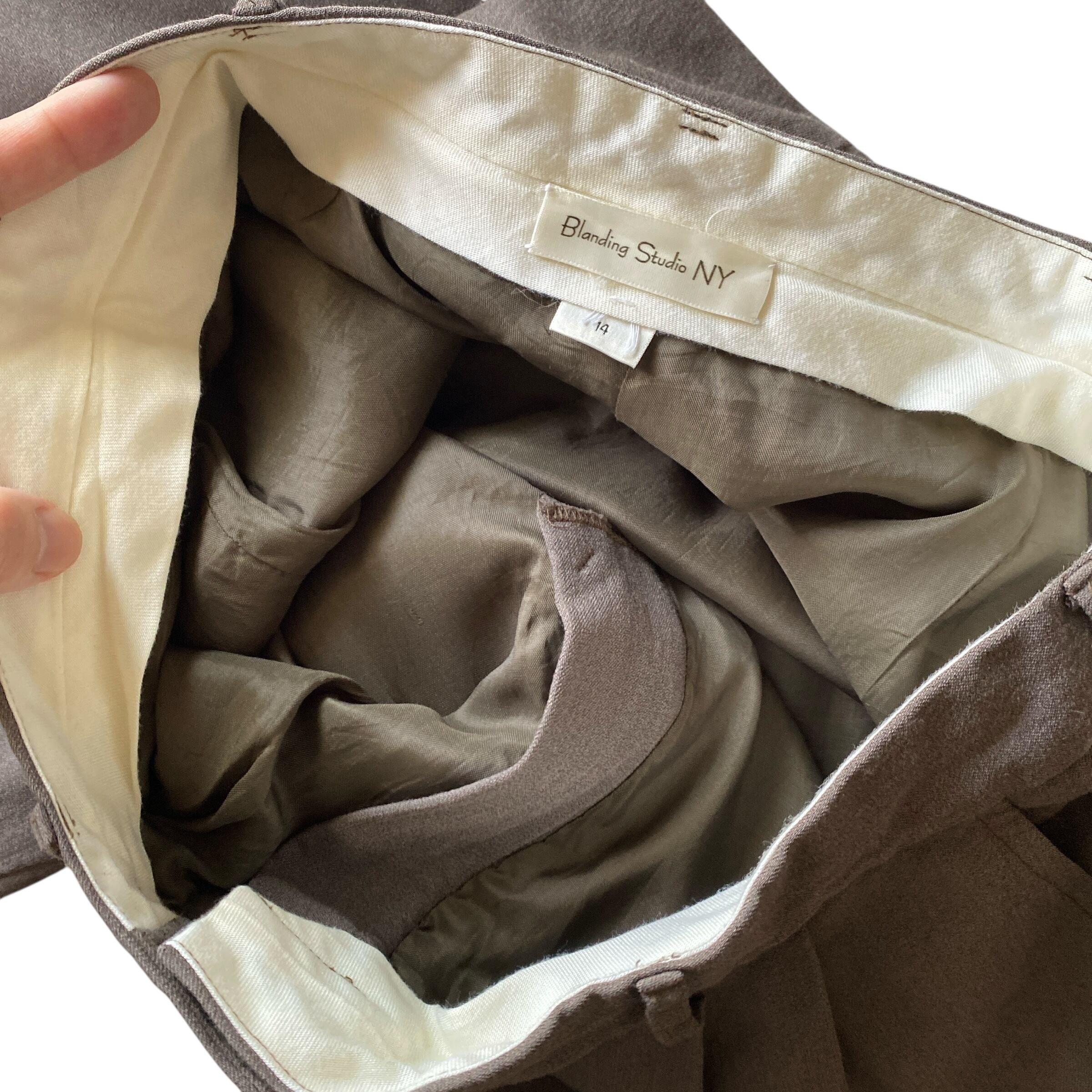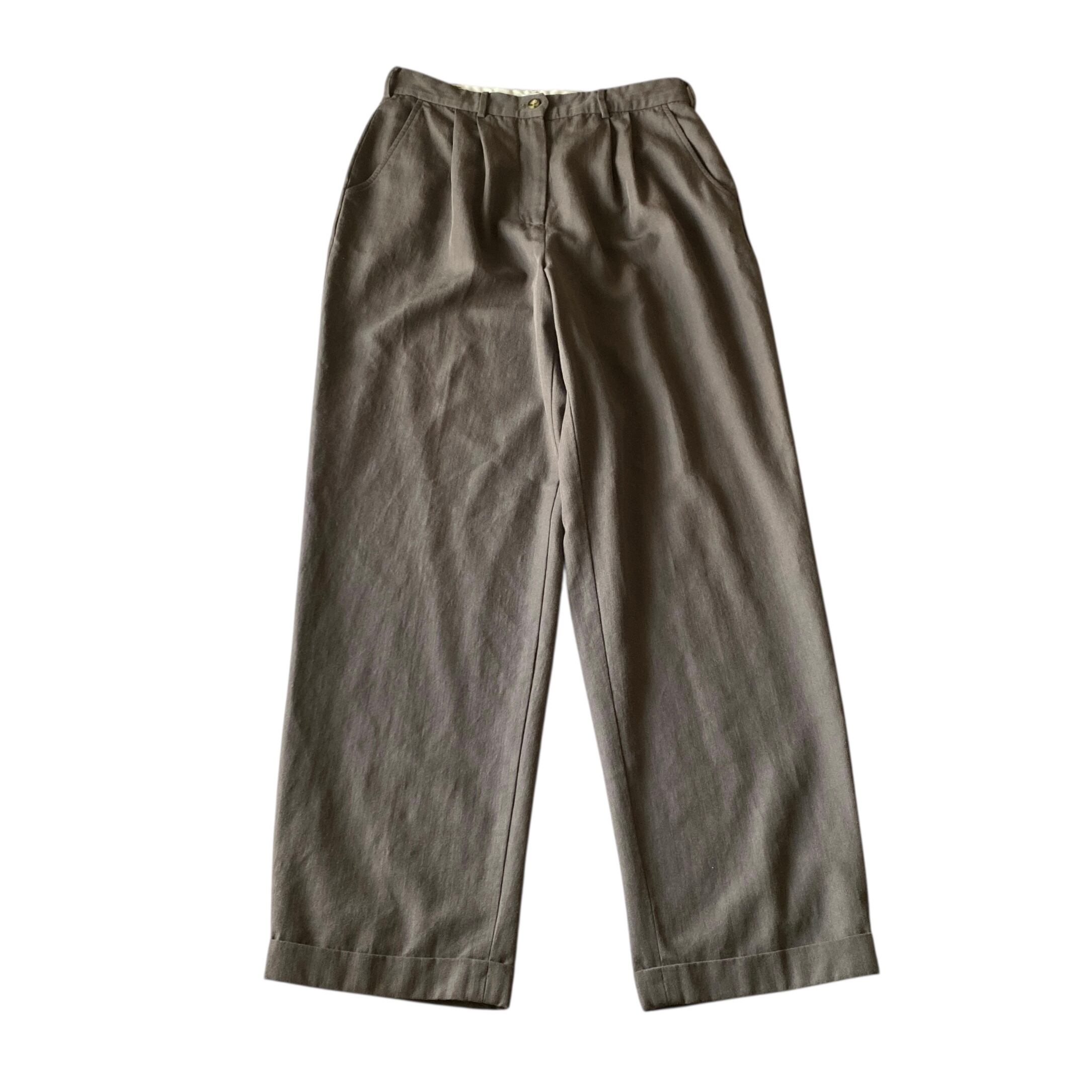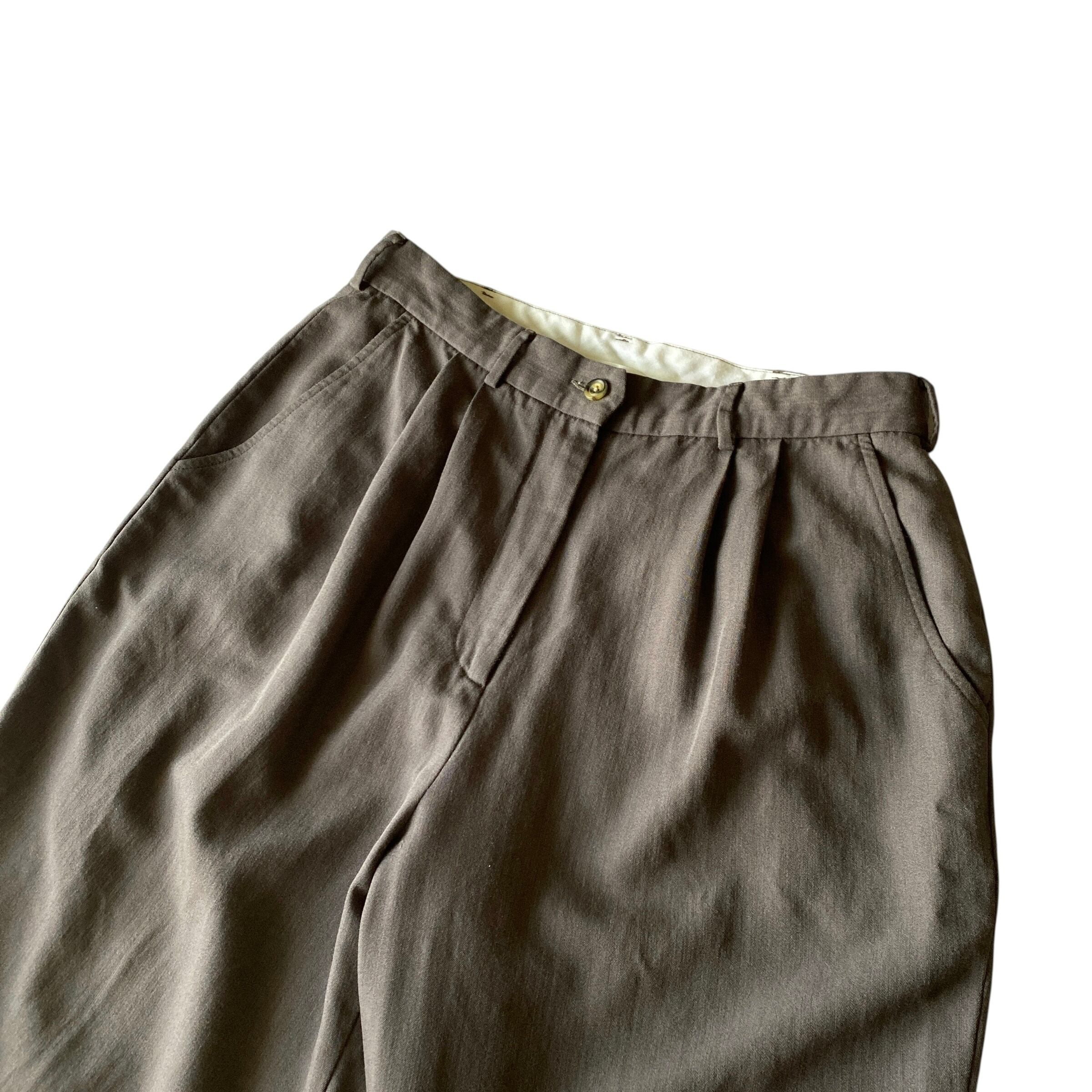 程よく肉厚でとろみのある極上のウールギャバジン生地に、カーキブラウン?系の上品なくすみカラー、股上深めでゆったりとしたクラシックシルエットが非常に格好良い一本。