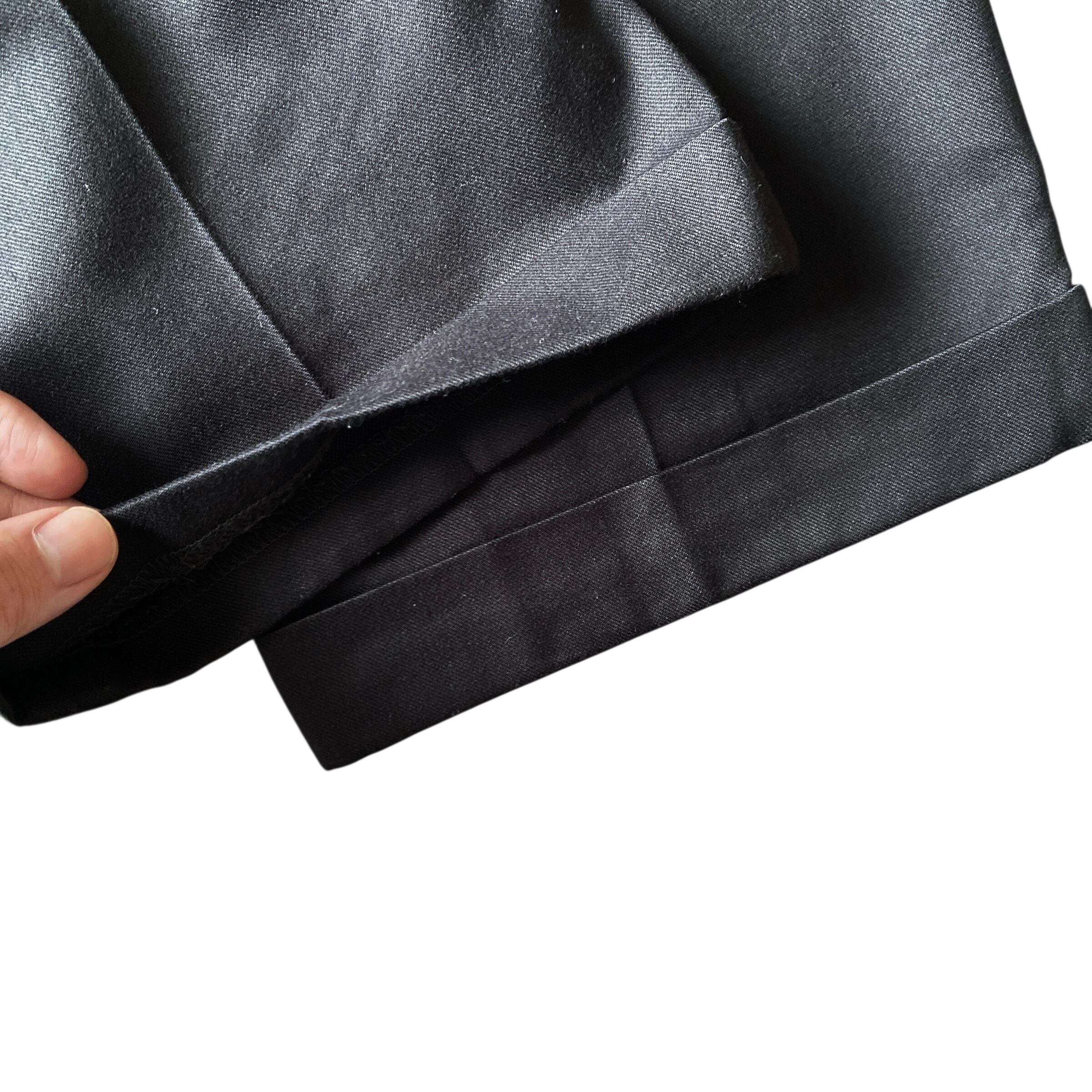 ヴィスコースメインで、程よくコシがありつつ落ち感のある上質なツイル生地に、鈍い光沢感のある上品なブラックカラー、ゆったりとしたワイドシルエットが非常に格好良い一着。