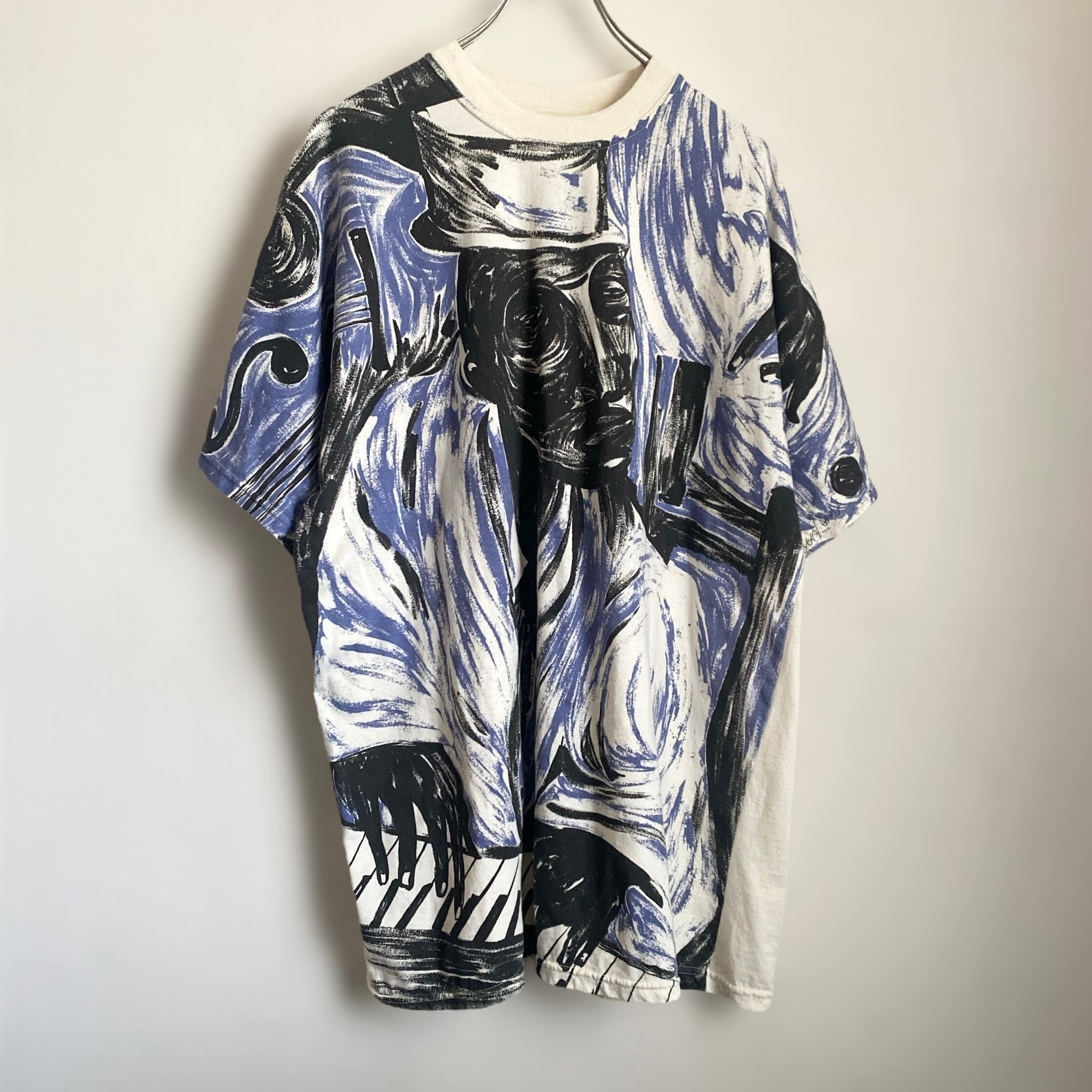 1990年代頃〜のスペイン製「ANA JUAN」アートデザインオールオーバープリントtシャツになります。