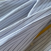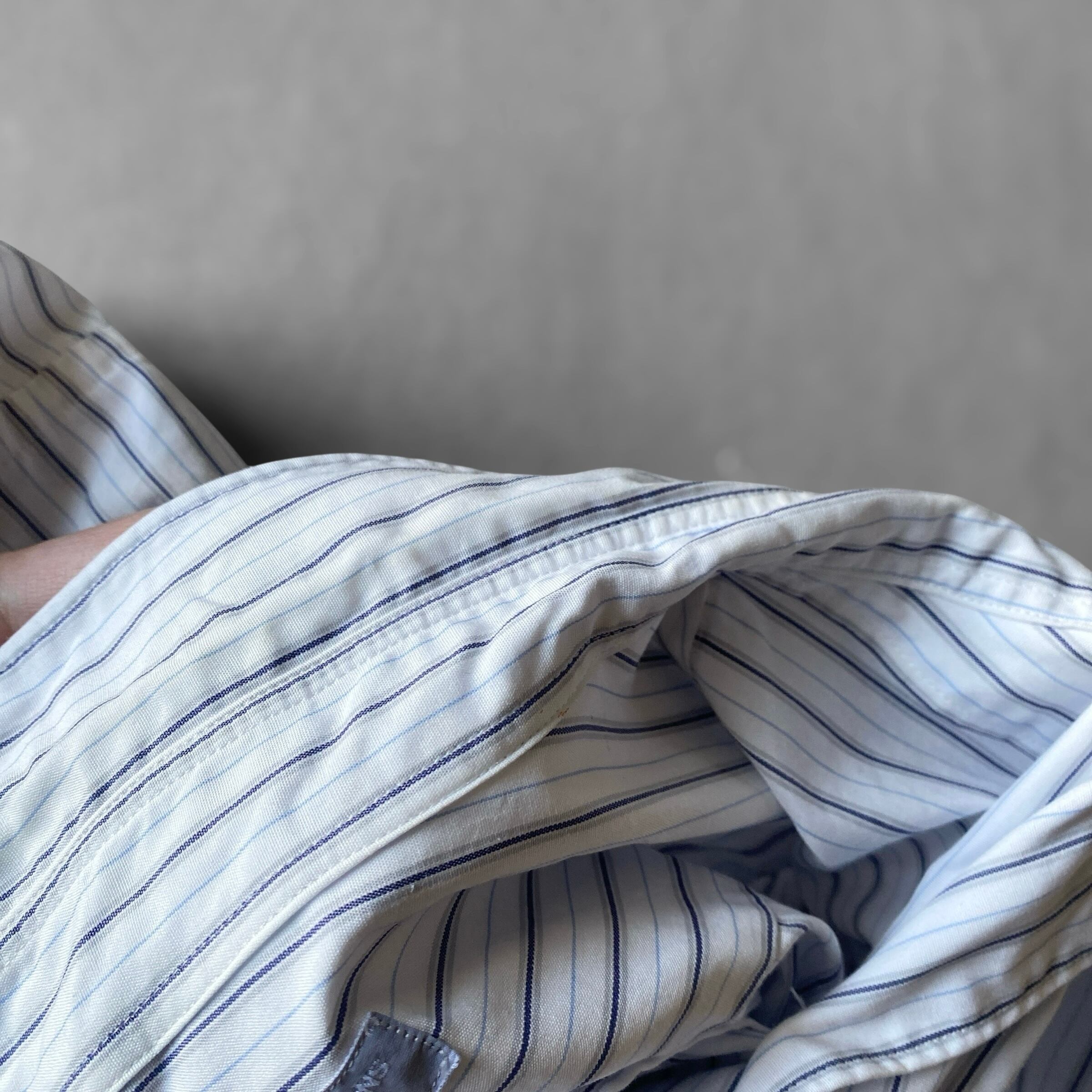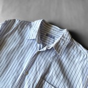 上質なコットンブロードクロスに、上品なストライプの色目、ピッチの細かい丁寧な縫製、ゆったりとした丸みのあるボックスシルエットが非常に格好良い一着。