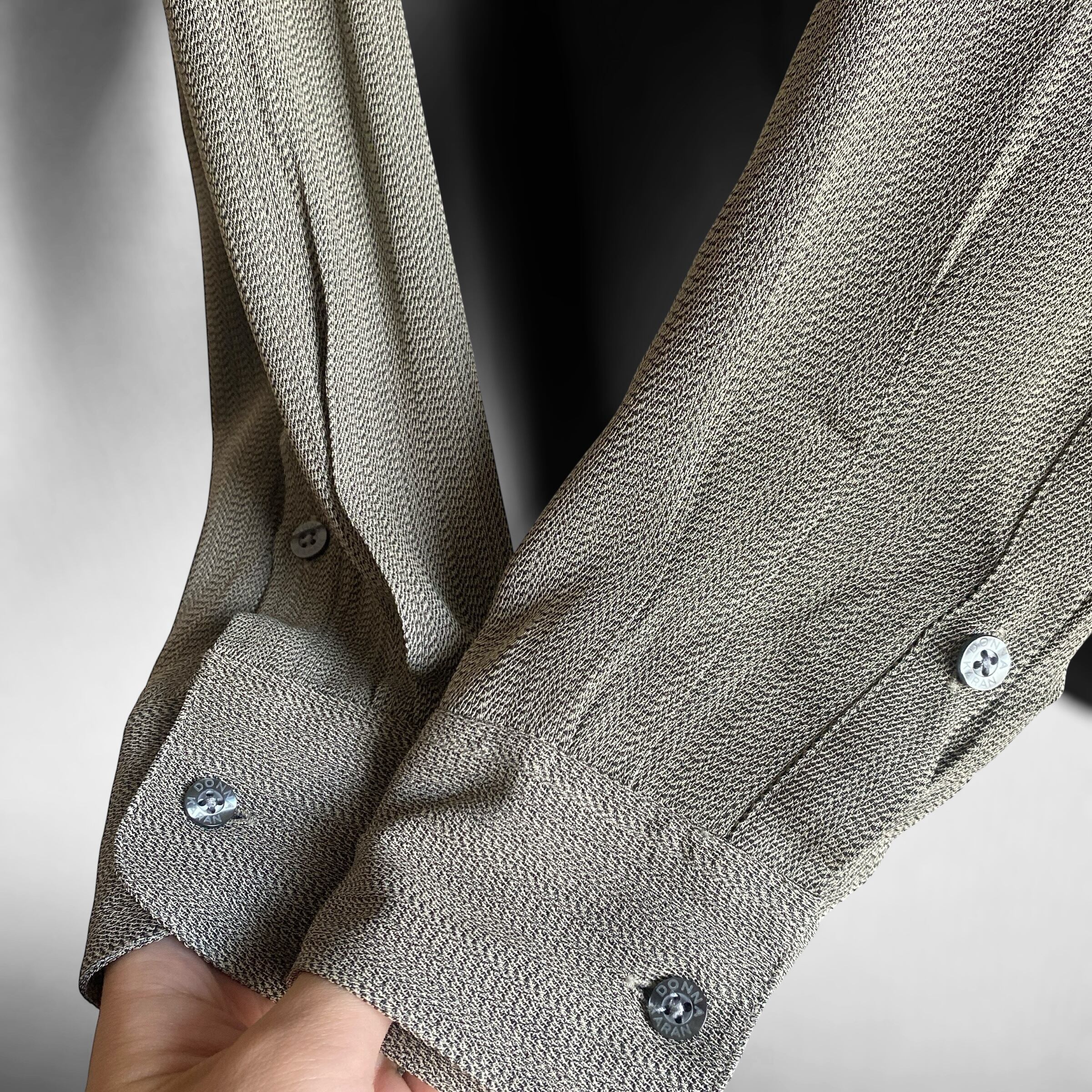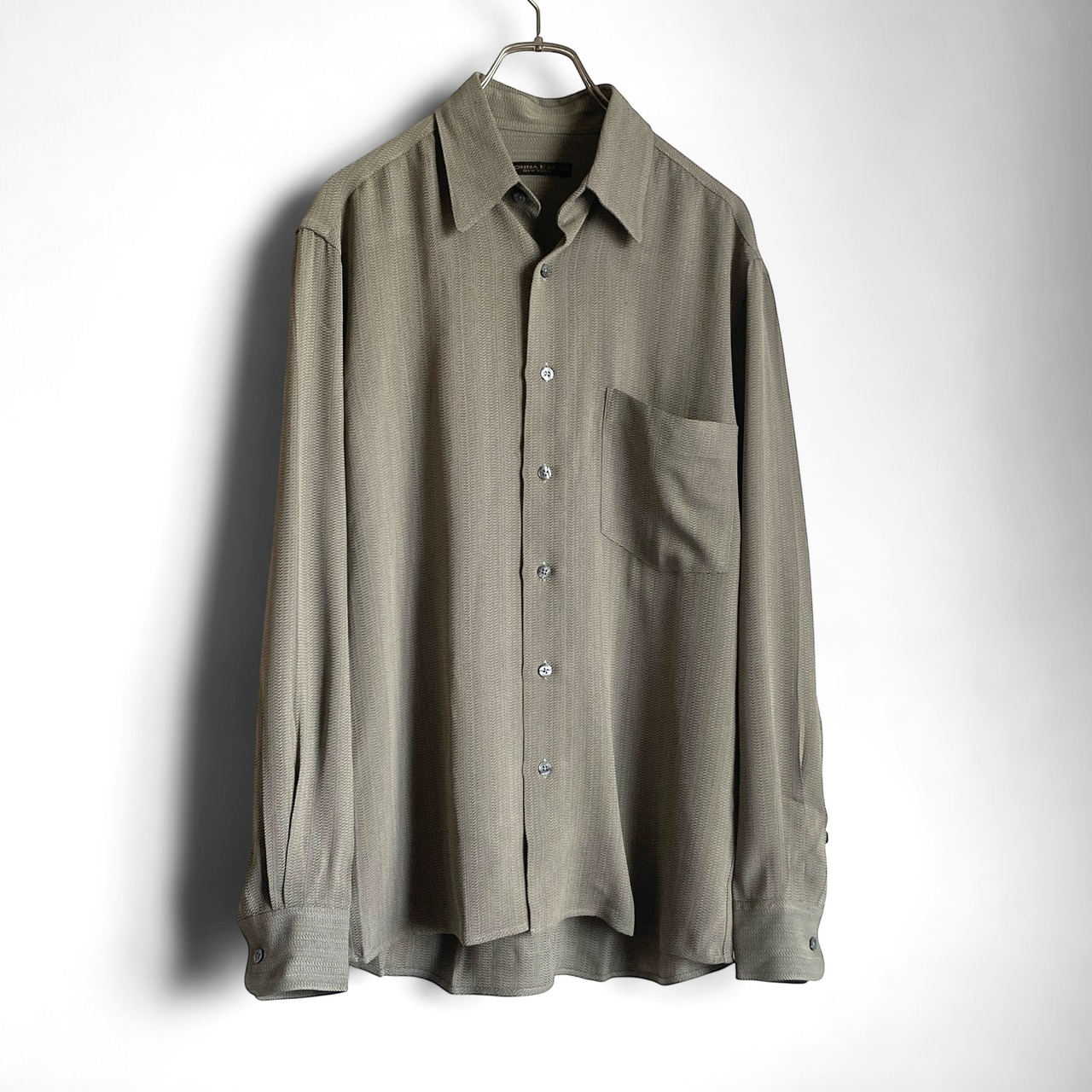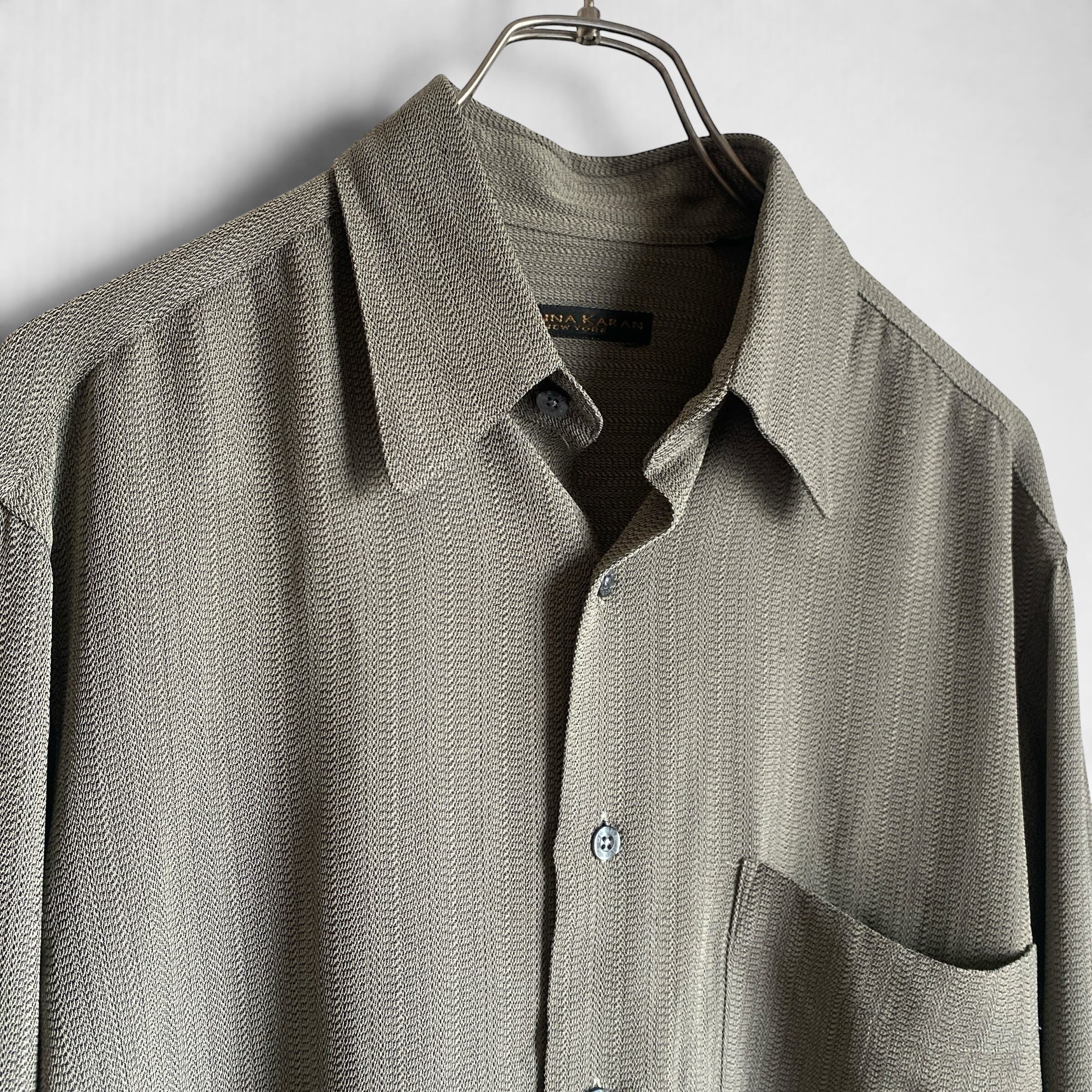 1990年代ごろの香港製「ダナキャランニューヨーク」レーヨンアセテートレギュラーカラーシャツになります。
