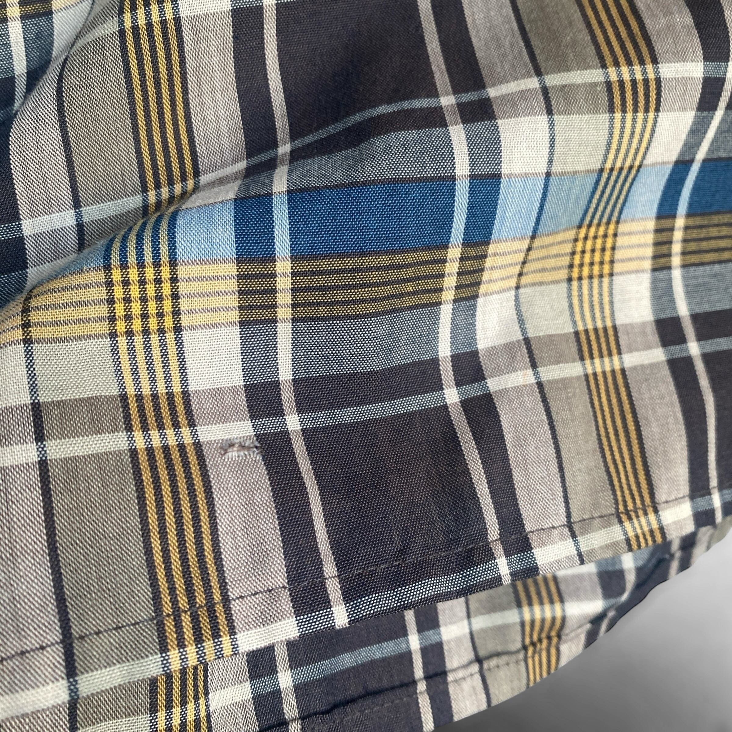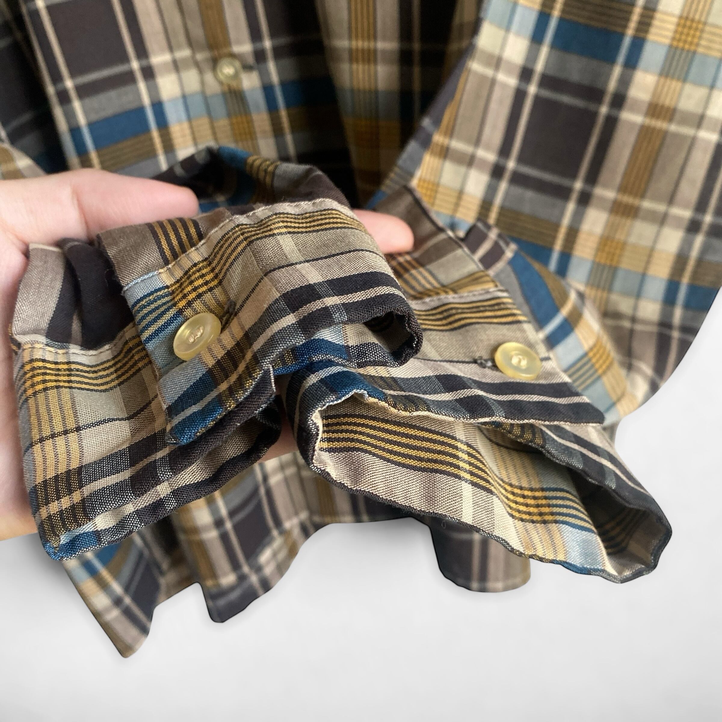 ポリコットンのサラッとした素材感に、秋っぽい好配色のチェックパターン、ゆったりとしたボックスシルエットが非常に格好良い一着。