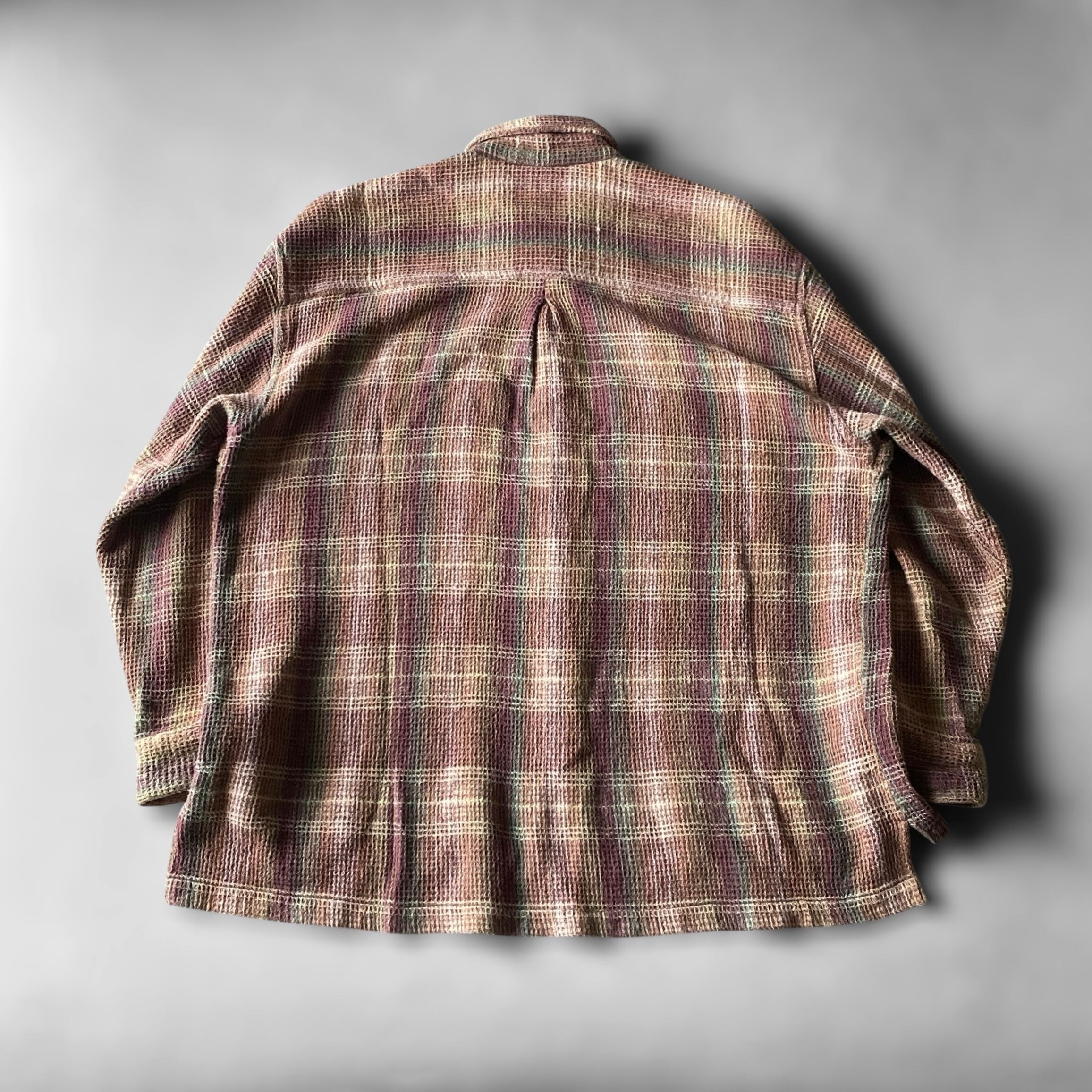 インド製のモチっと肉厚で落ち感のあるヘビーコットンに、非常に綺麗なカラーリングのオンブレチェック、ゆったりとしたボックスシルエットが素晴らしい一着。