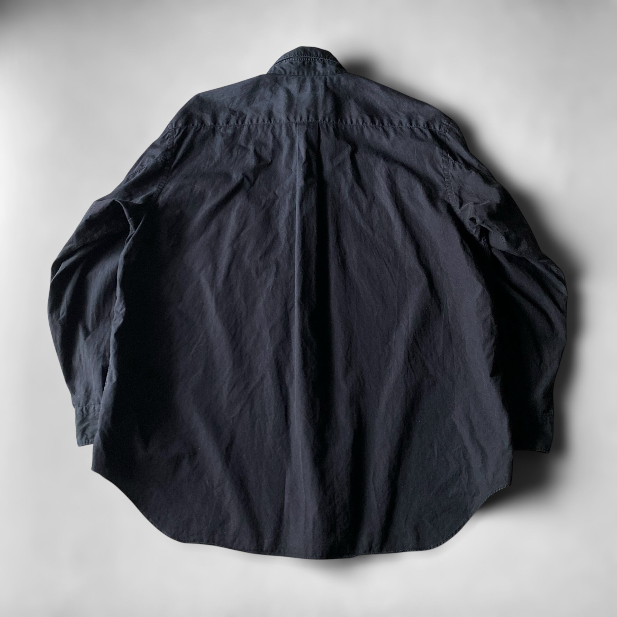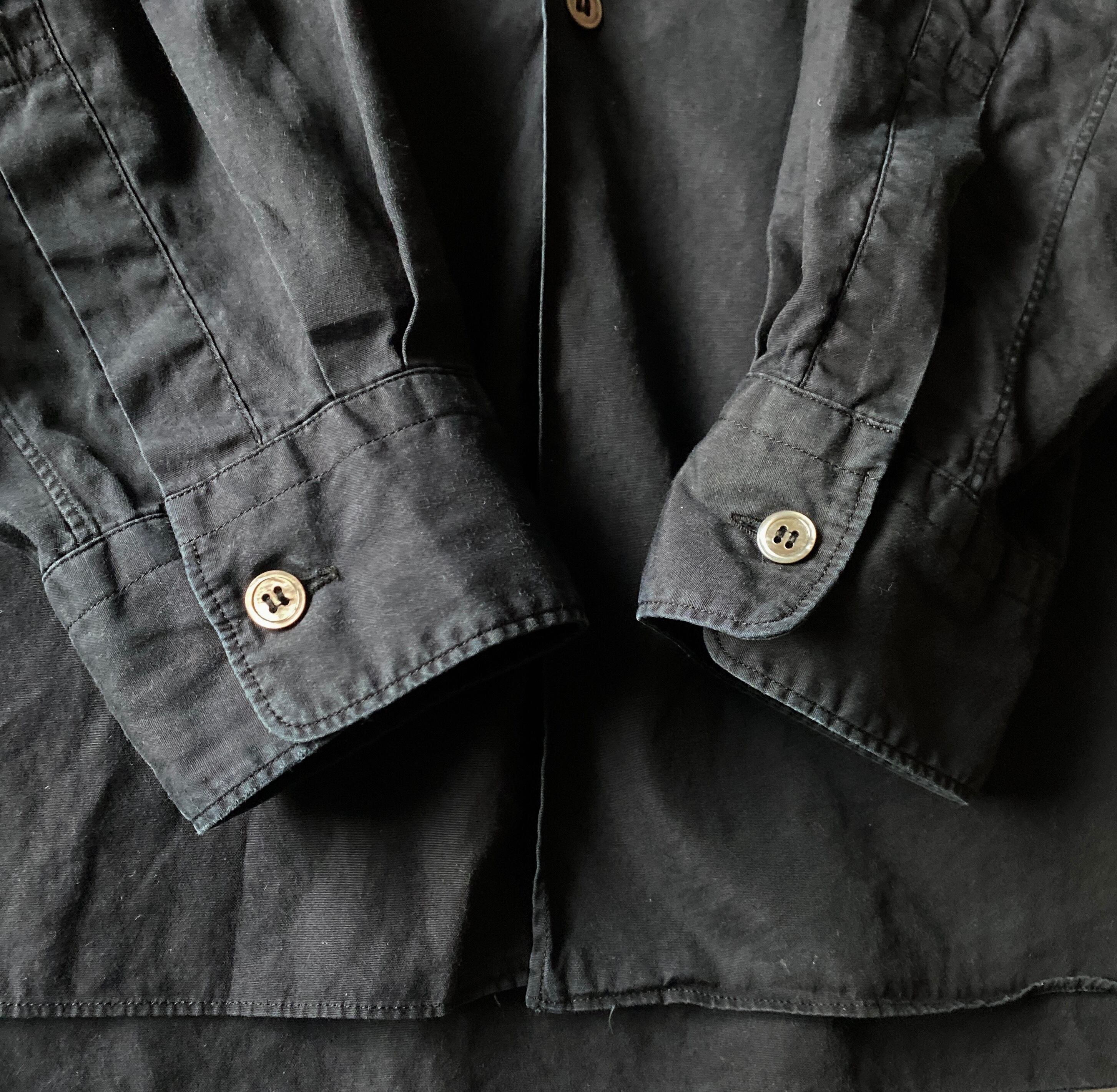 鈍い光沢感すらある高番手の上質なブロードクロスに、ブラックカラー、装飾のないシンプルなデザイン、ゆったりとした丸みのあるシルエットが非常に格好良い一着。