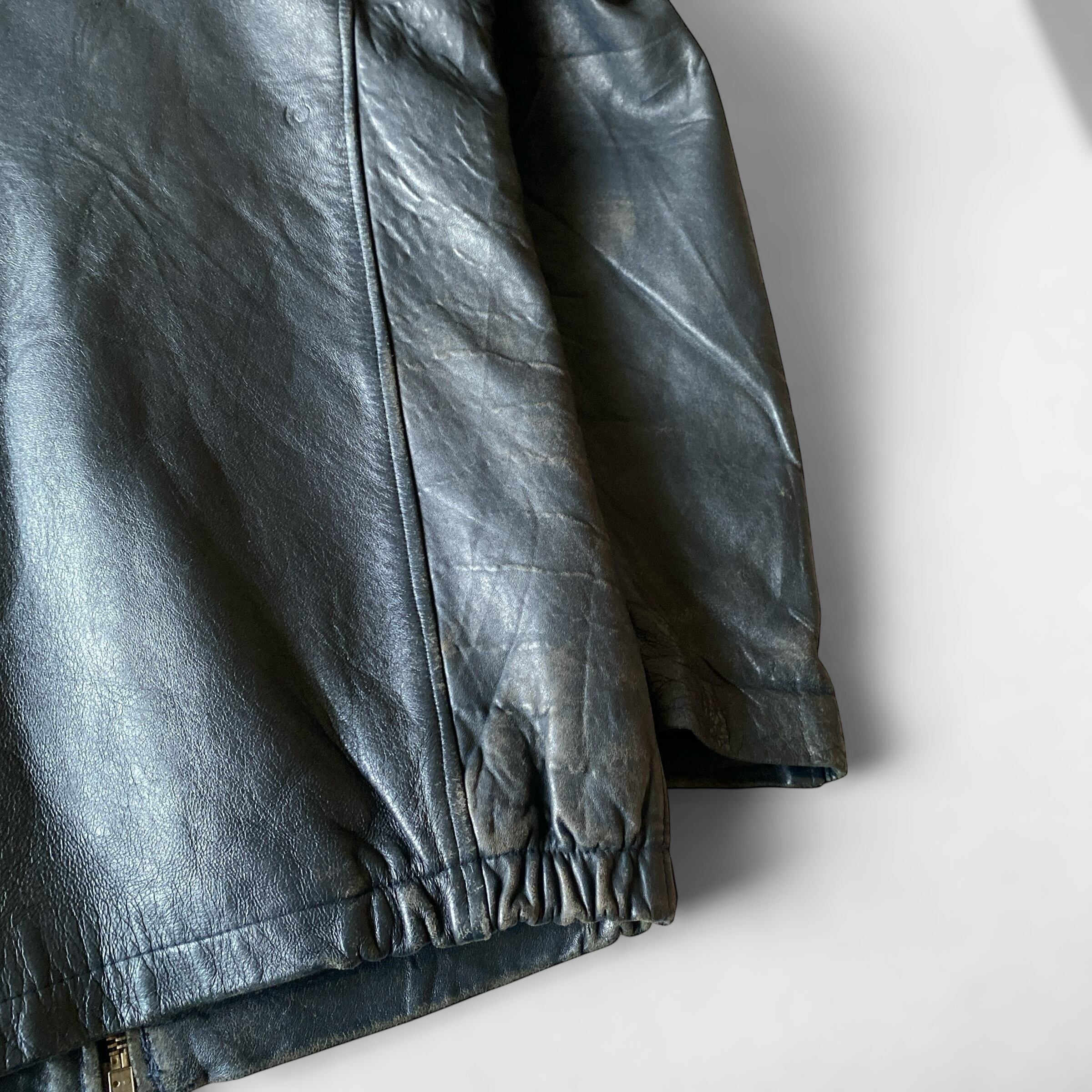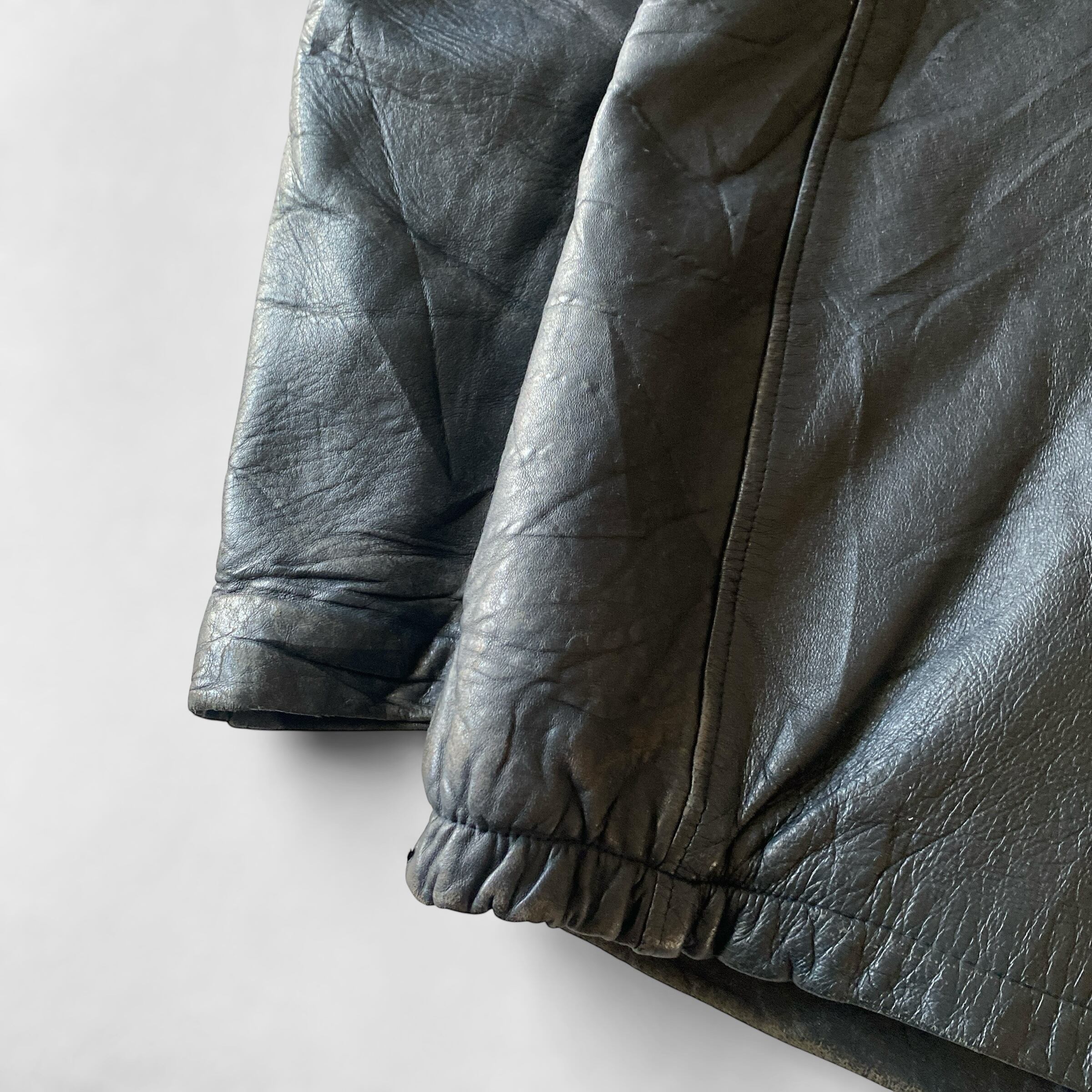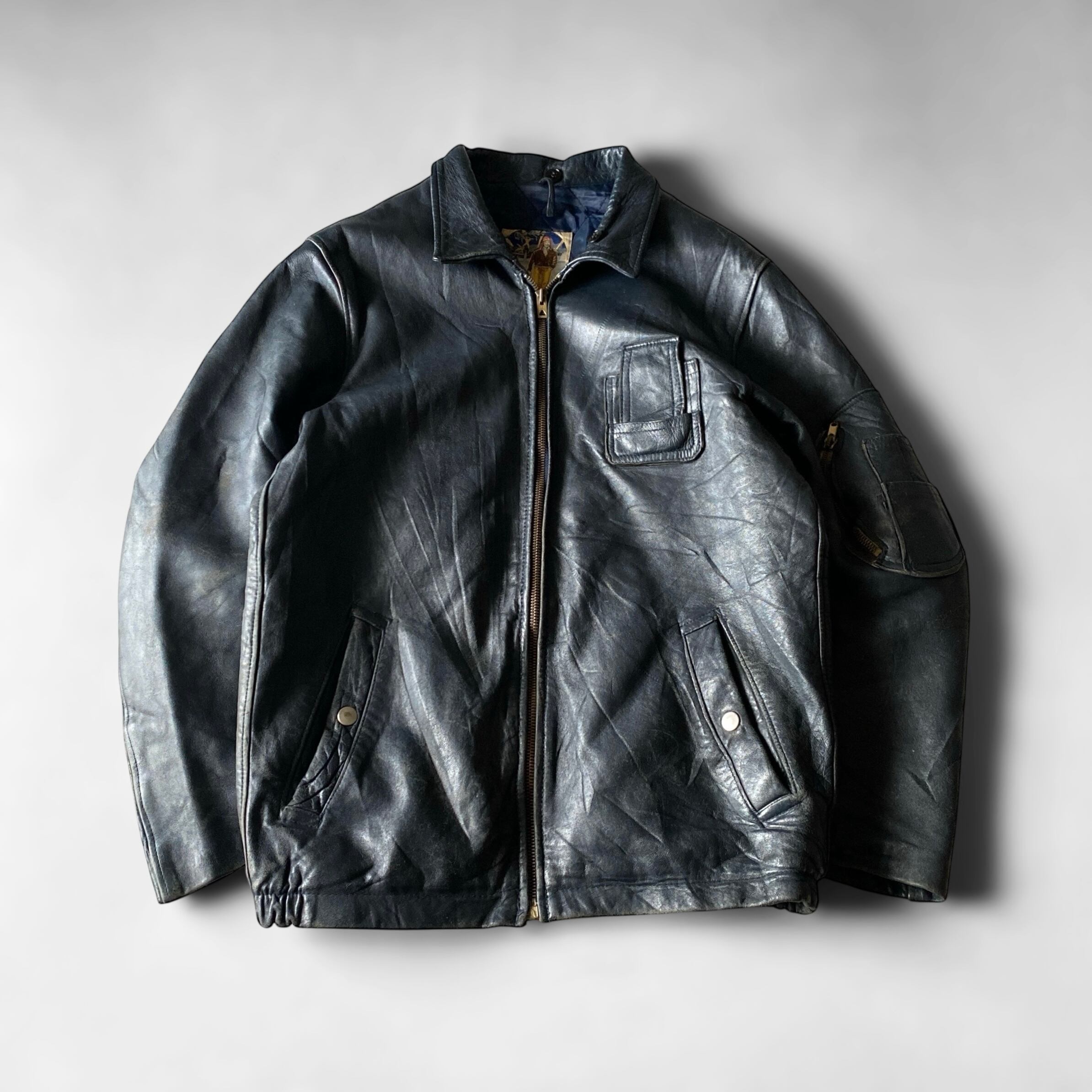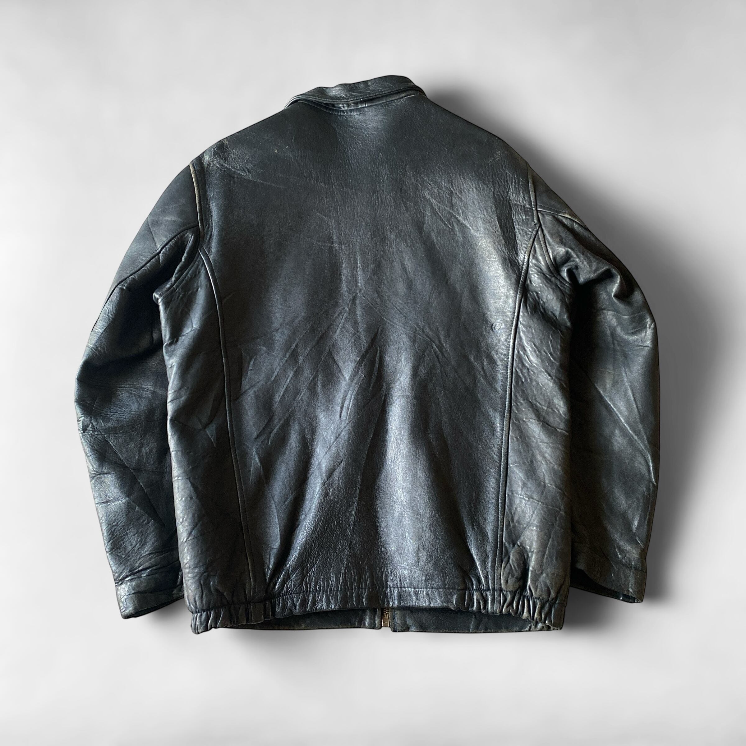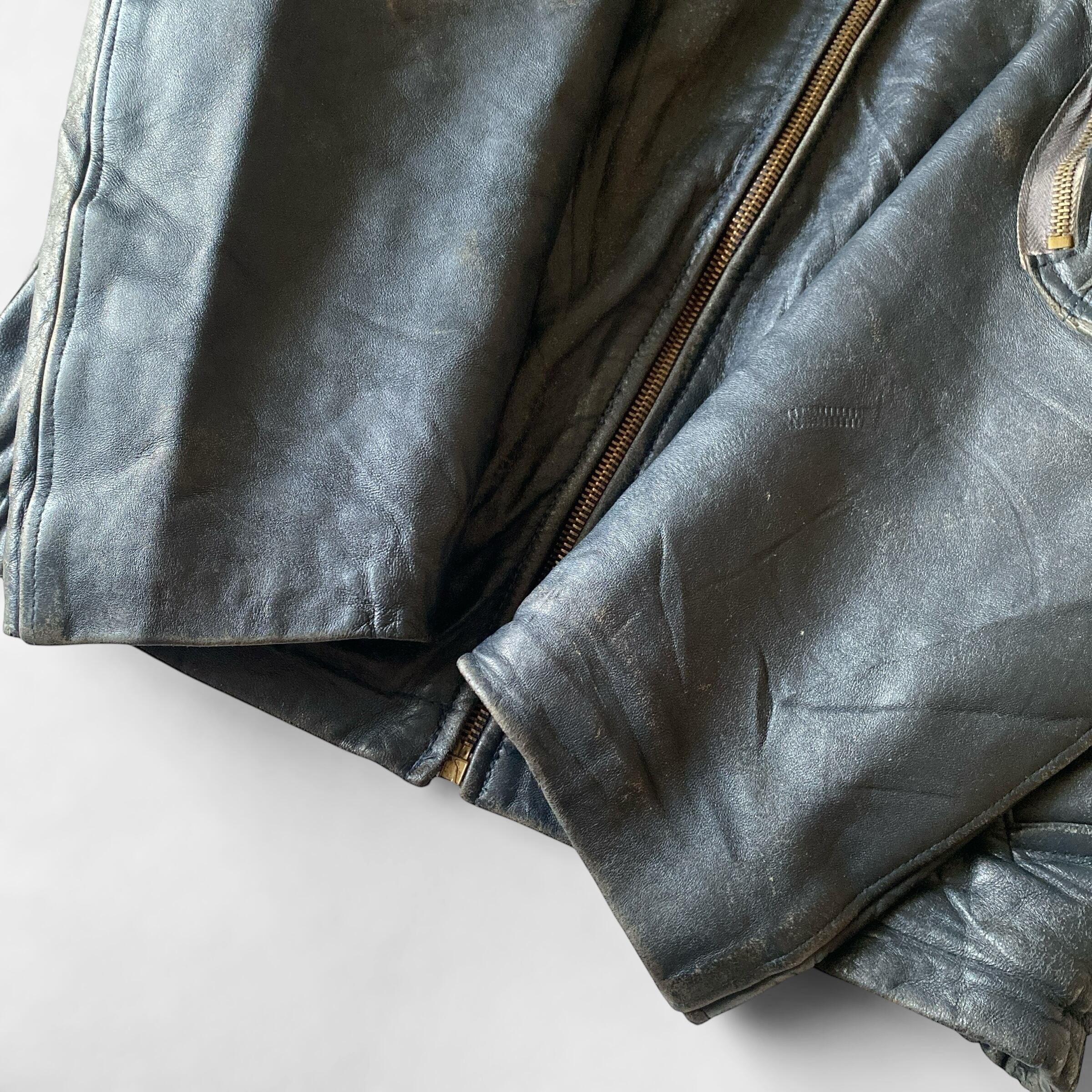 状態/小傷、スレなど多少の着用感はありますが、革もモチっとしなやかでジップの稼働も良く、年代を考えれば良いコンディションです。襟部分のボタンは片側欠損しています。(外して着る方が格好良いかと)