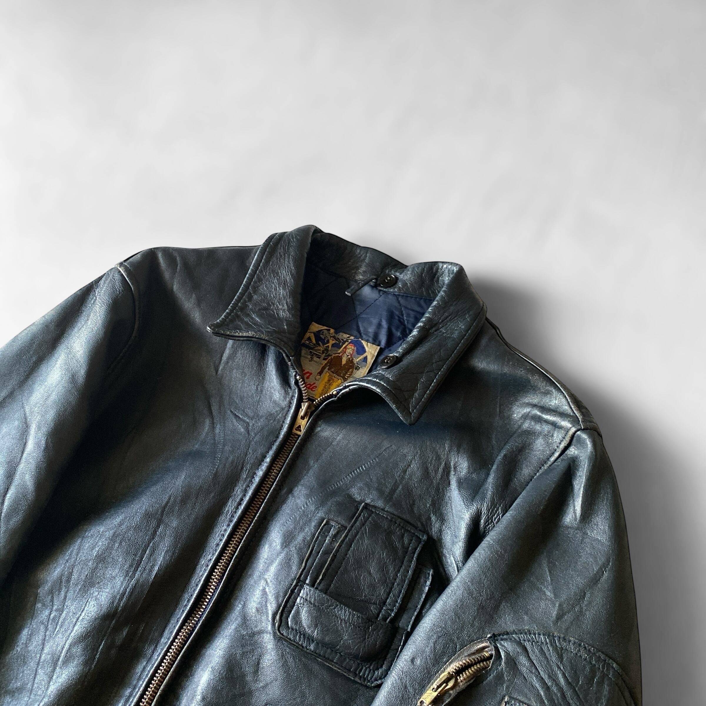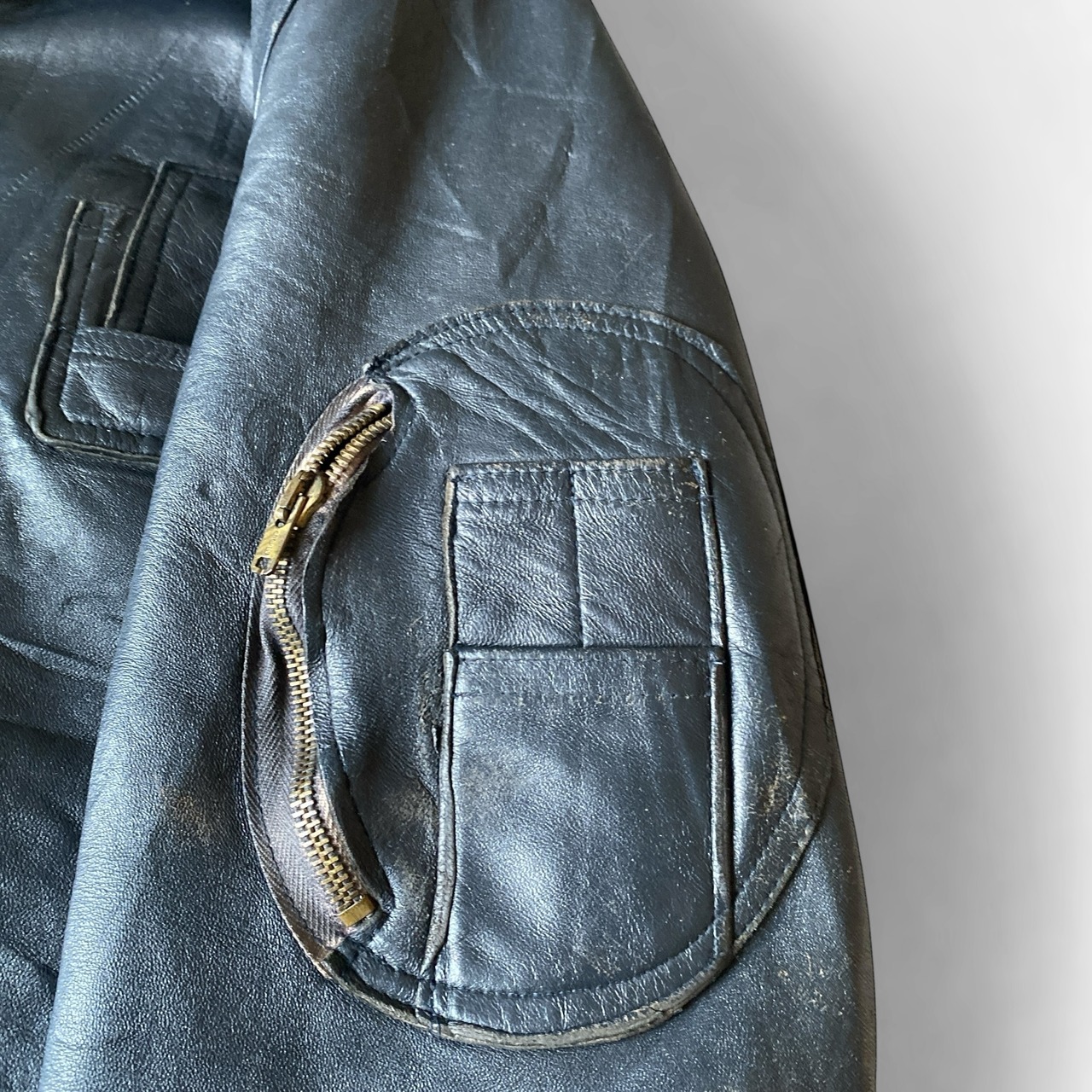推定1960〜70年代ごろの、フランス軍民間品パイロットレザージャケットになります。(古めの真鍮ECLAIRジッパー)