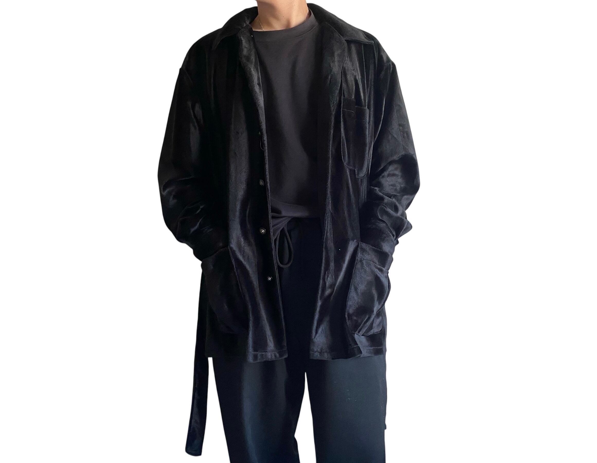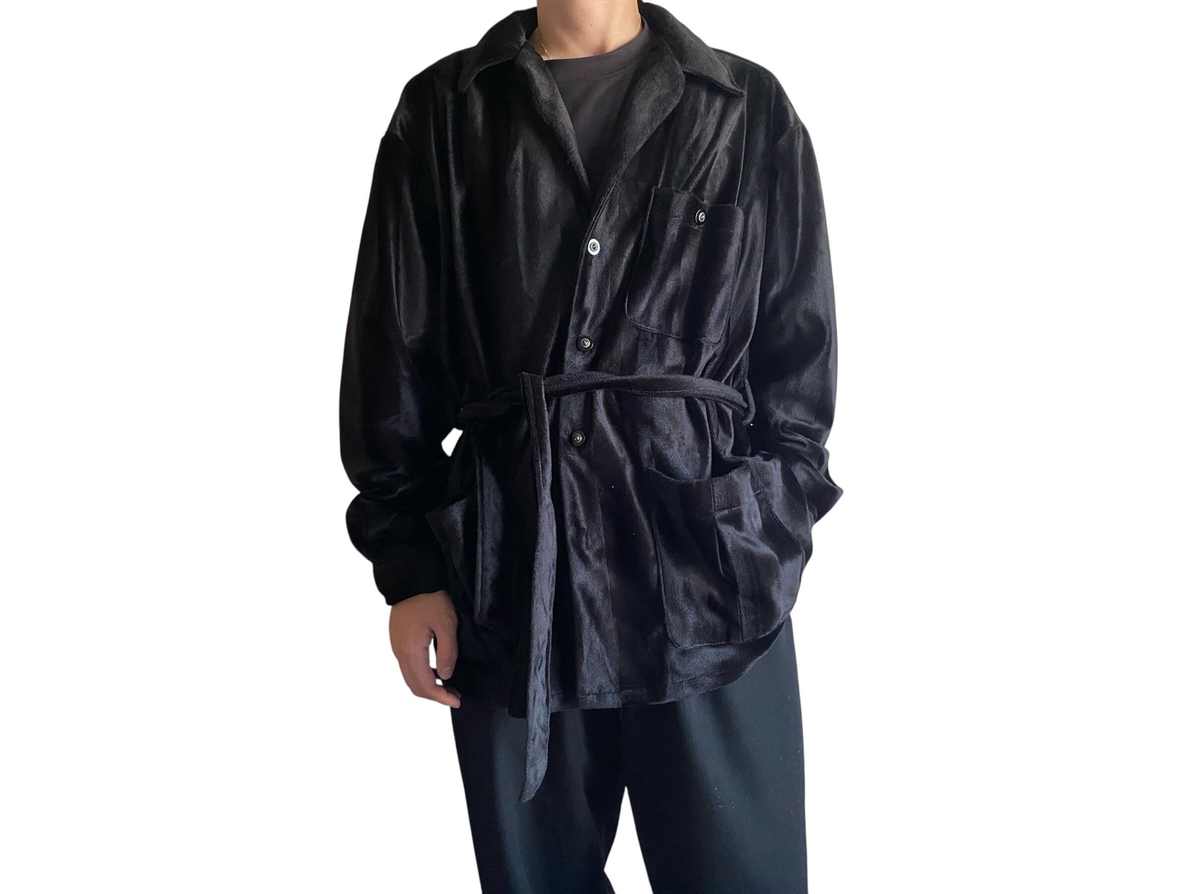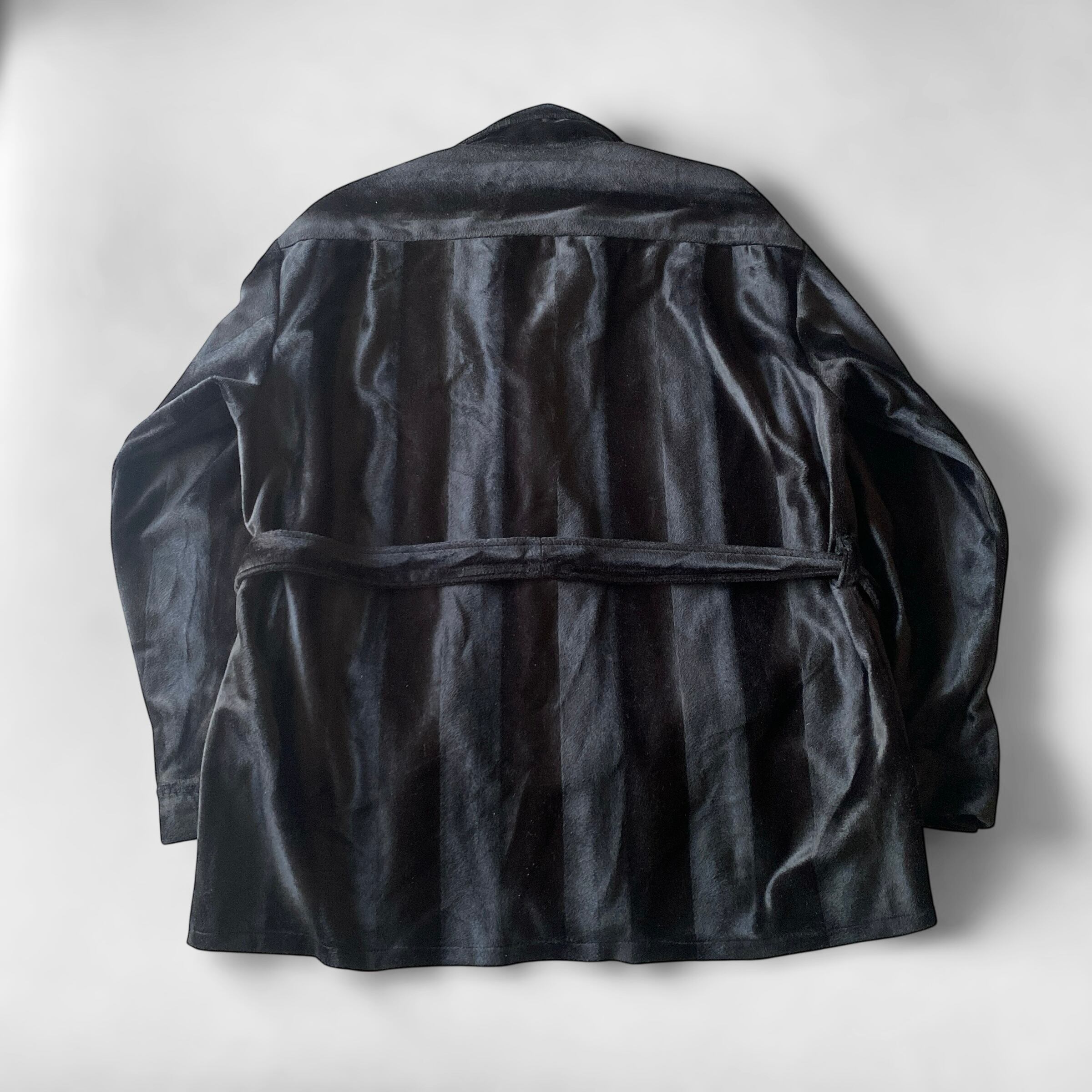 非常に上質なポニーヘアボディに(フェイクですが、滑らかで艶感が美しい素晴らしい生地です)、よく見ると太ストライプのブラックカラー、ベルト付きでゆったりとしたカバーオールのようなデザインが非常に格好良い一着。