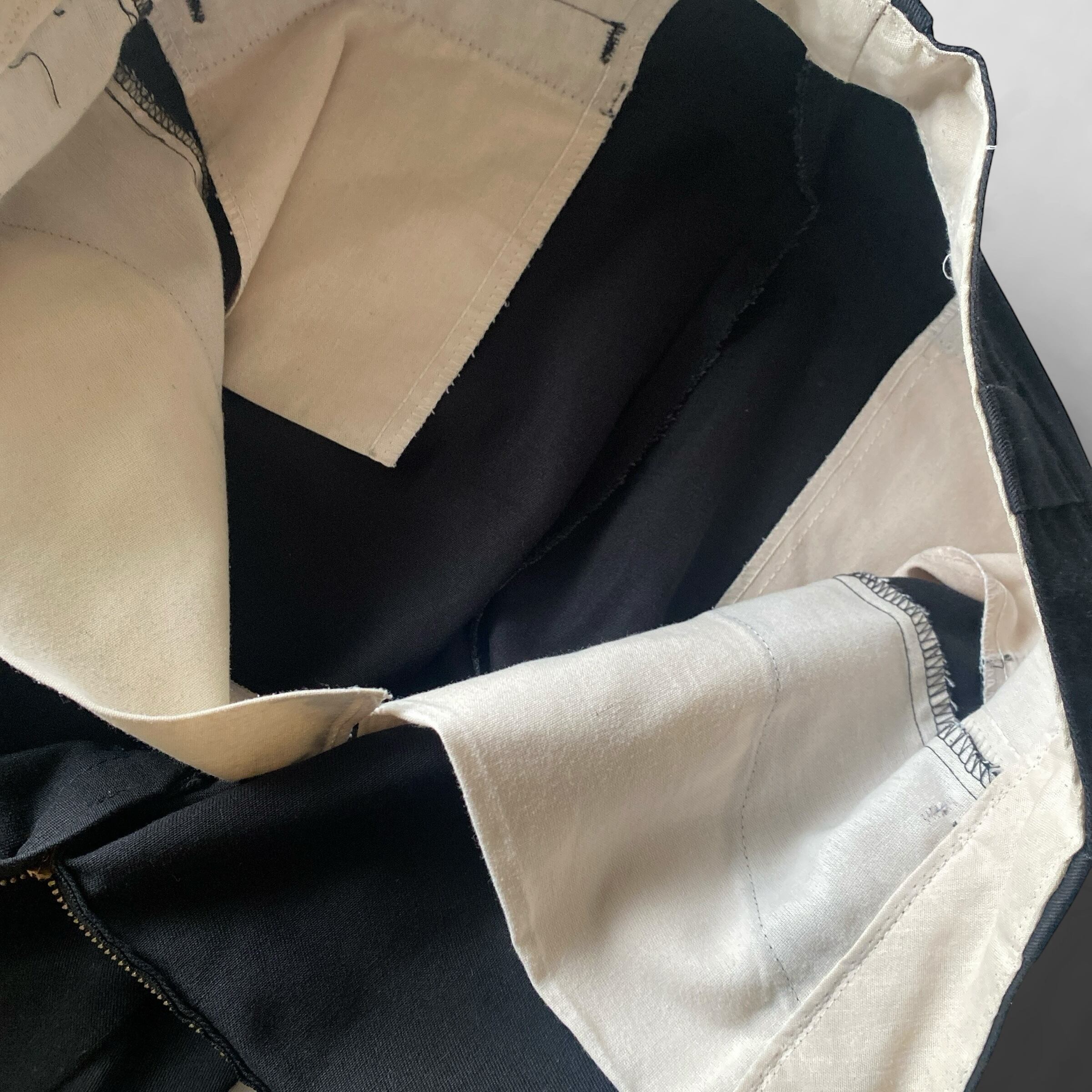 ウエストに軽いリサイズ(拡張されたものを真ん中で合わせてあります)がありますが、シルエットの変化はなく、外観に問題はありません。