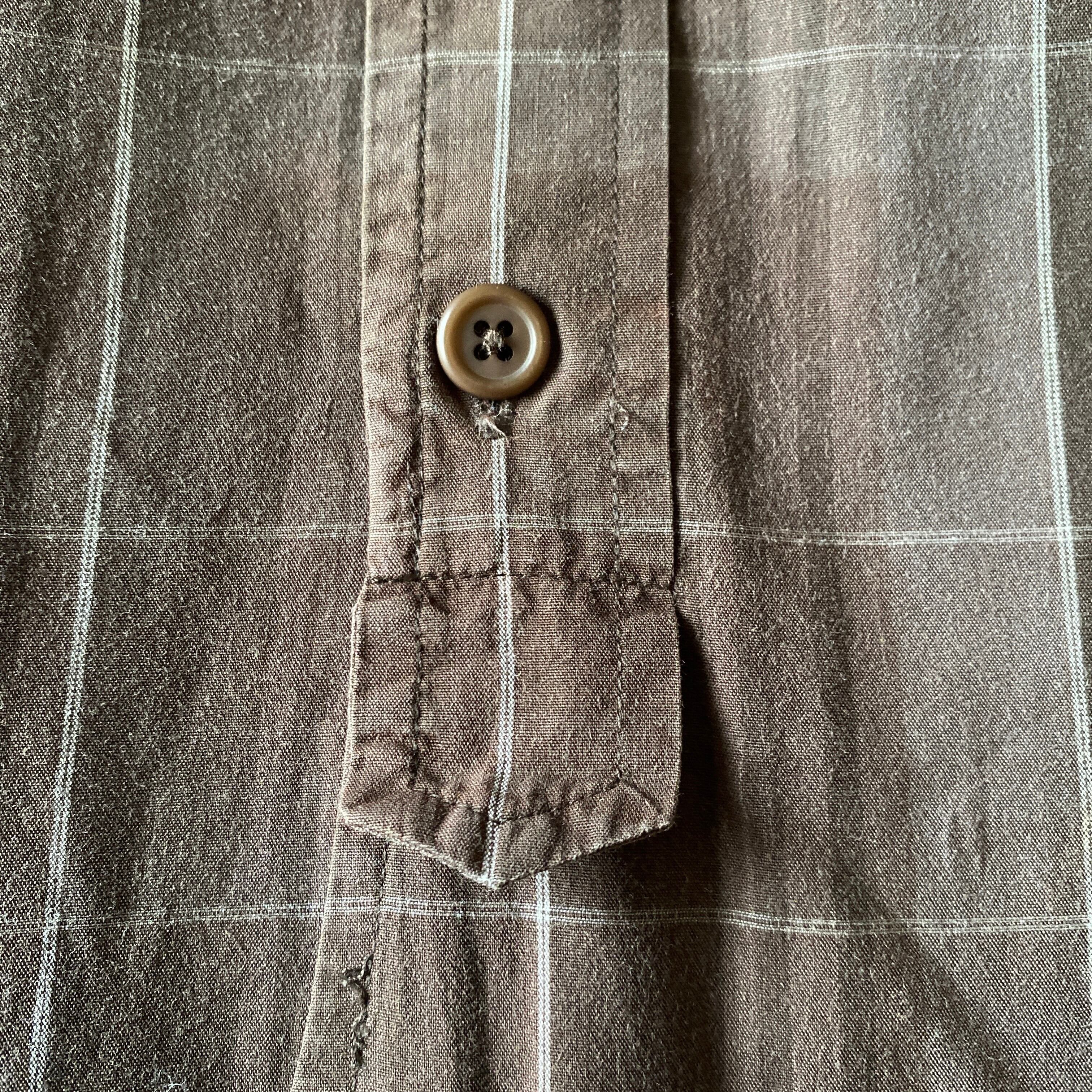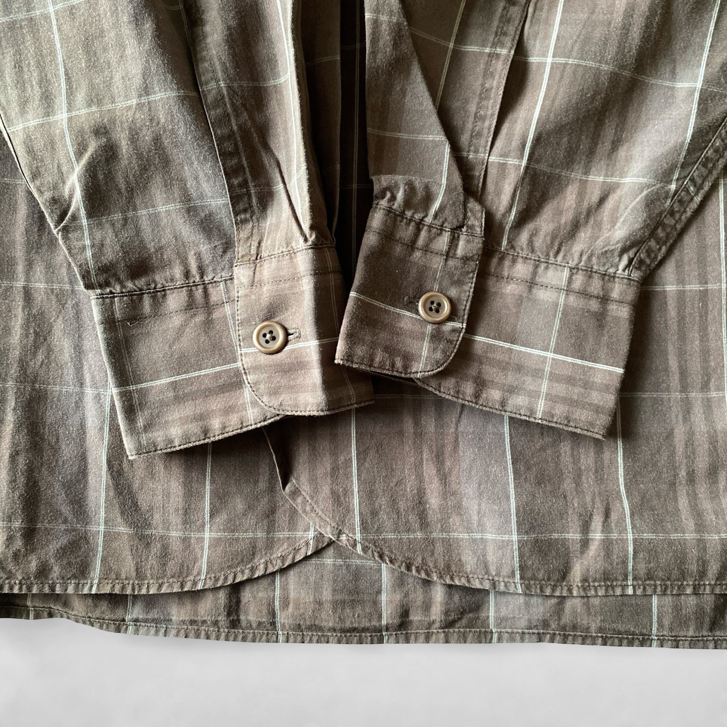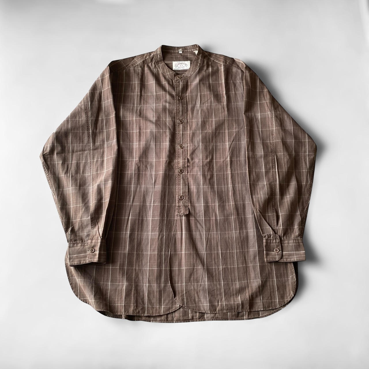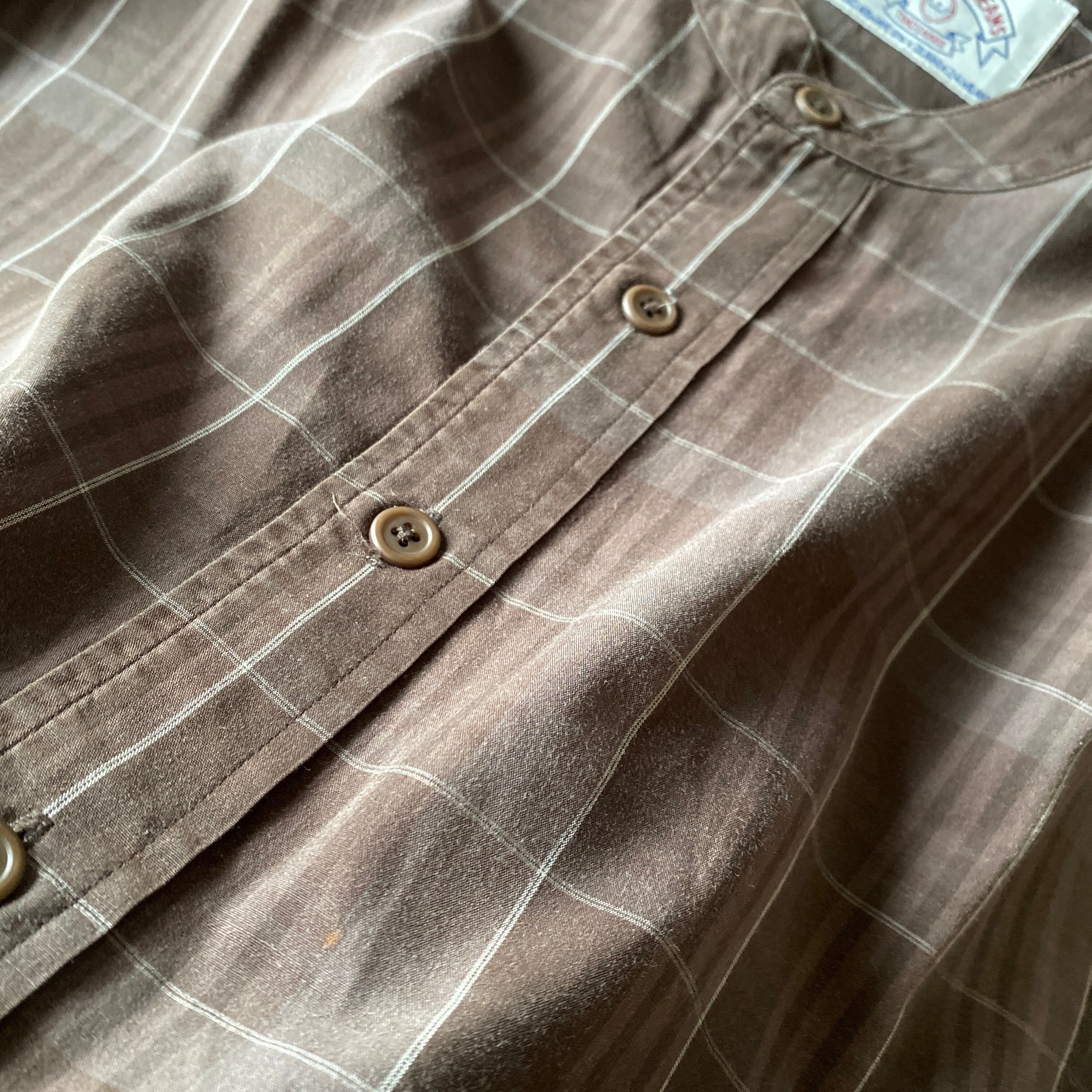 1990年代頃〜の「アルマーニジーンズ」マチ付きスタンドカラーオフィサーロングシャツになります。