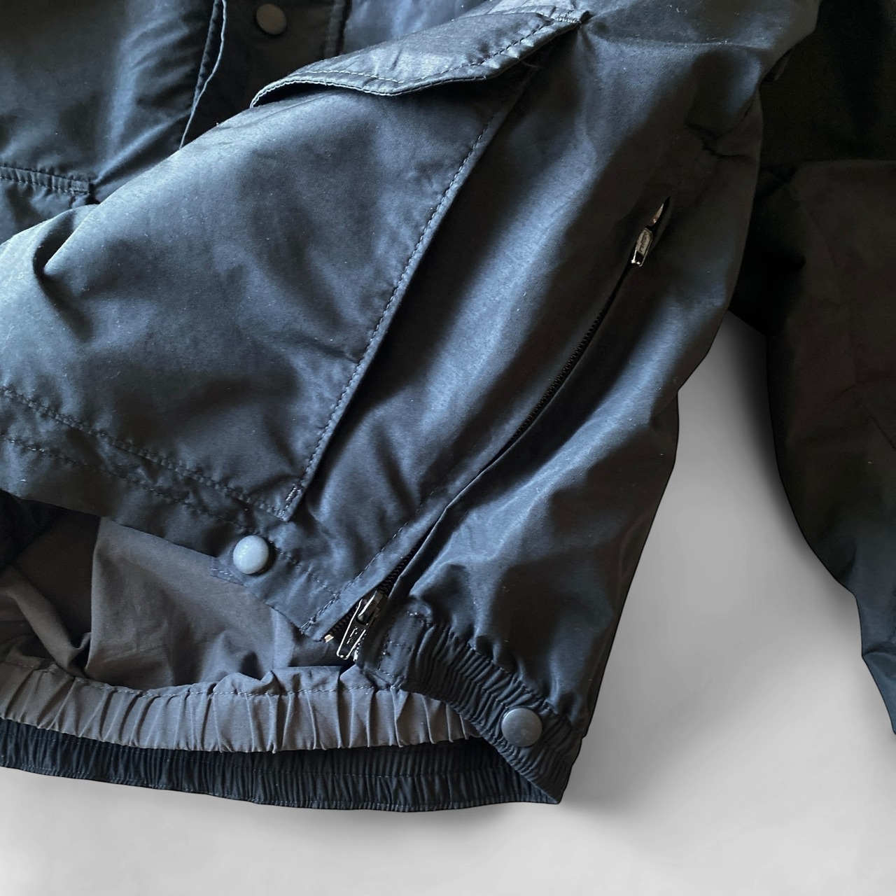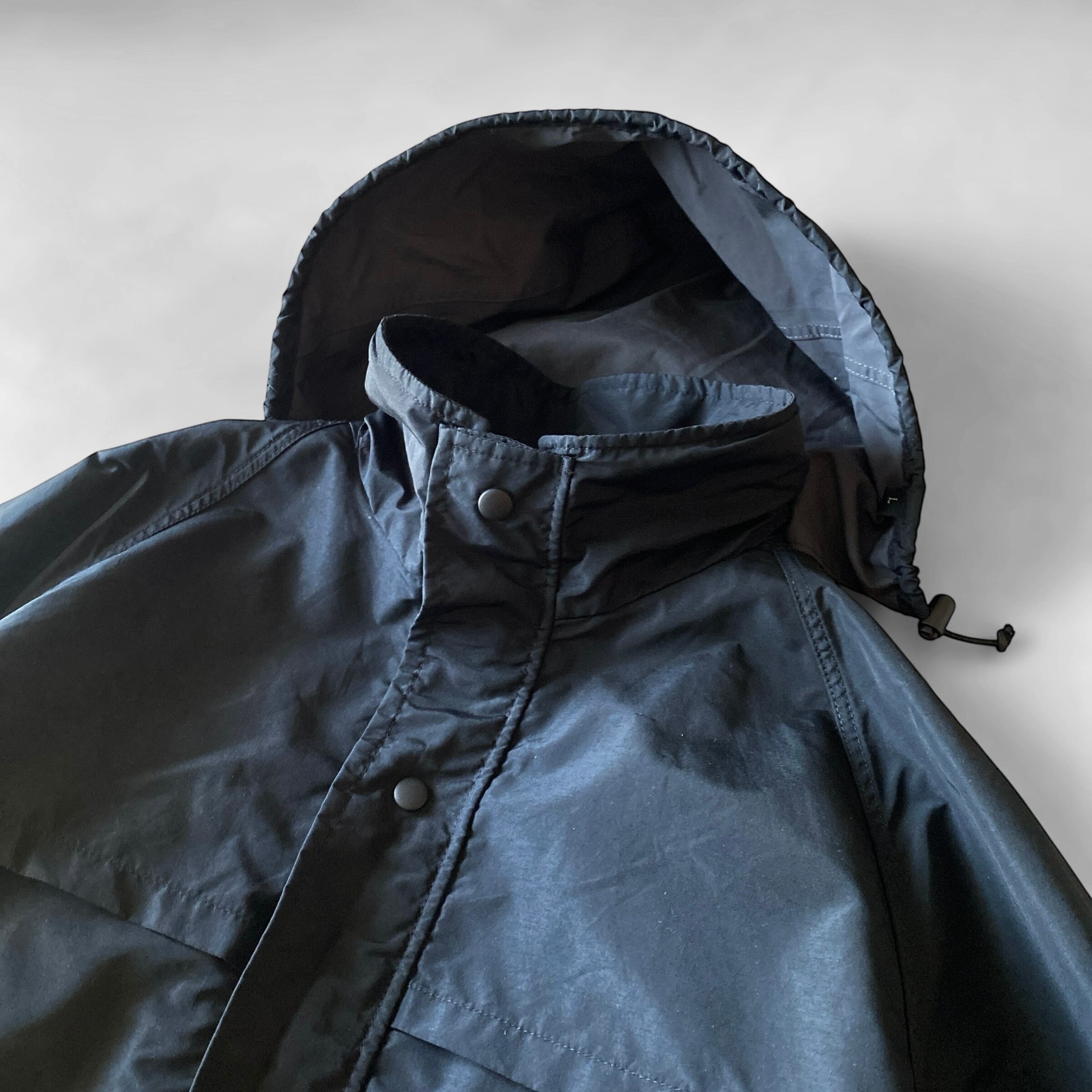 ブラックカラーに、丸みのある短丈ボックスシルエット、ハリ感のあるナイロンゴアテックス素材、各所男心をくすぐるようなディテールの数々が非常に格好良いです。