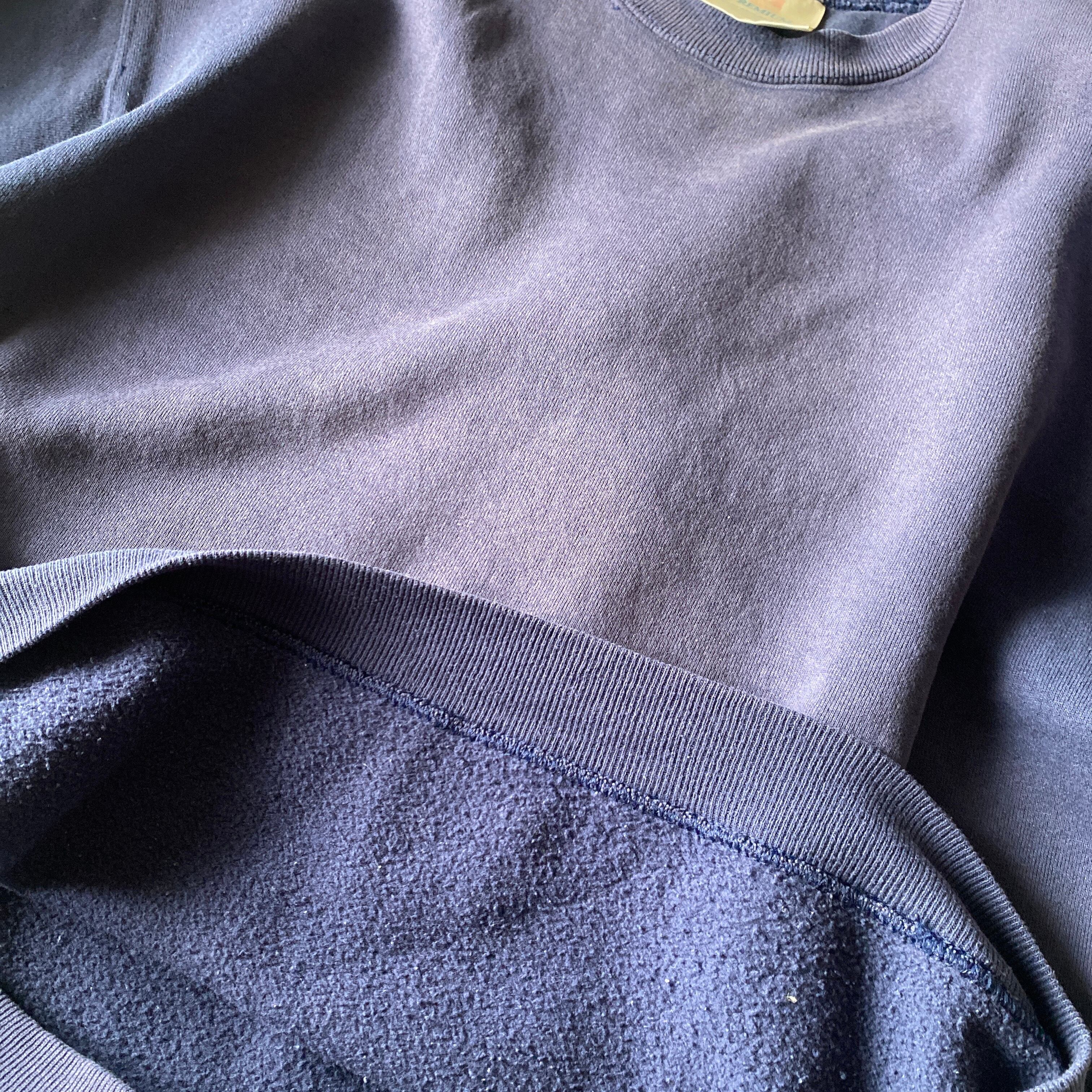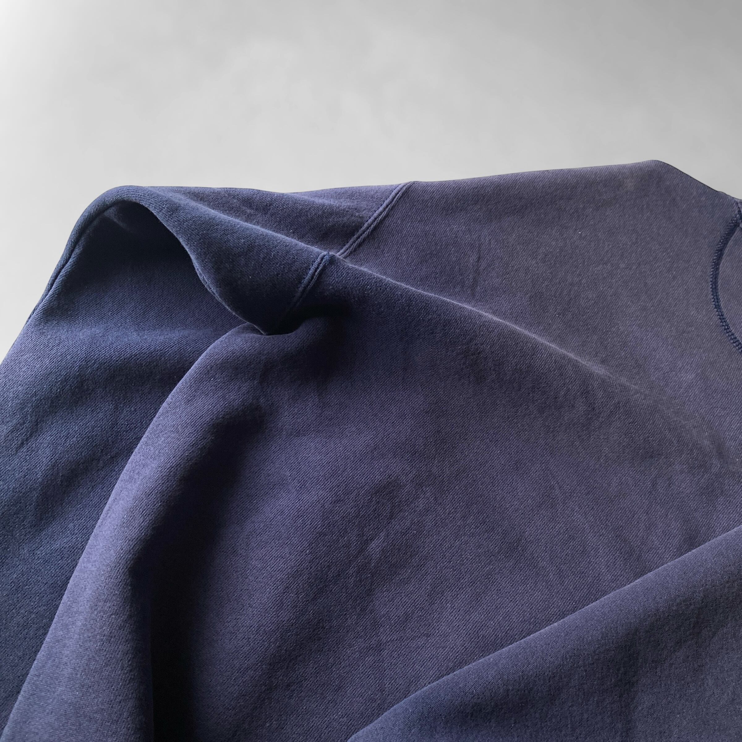 ダークネイビーからフェードした芸術的な茄子紺カラーに、肉厚でモチっとした生地感、ゆったりとしたボックスシルエットが素晴らしい一着。